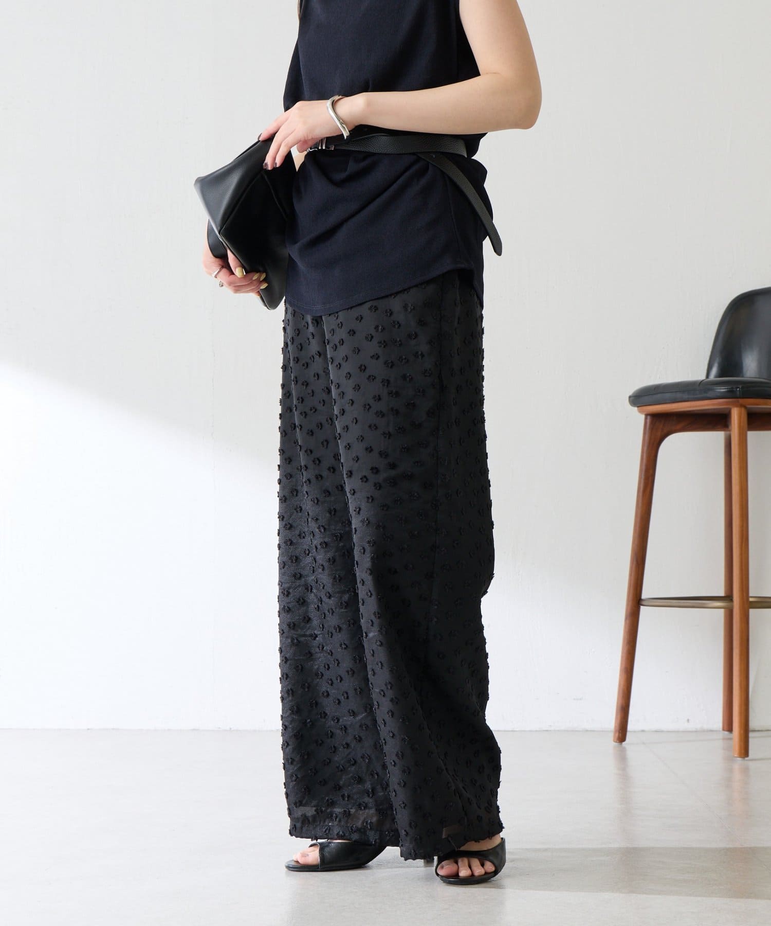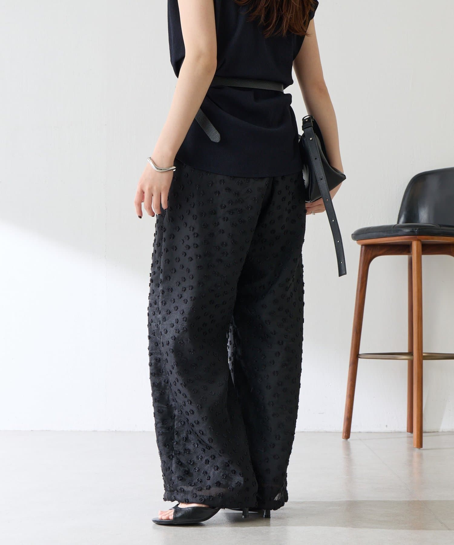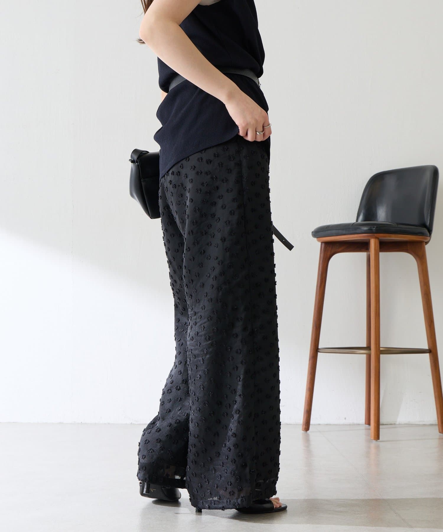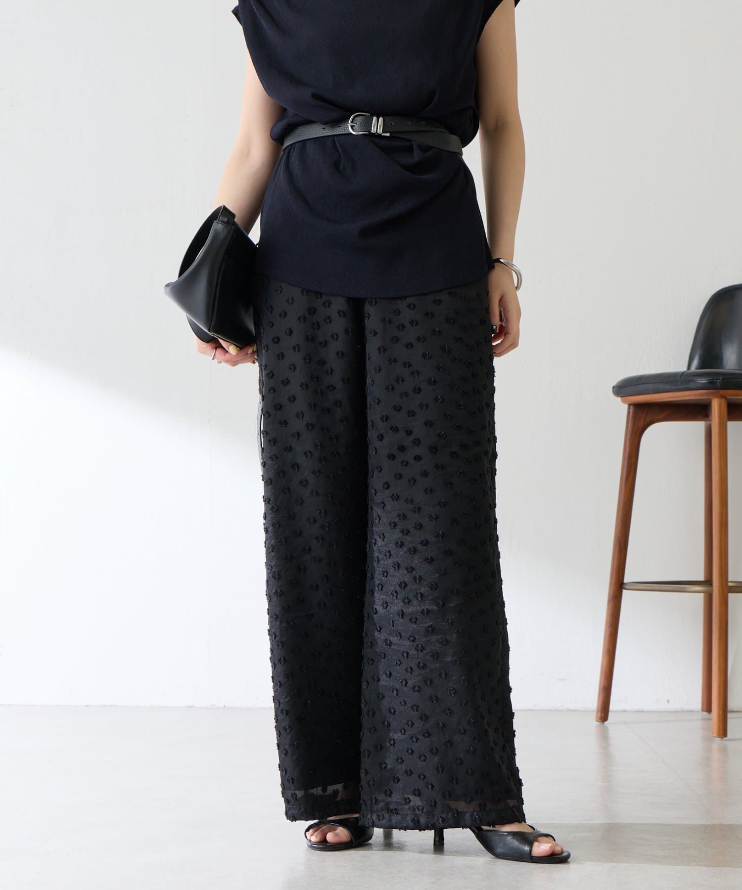 【着映えデザイン】立体フラワーシアーワイドパンツ