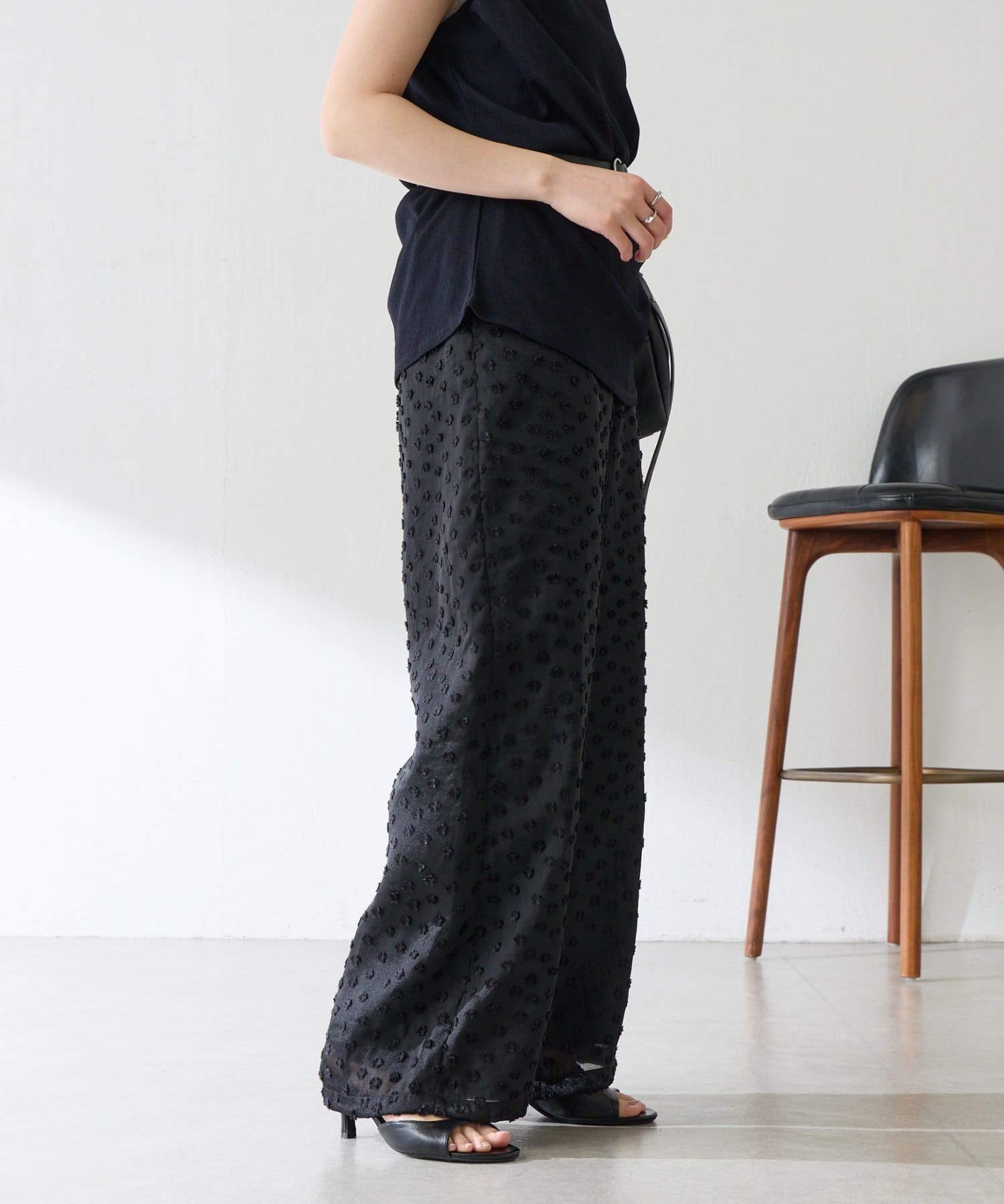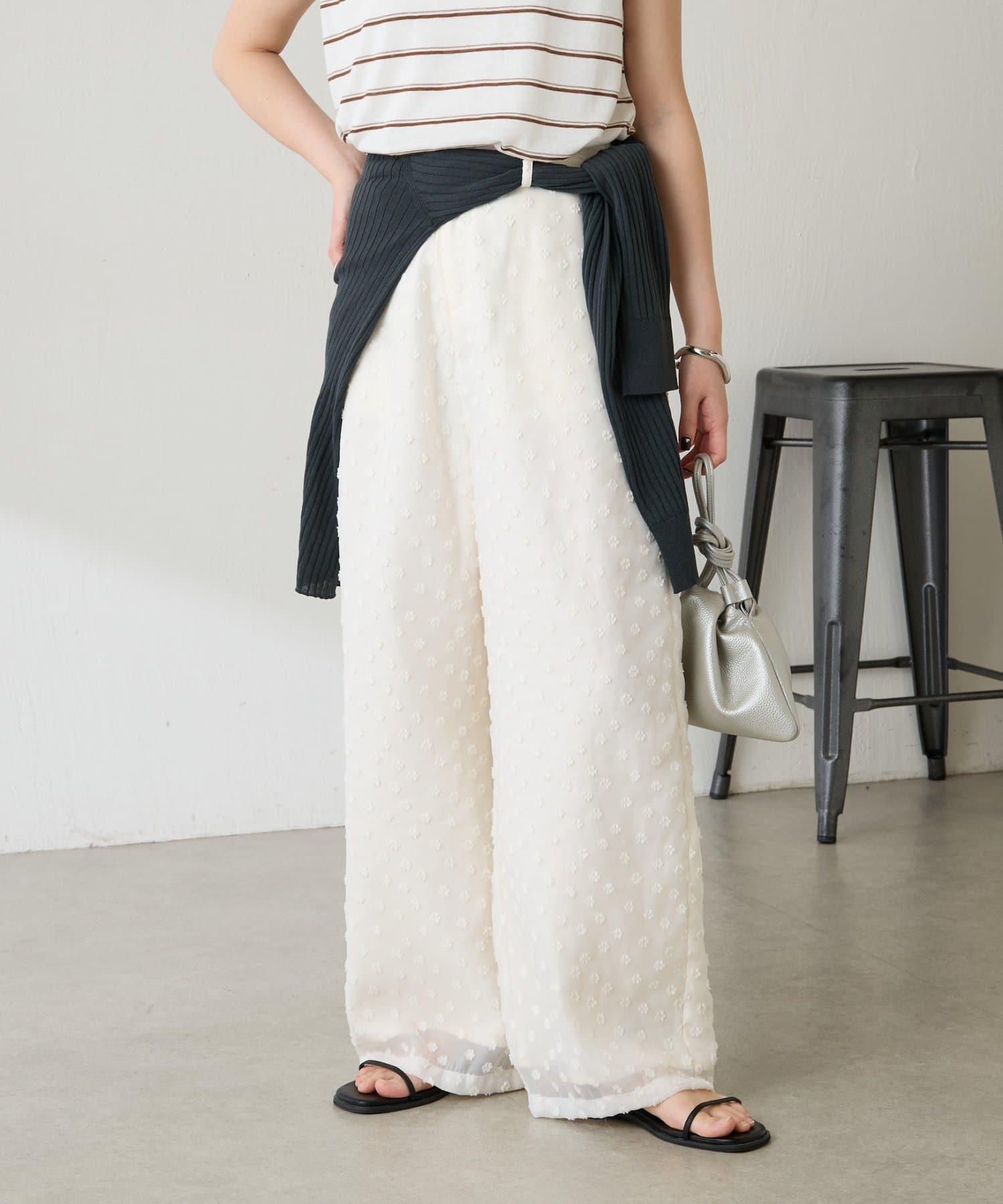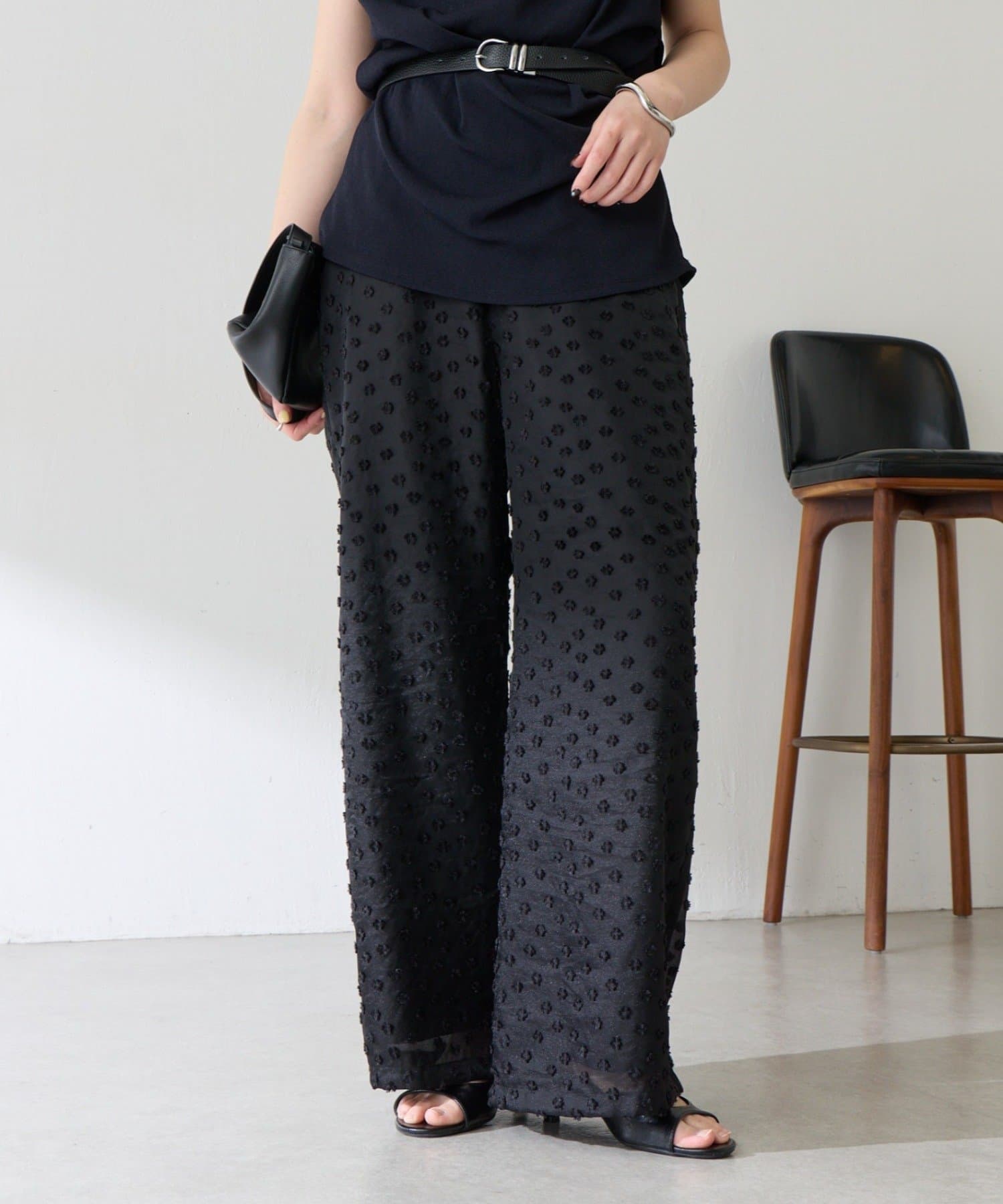 【着映えデザイン】立体フラワーシアーワイドパンツ