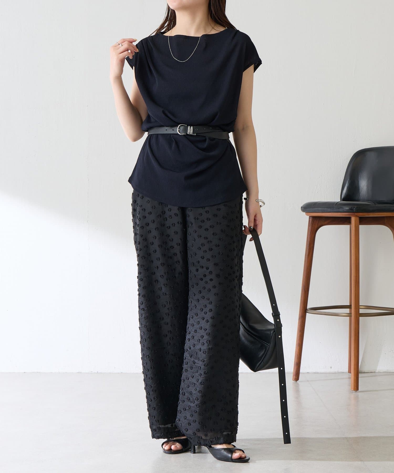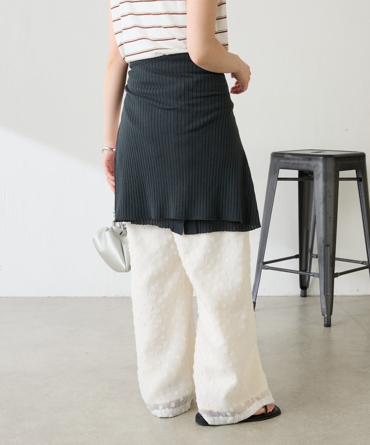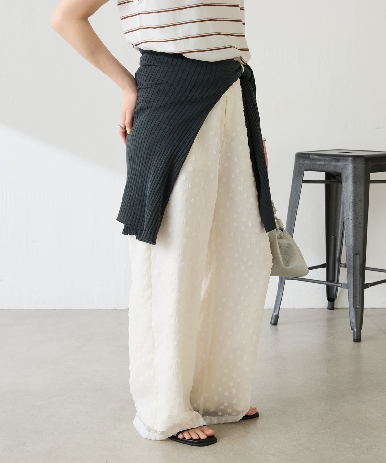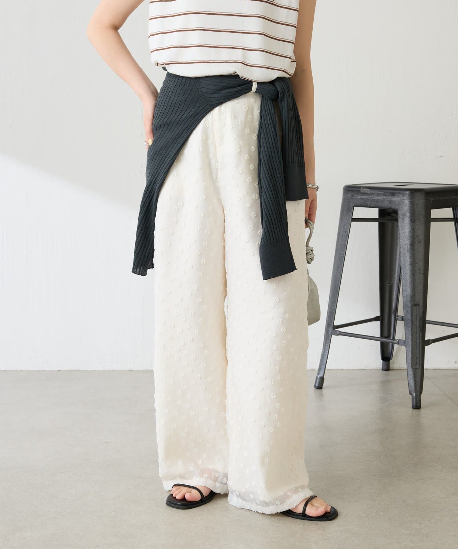 【着映えデザイン】立体フラワーシアーワイドパンツ