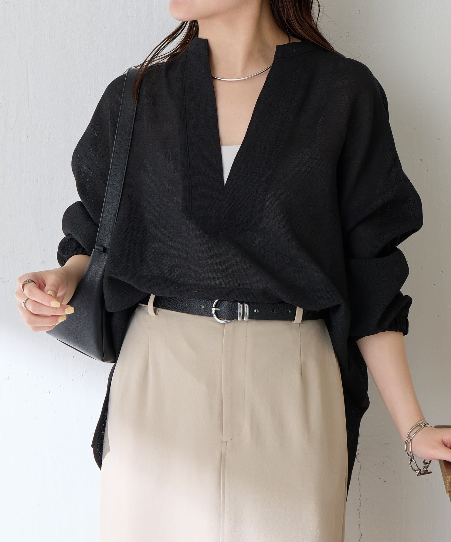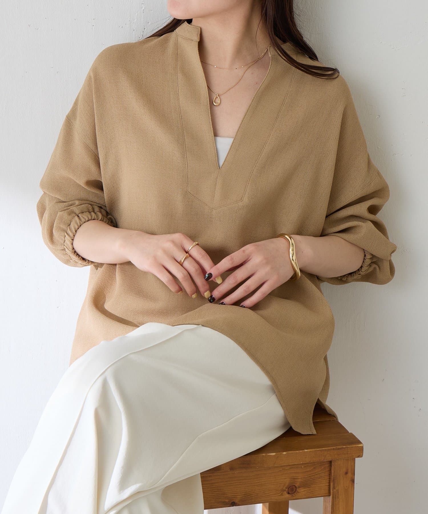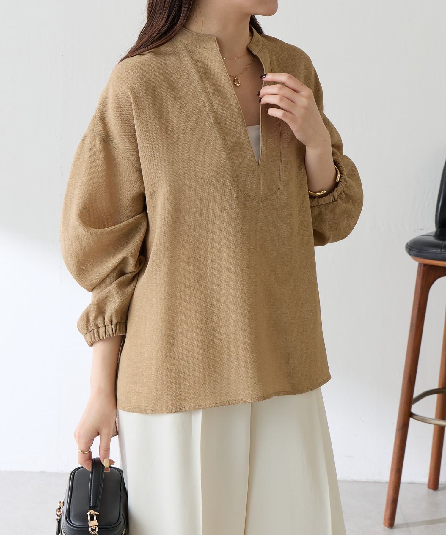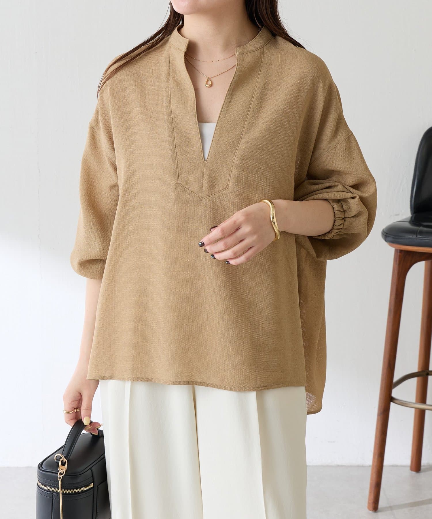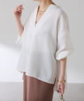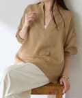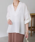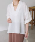 ・襟元はスキッパーデザインにすることで顔周りもすっきりとした印象になります。