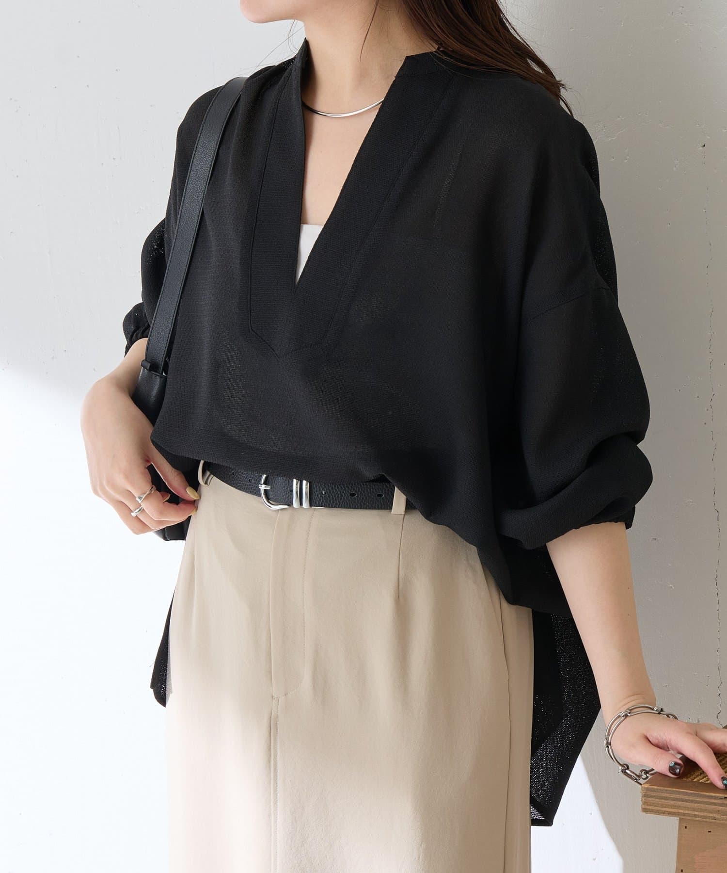 涼しいのに体型カバーも叶うメッシュブラウス
