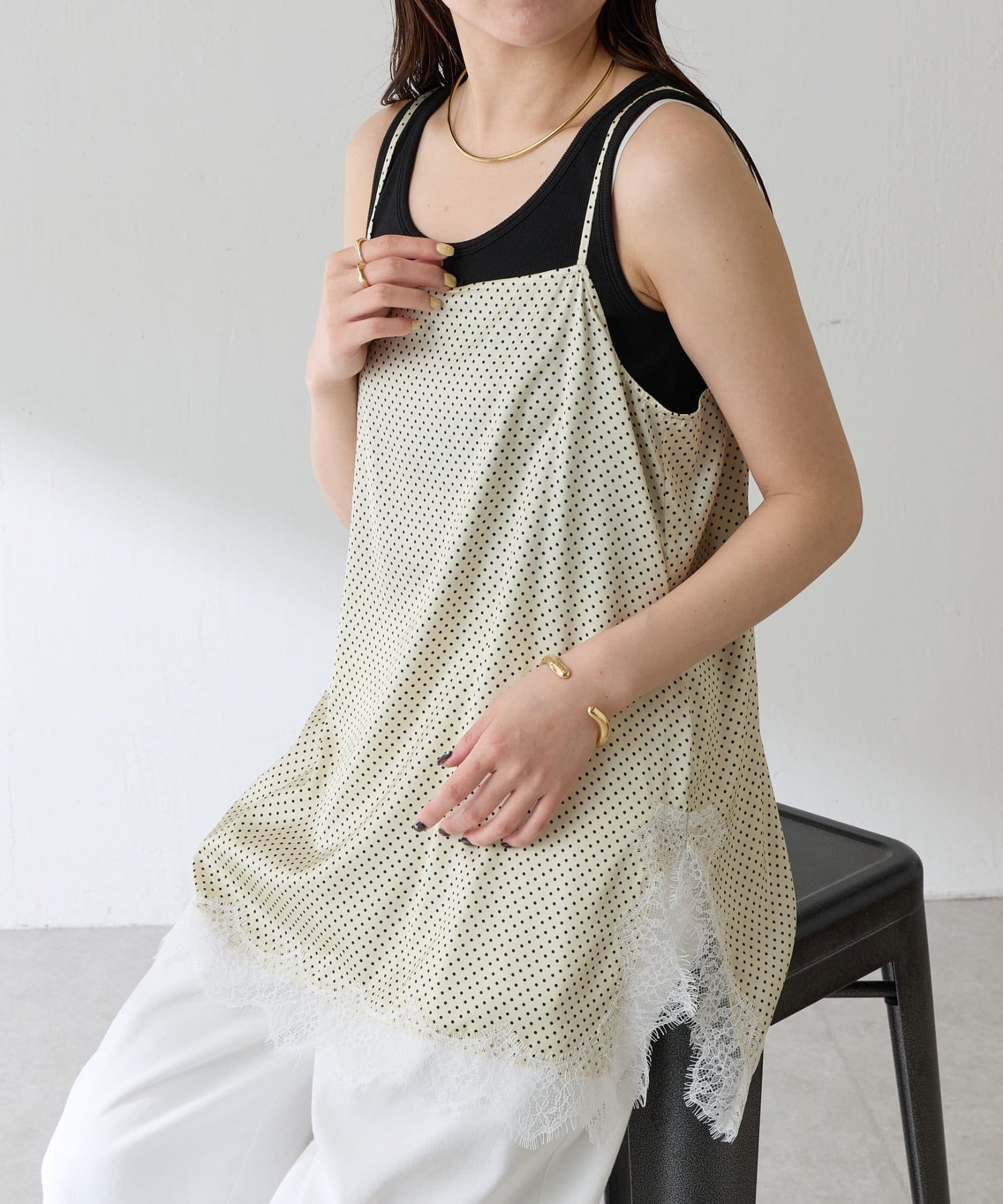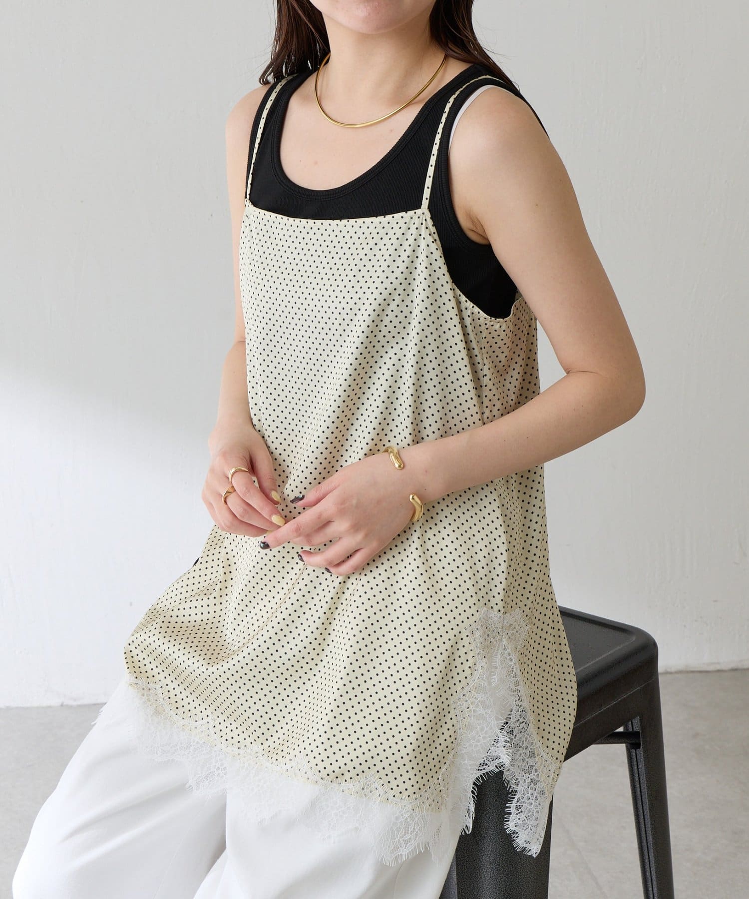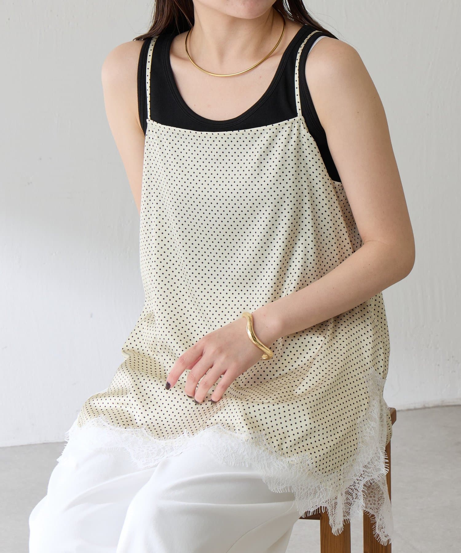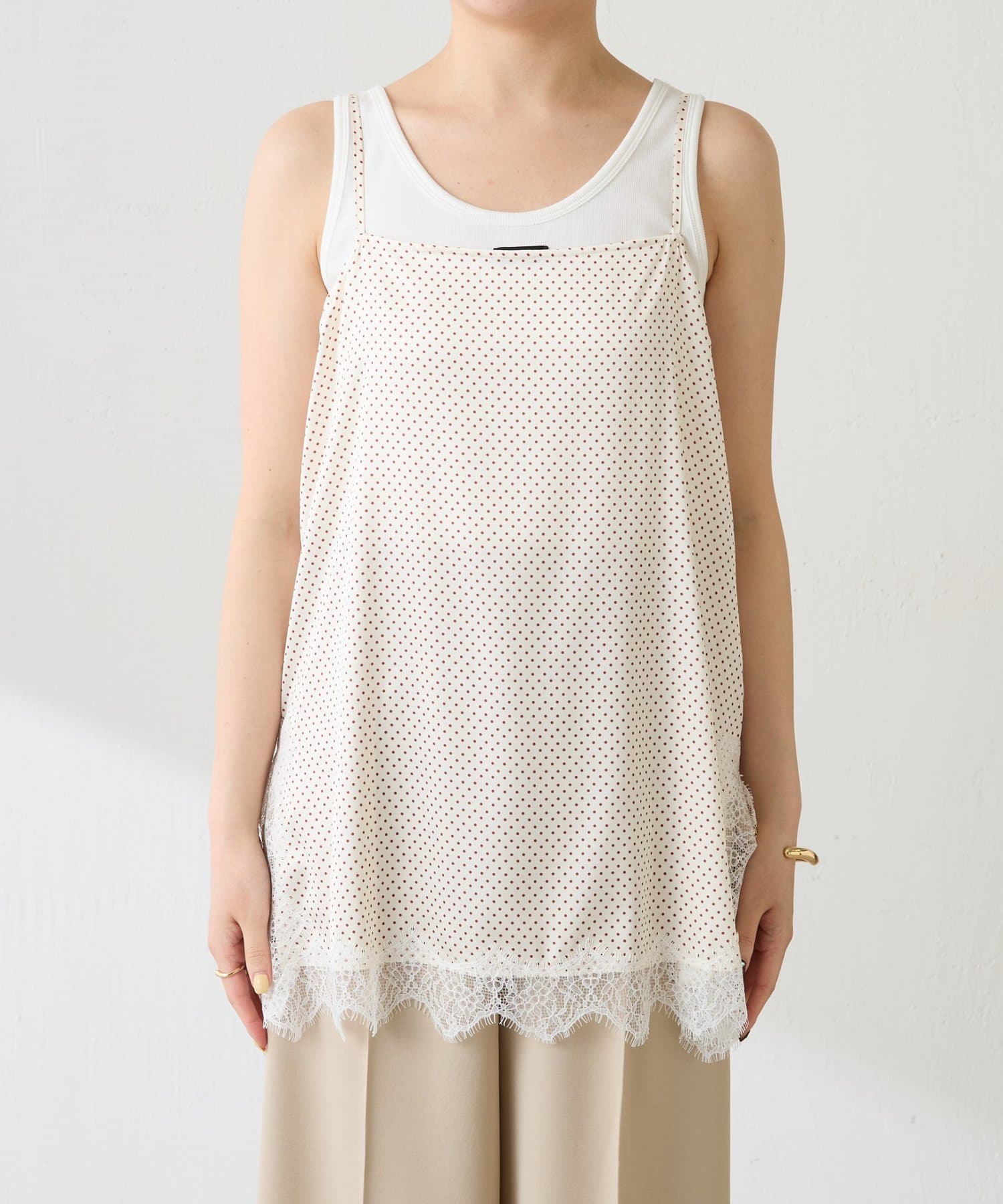 【トレンドアイテム】レース付ドットキャミソール