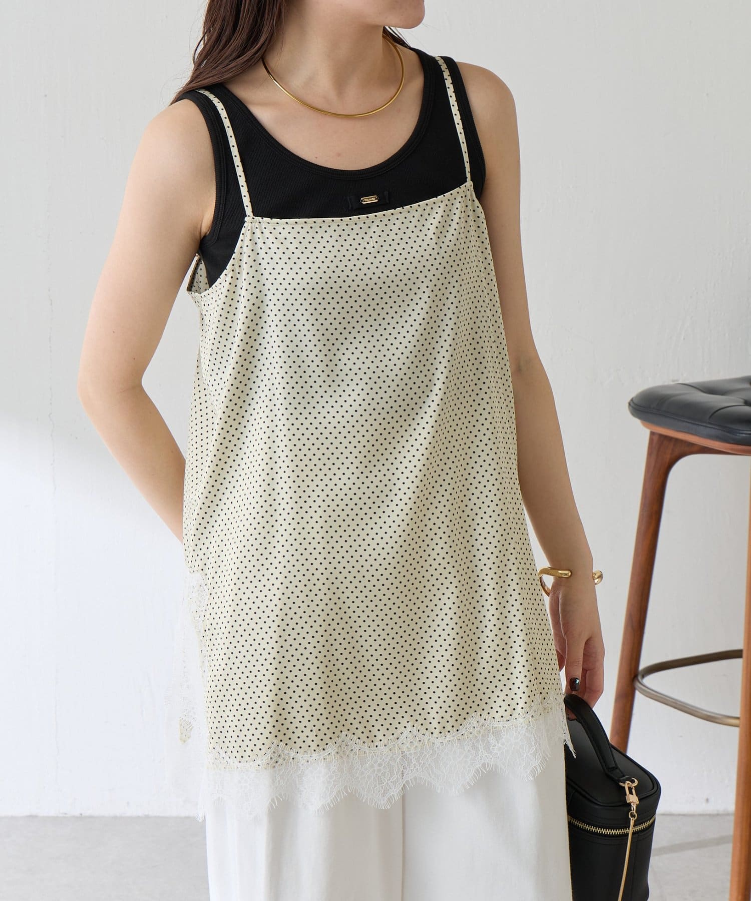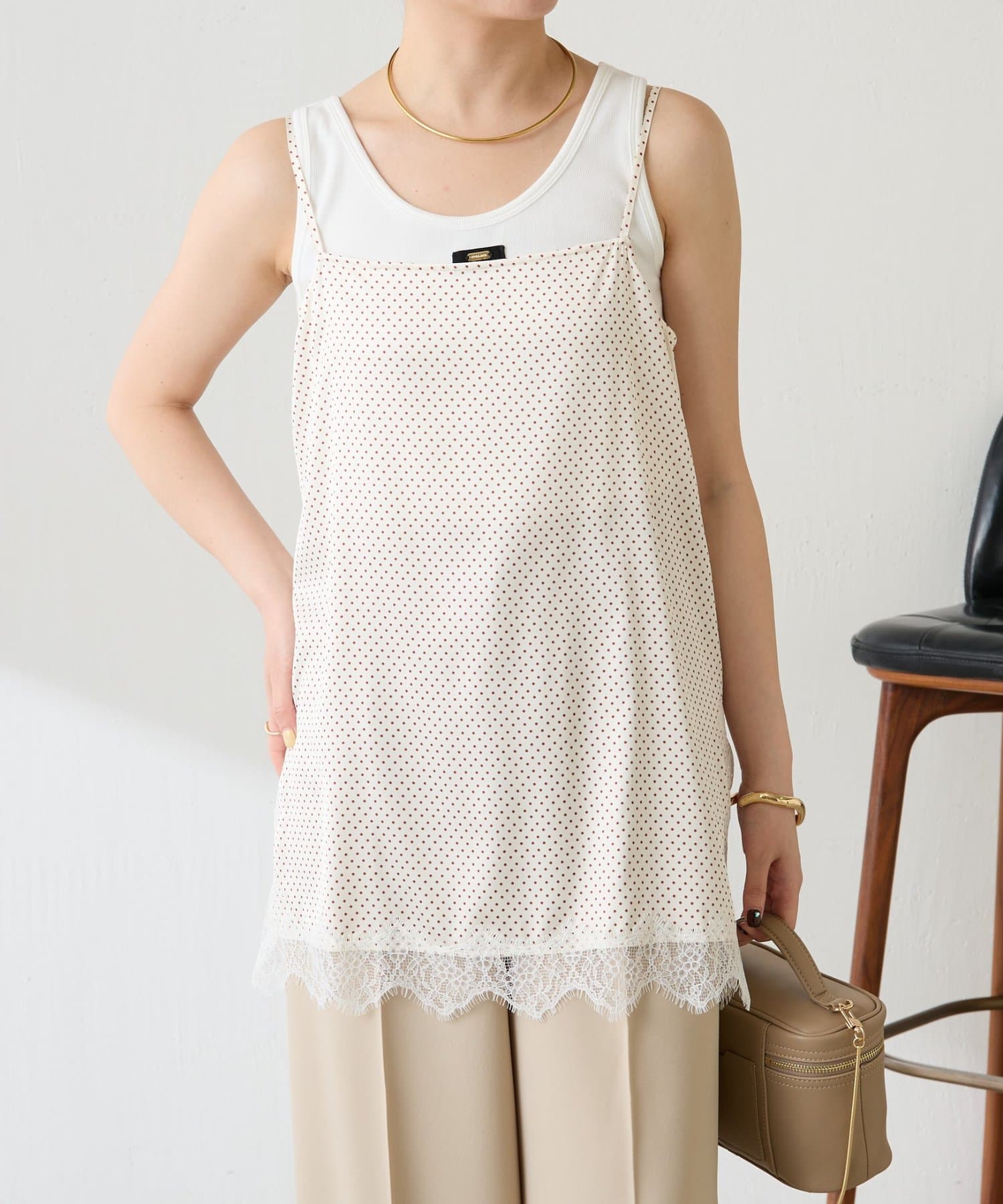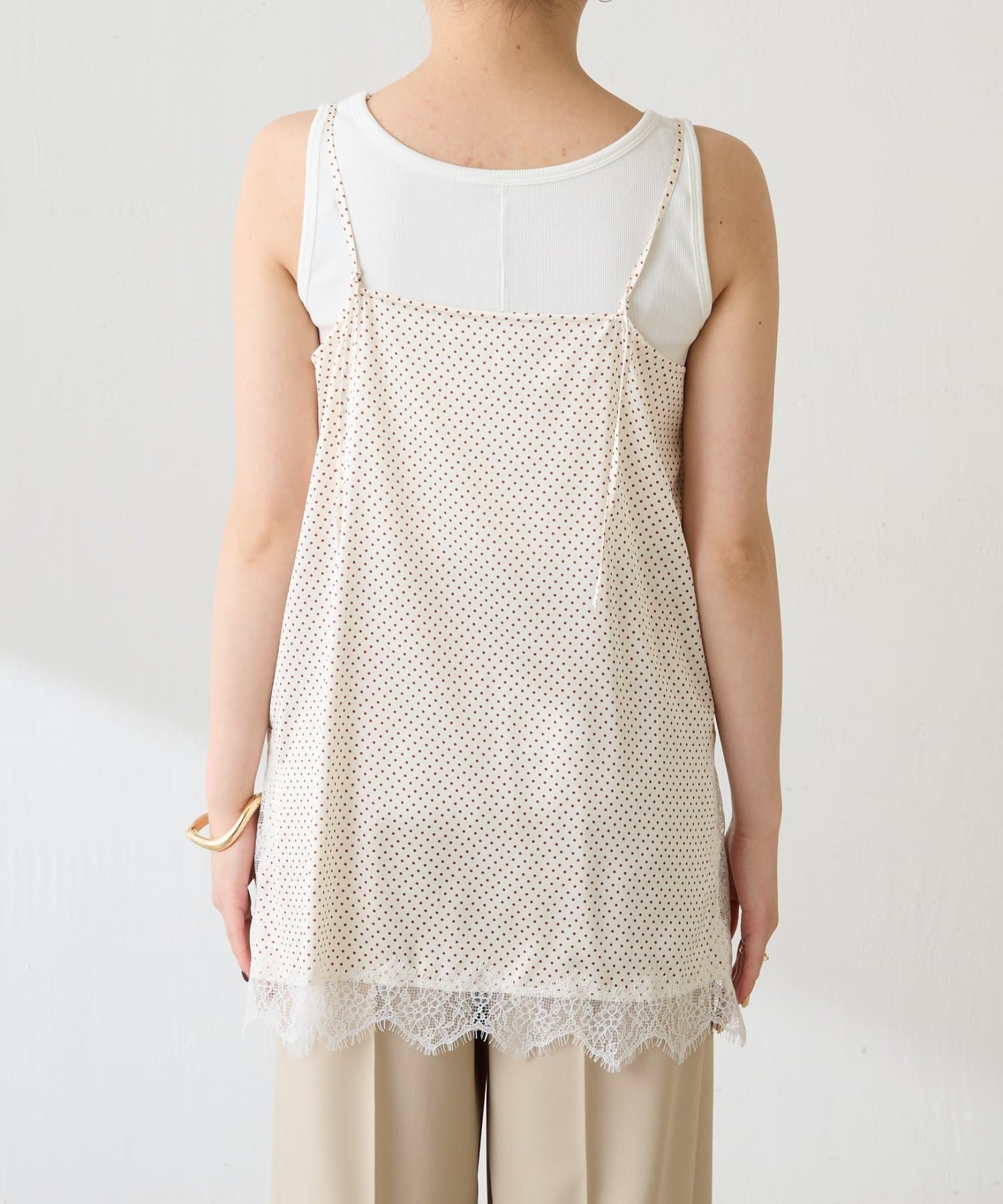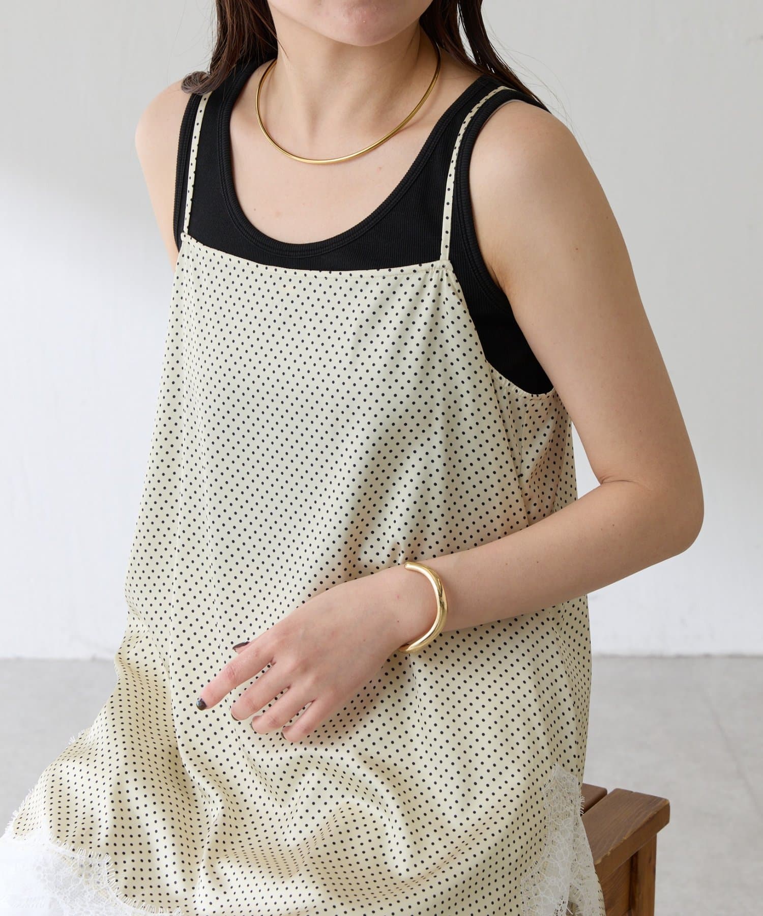 【トレンドアイテム】レース付ドットキャミソール