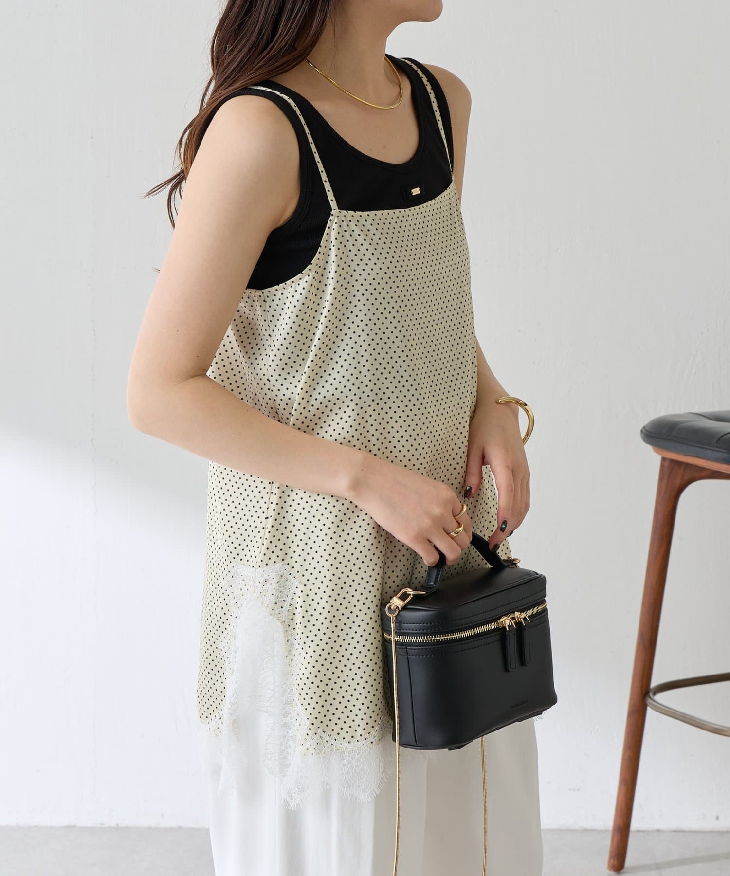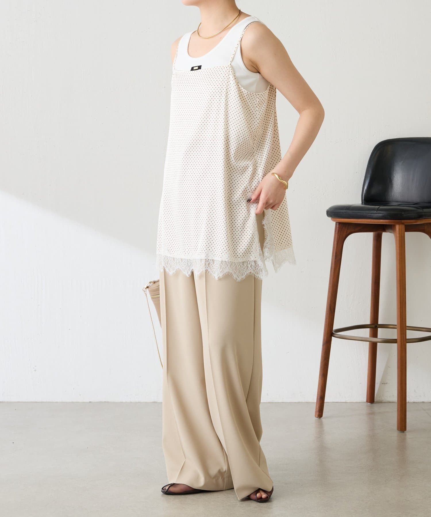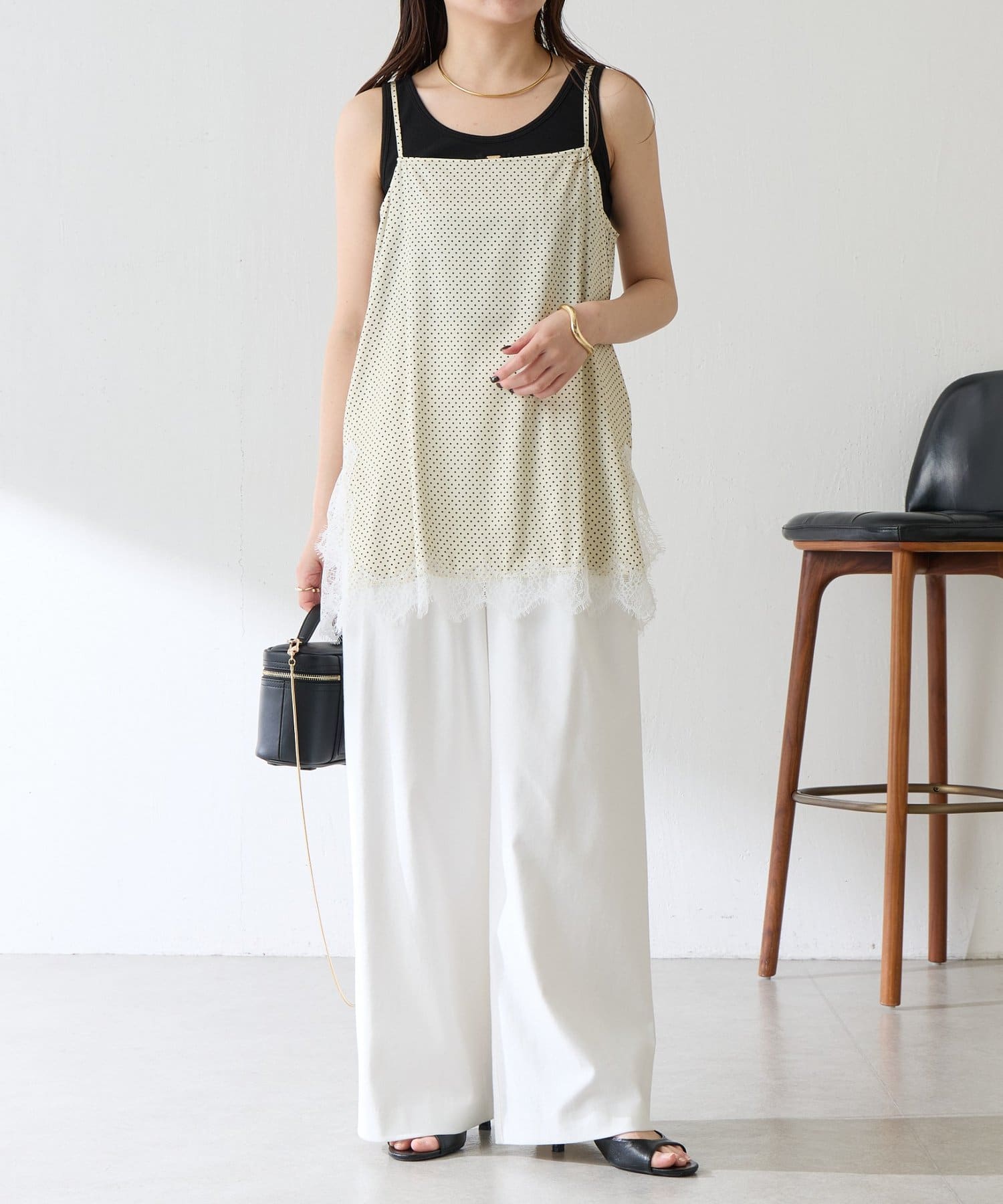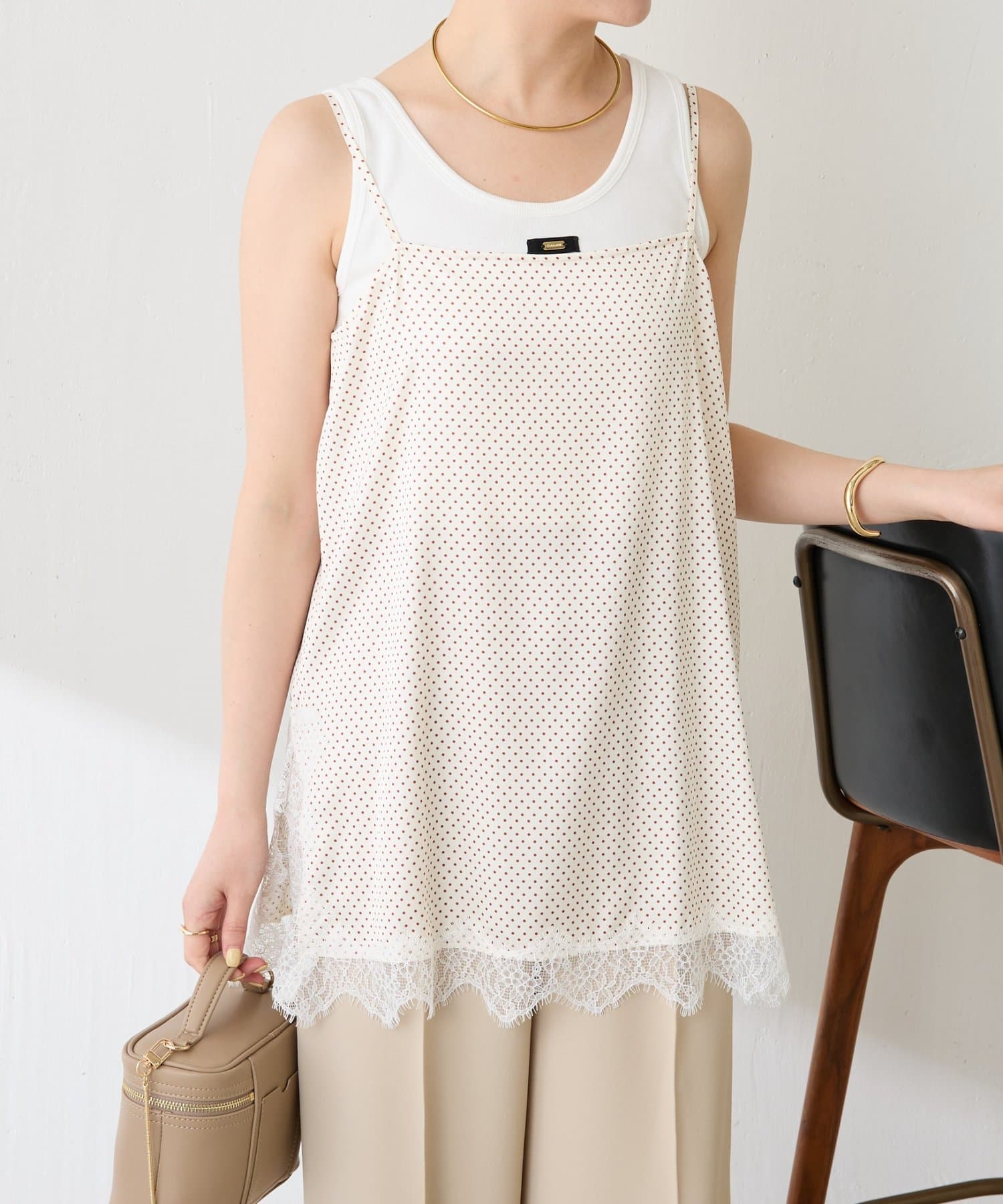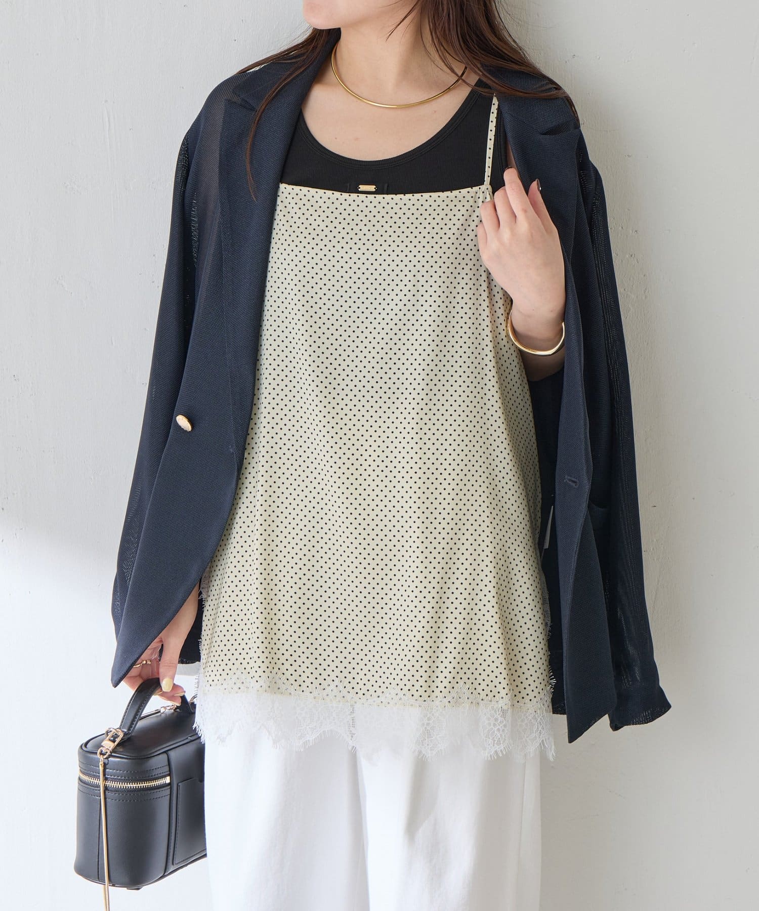 【トレンドアイテム】レース付ドットキャミソール