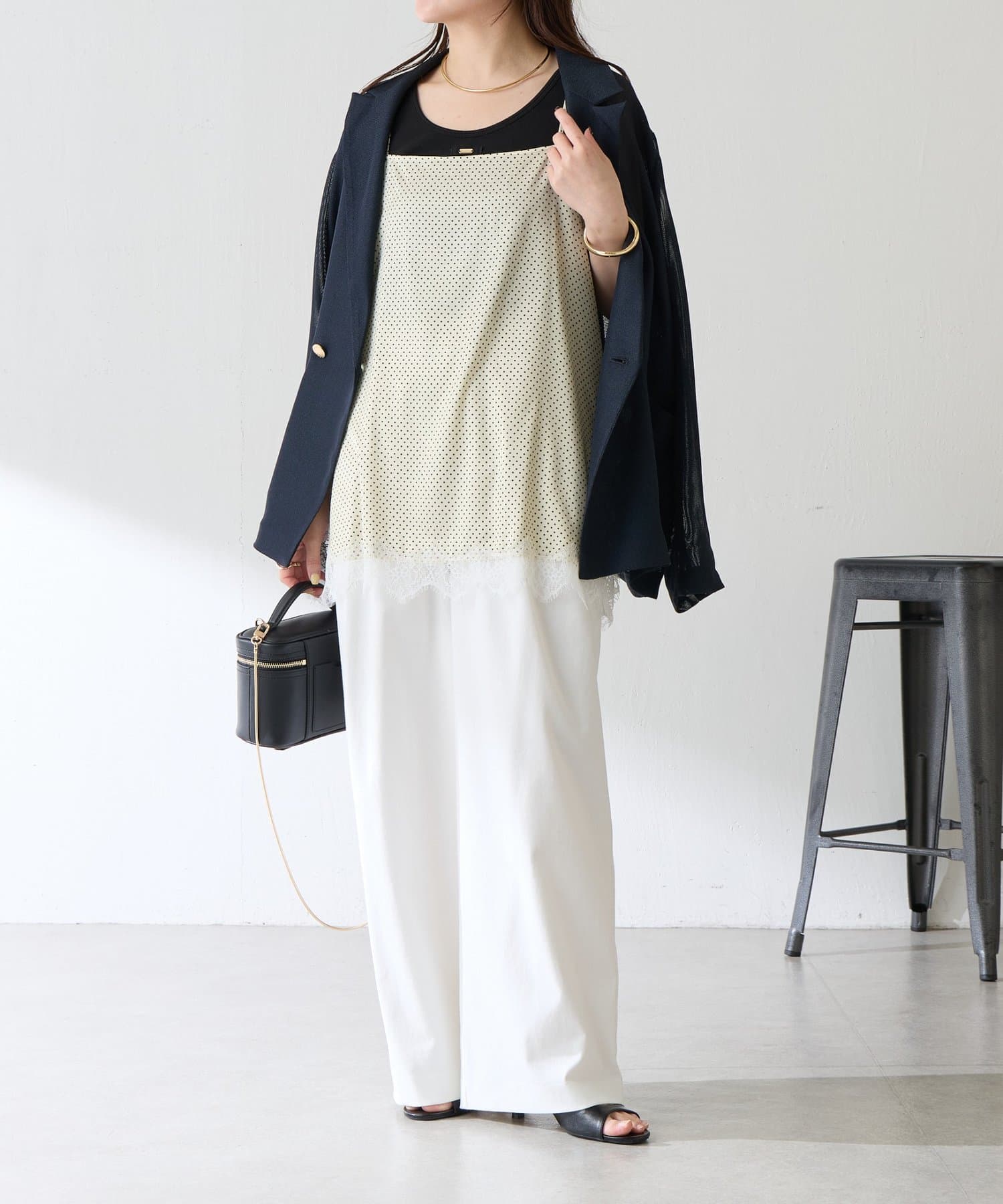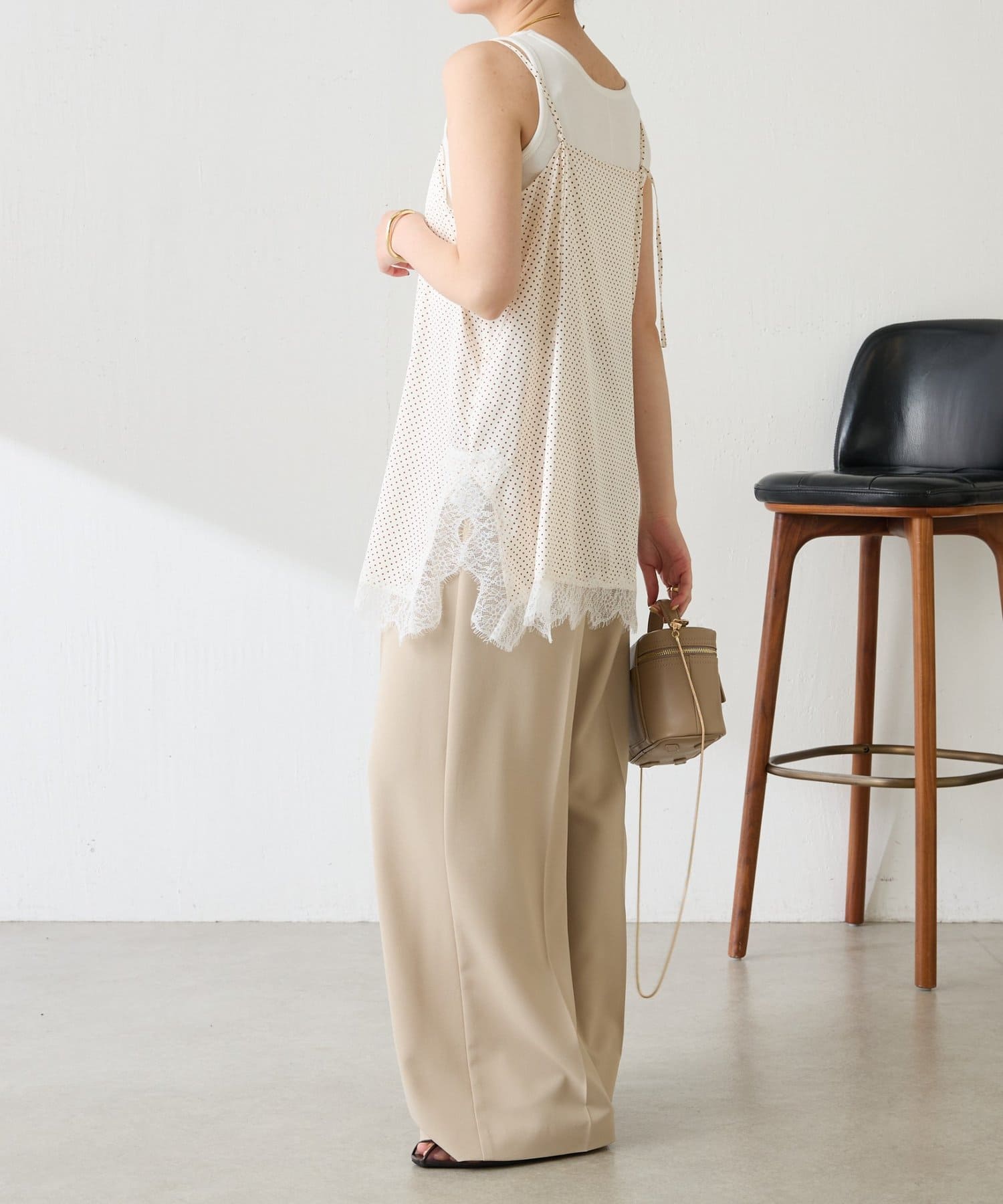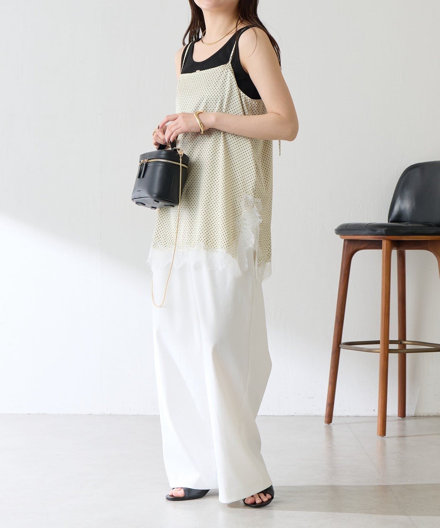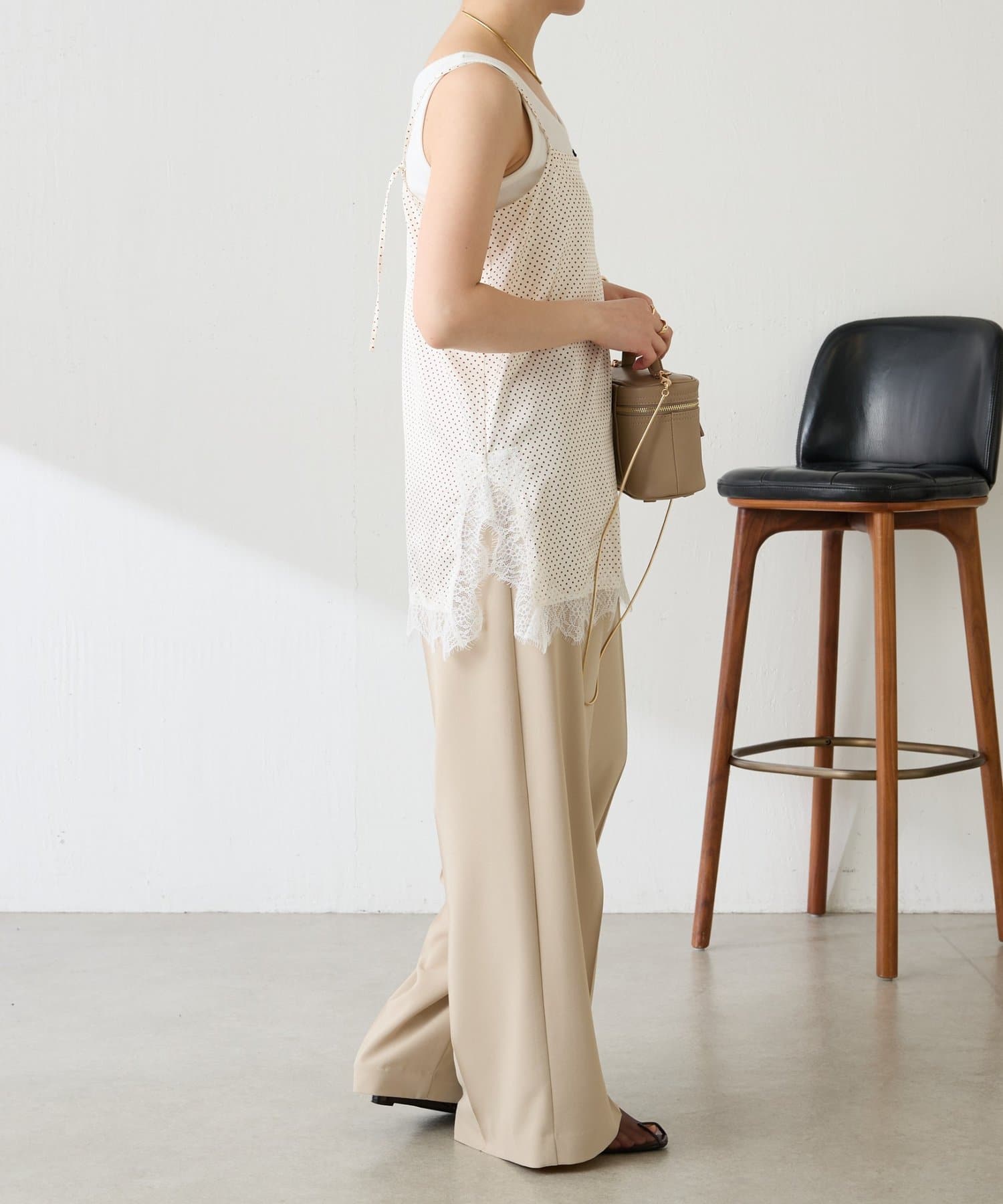 【トレンドアイテム】レース付ドットキャミソール