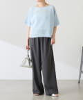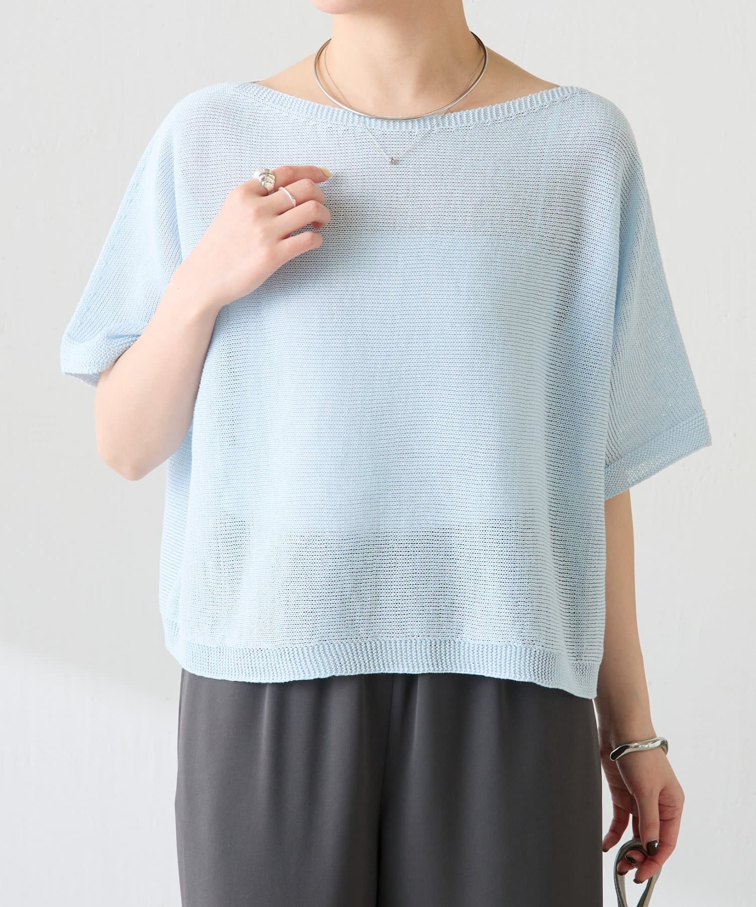・ギマ加工で麻っぽい風合いにしたシャーリーカーンの糸を使用しており気温が上がってからも着やすいです。