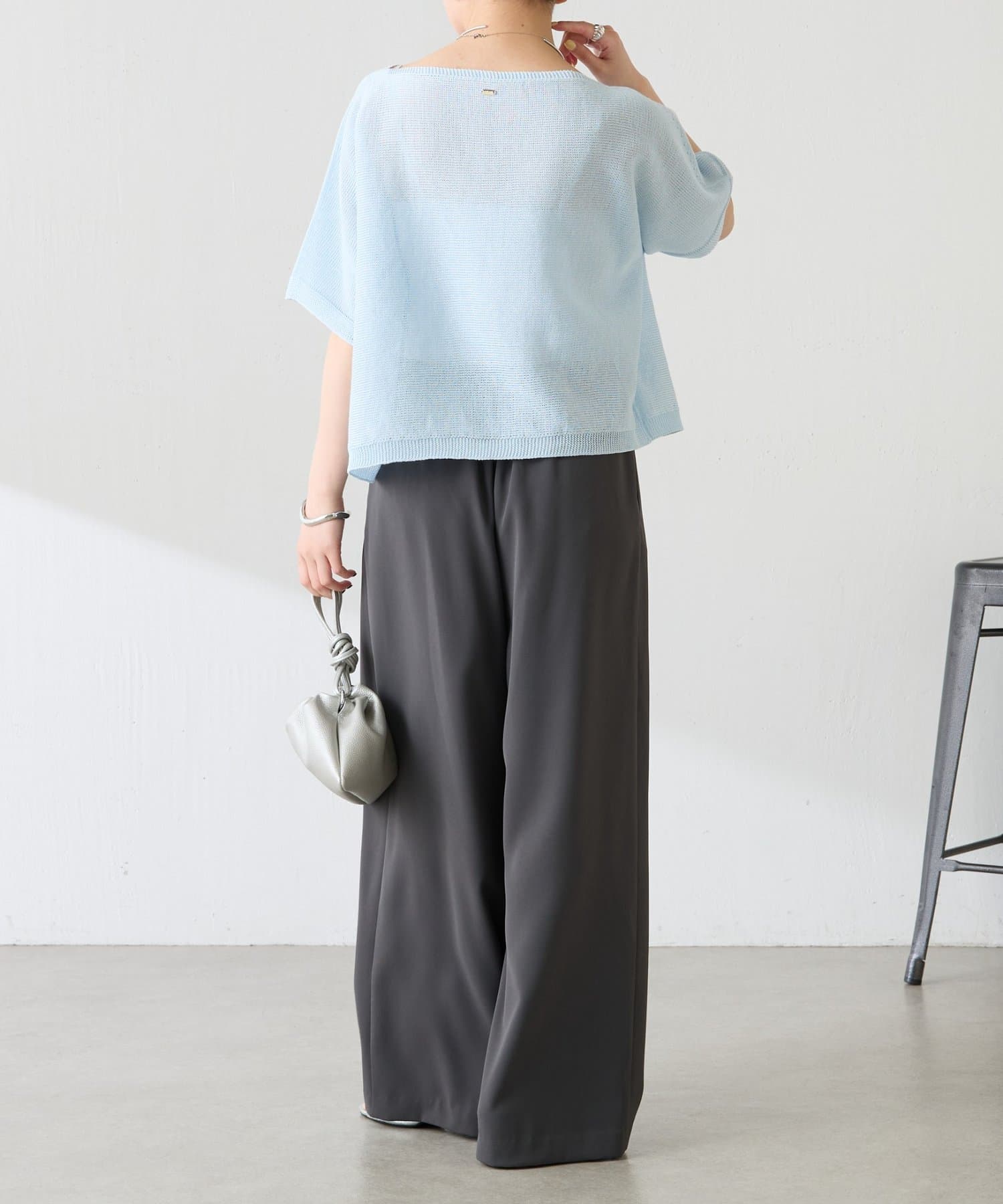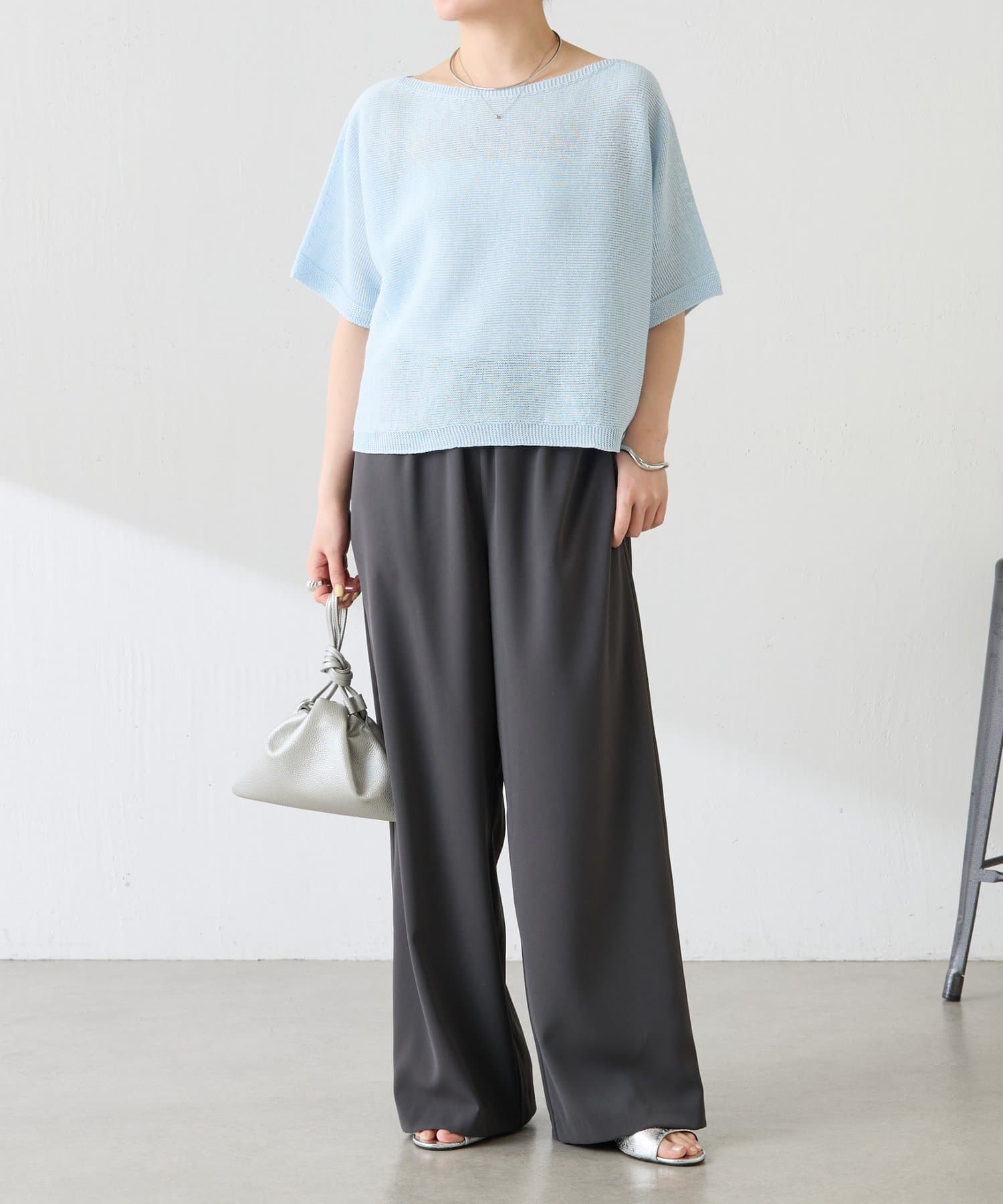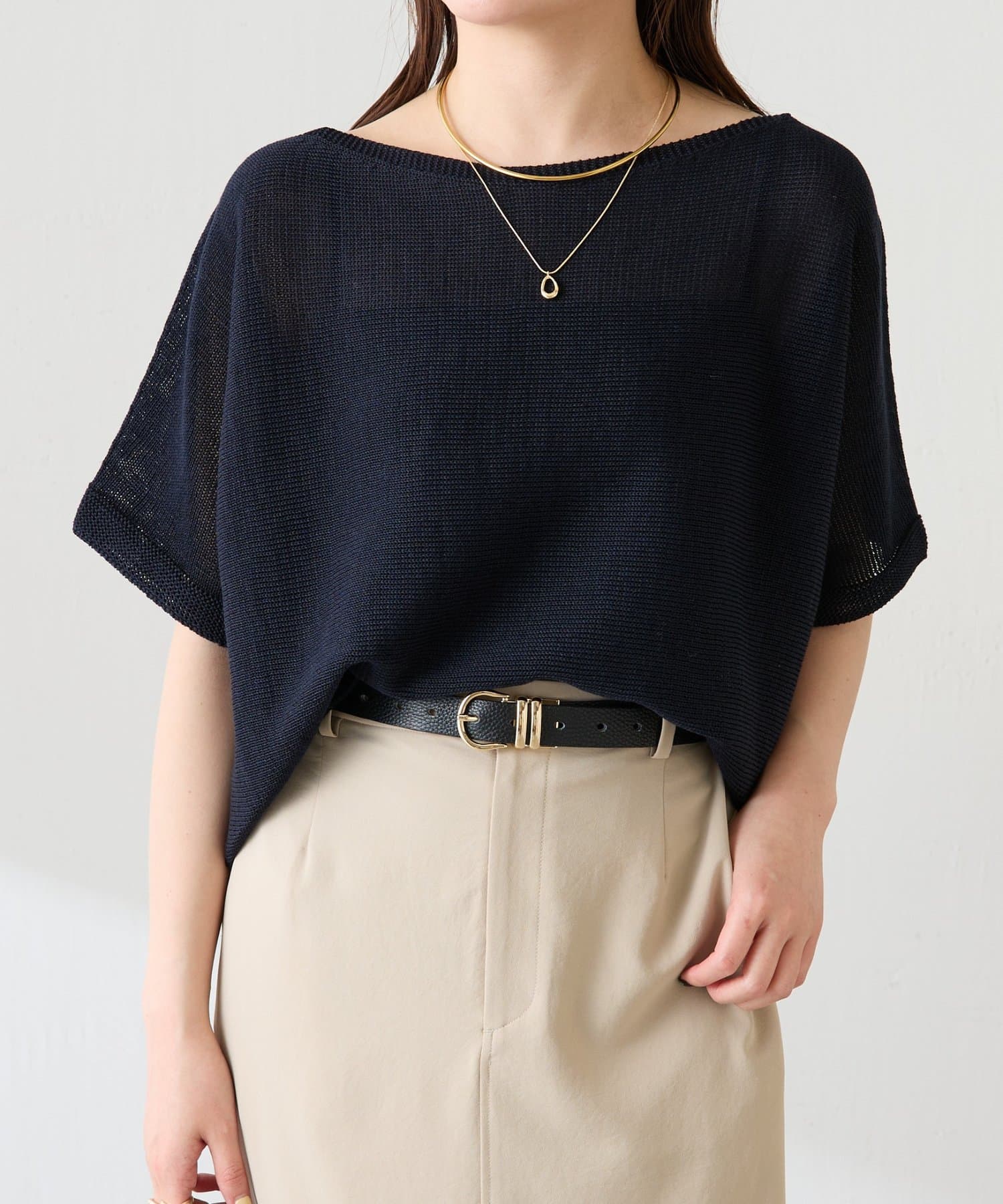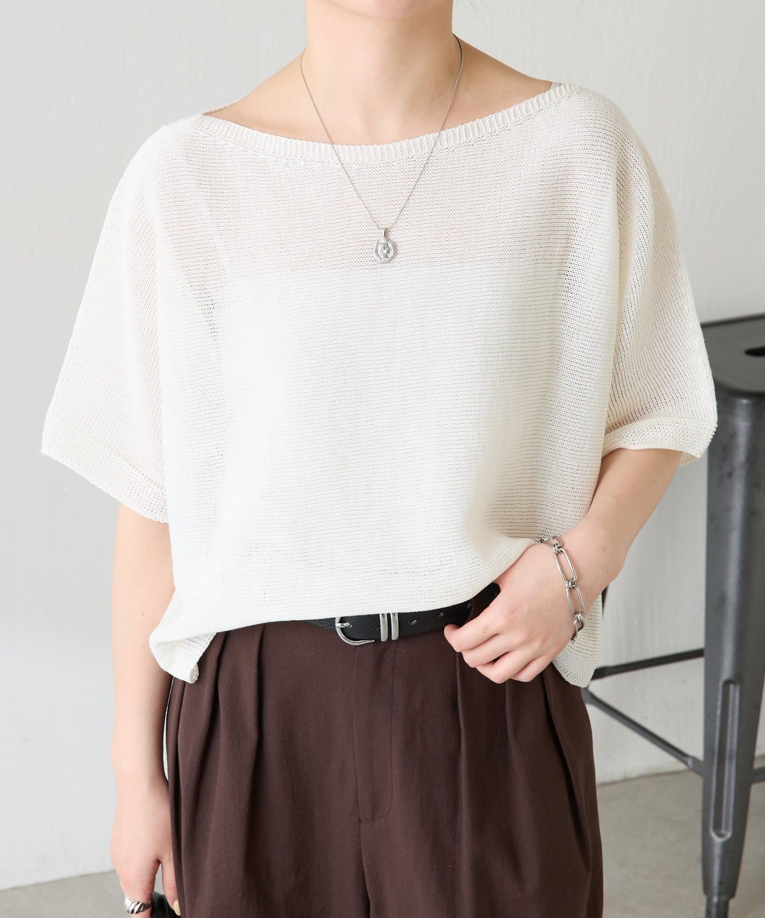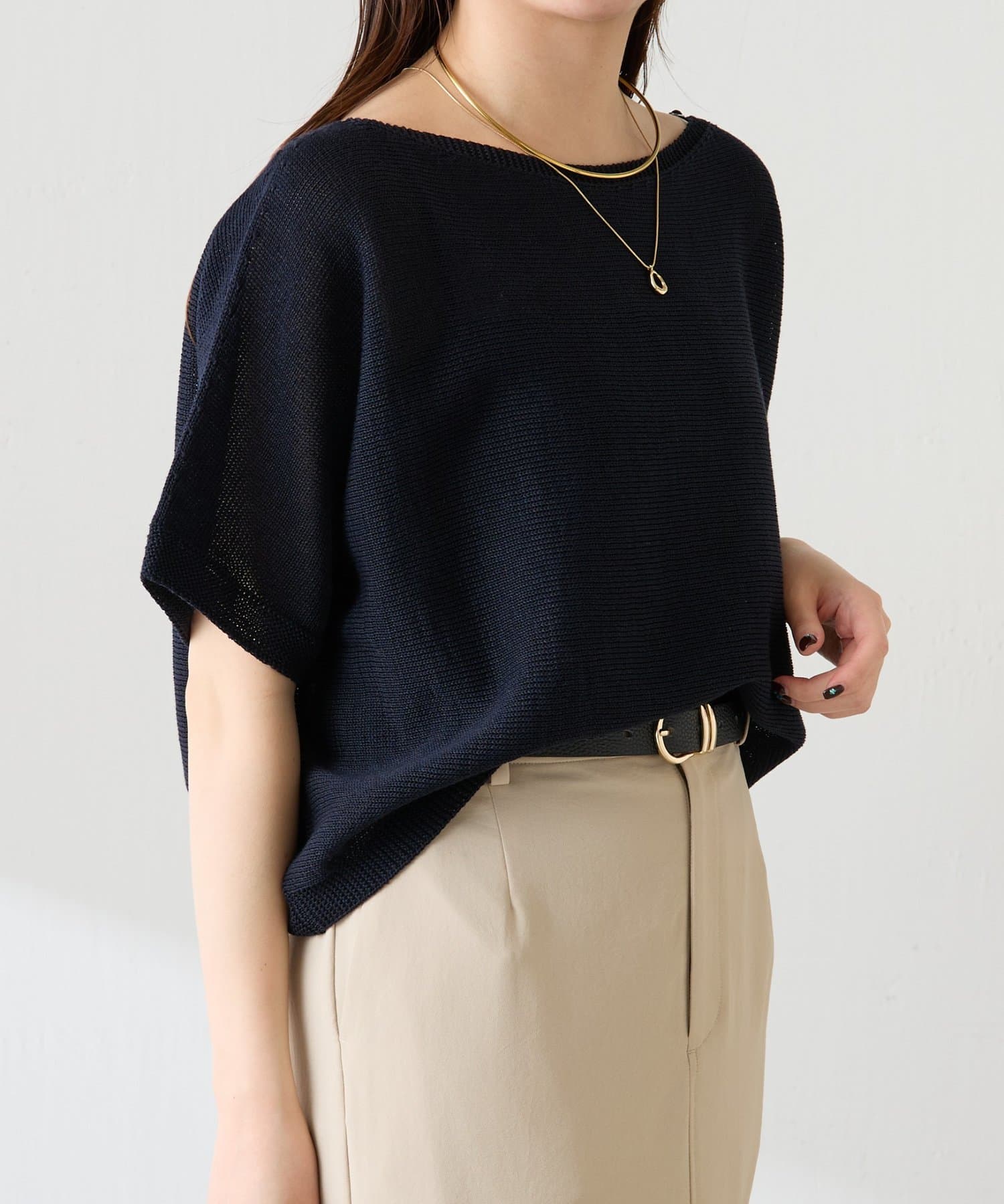 ・横に広いボートネックで顔周りもすっきりした印象に。ワンショルダーとしても着ていただけます◎