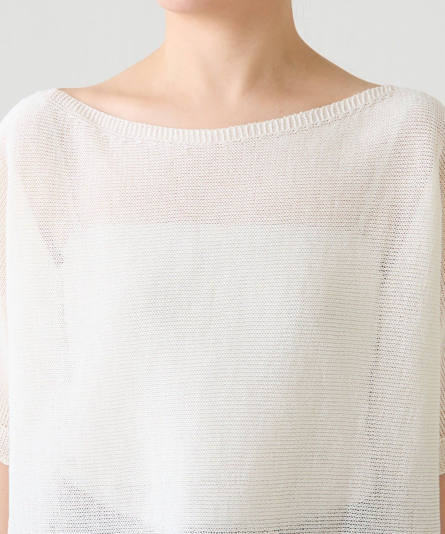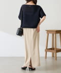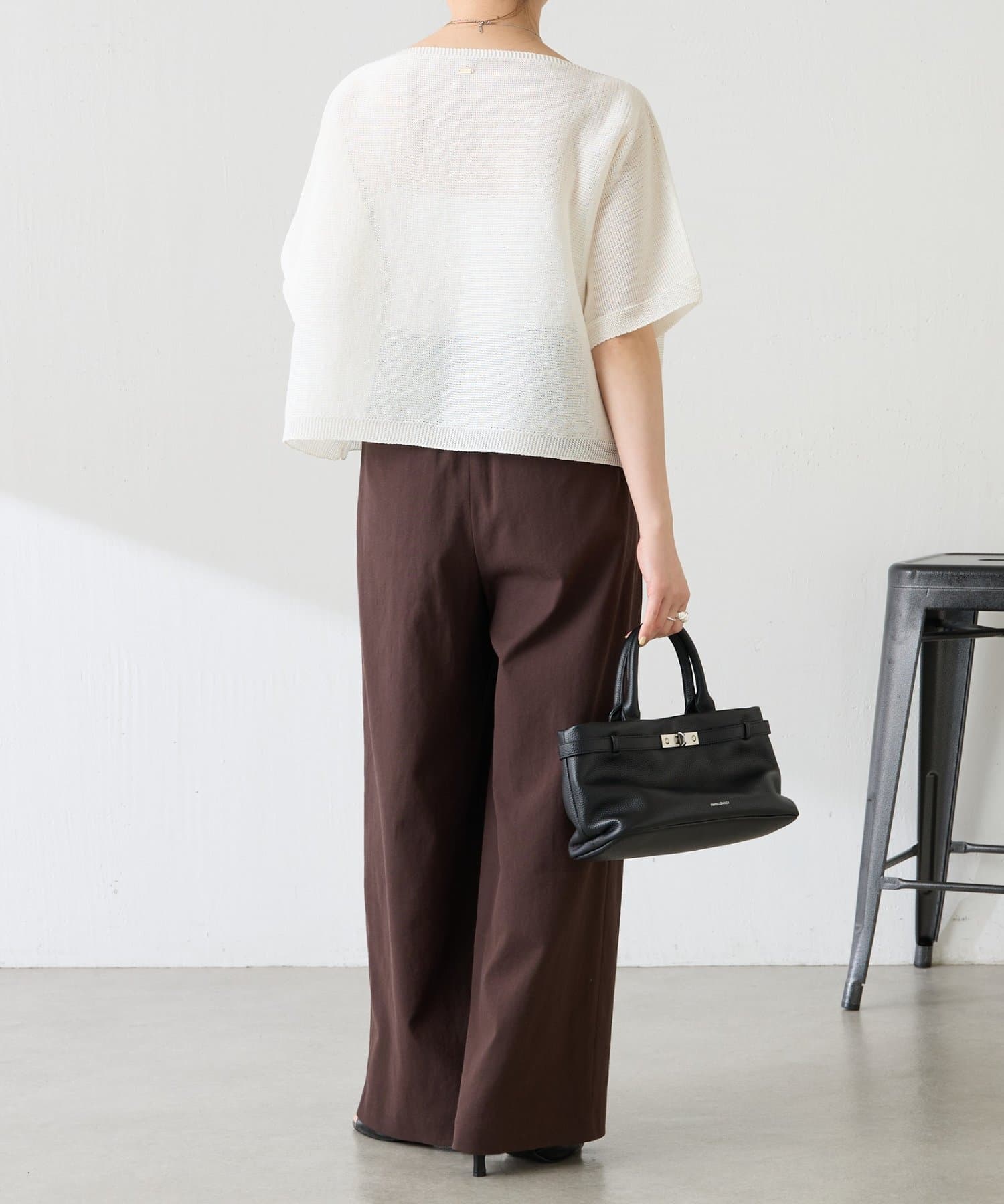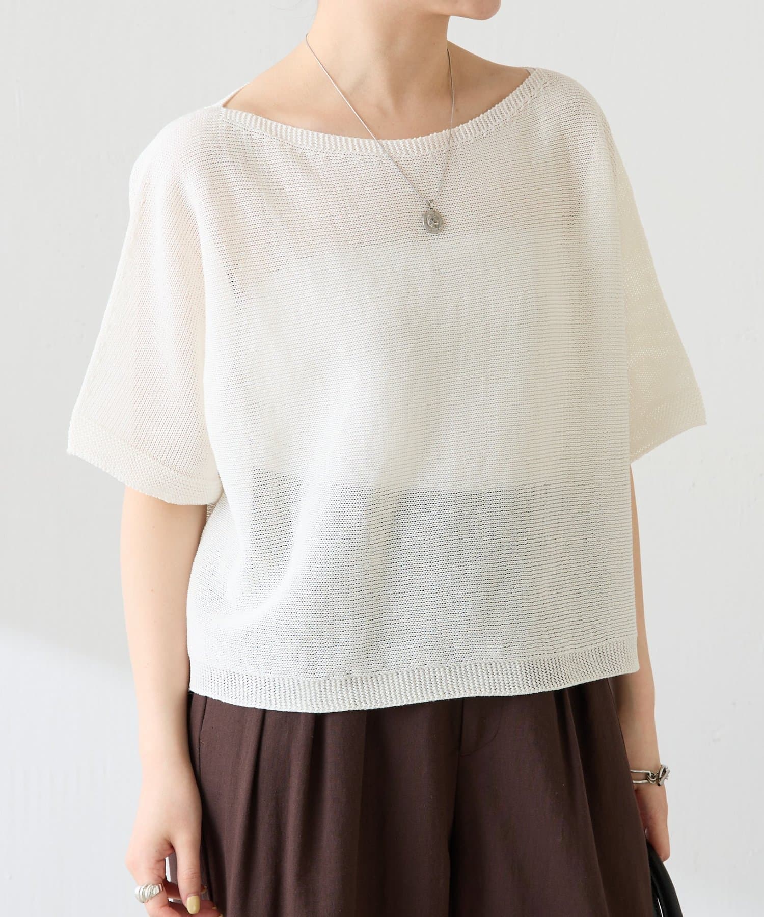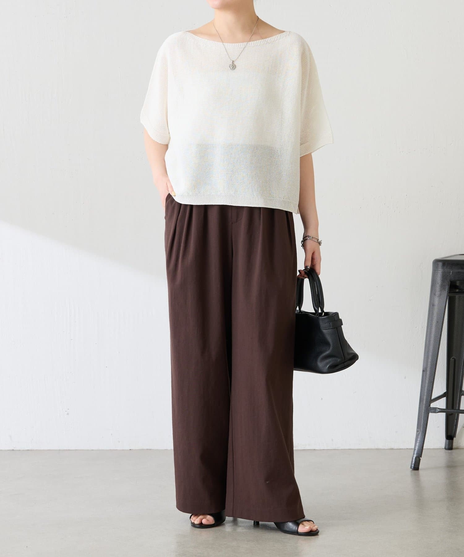 ・横に広いボートネックで顔周りもすっきりした印象に。ワンショルダーとしても着ていただけます◎