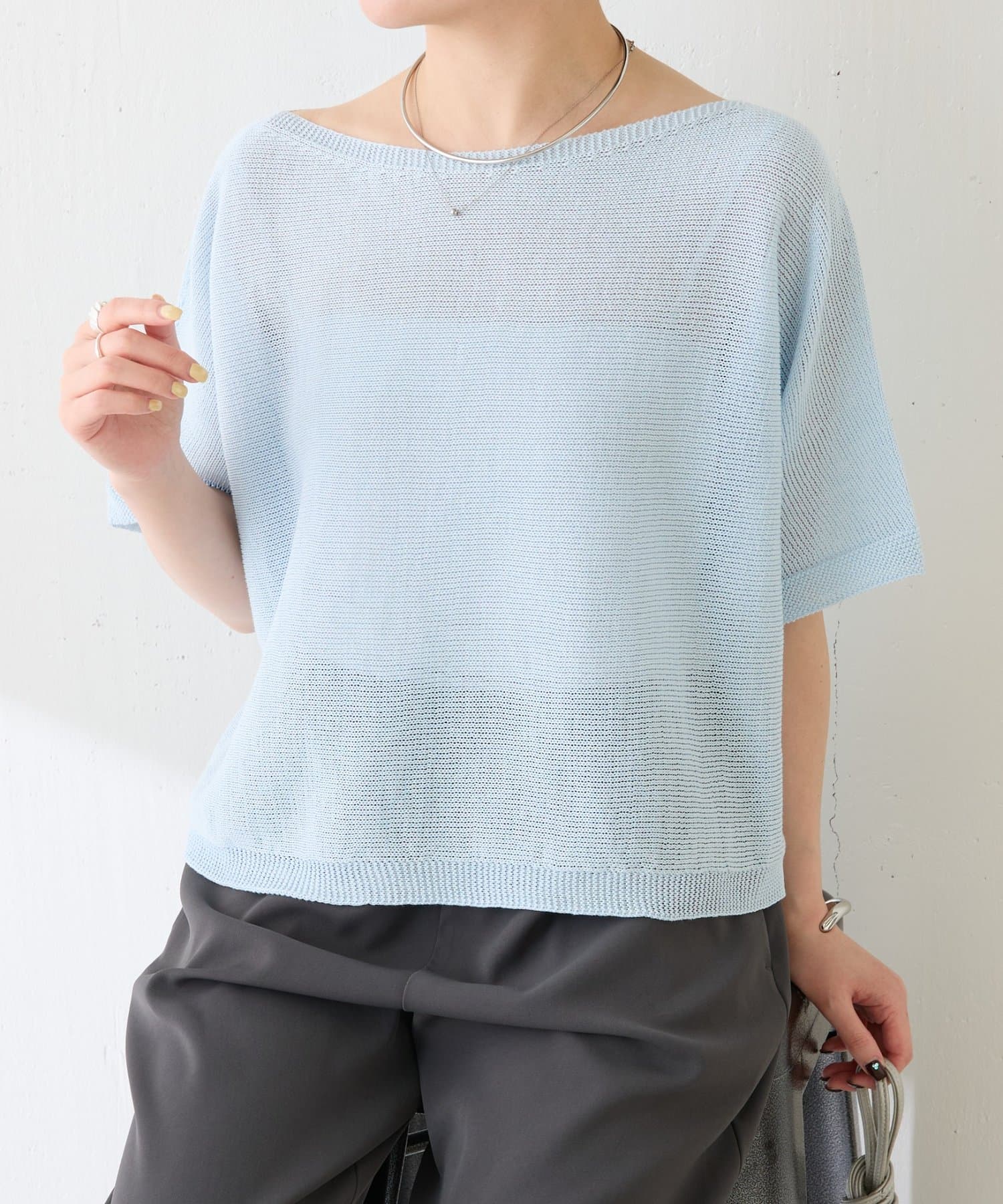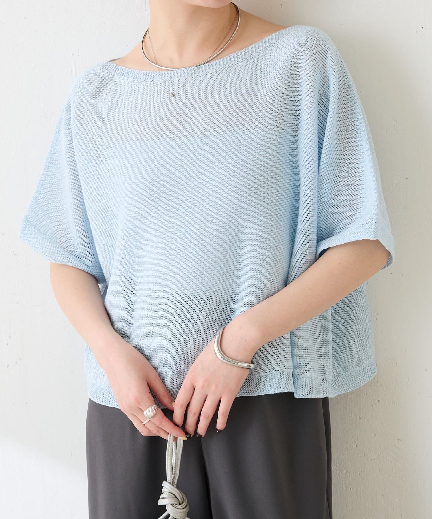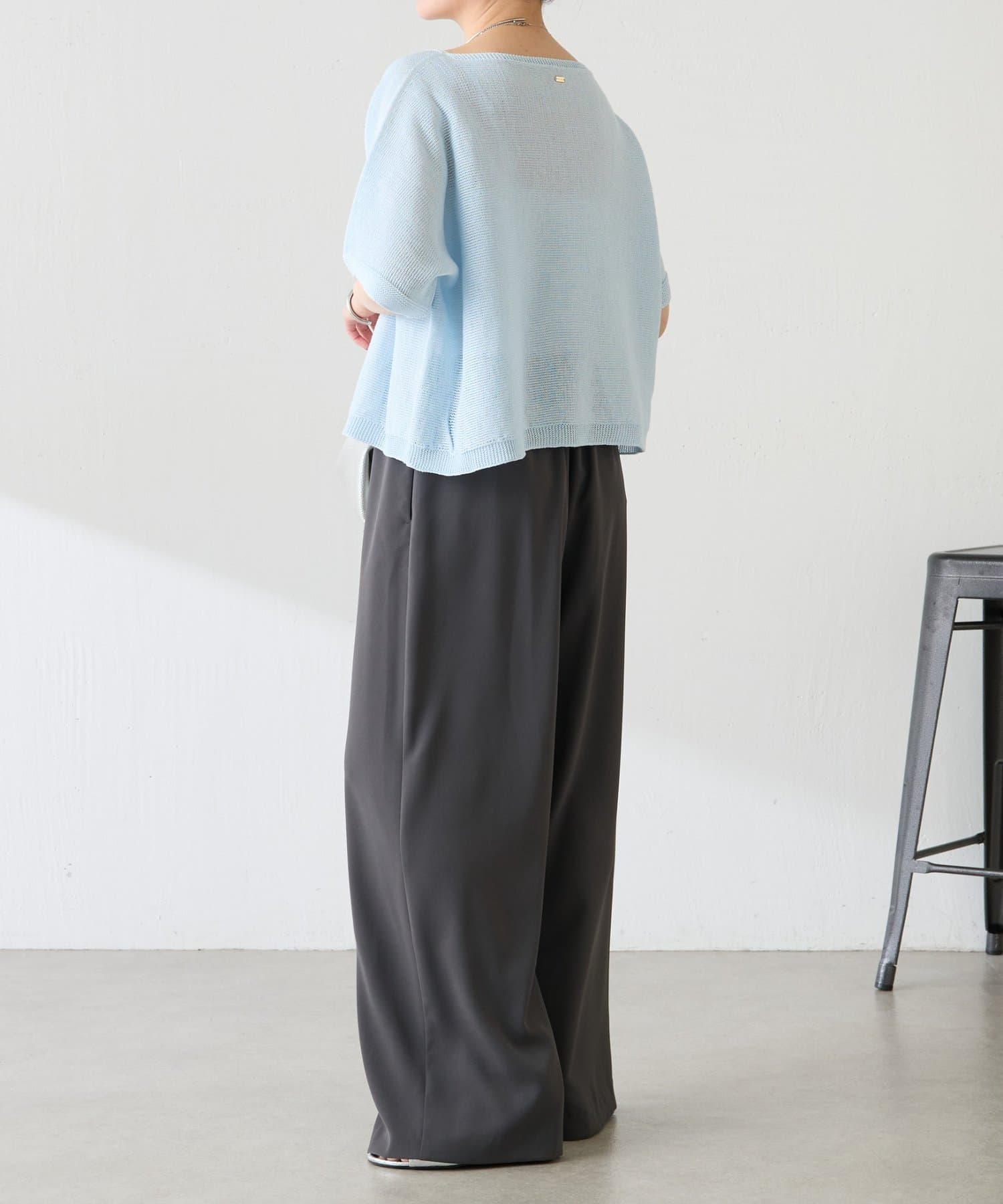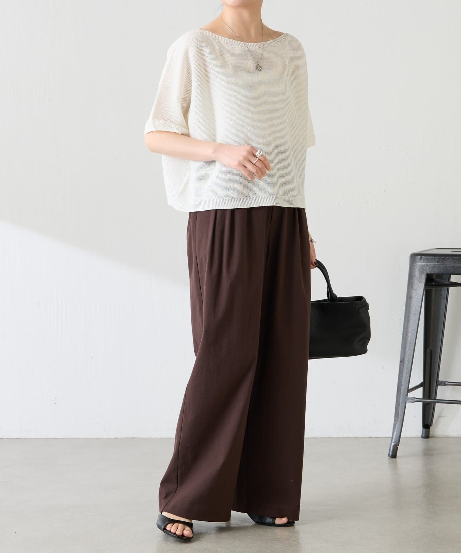 ・横に広いボートネックで顔周りもすっきりした印象に。ワンショルダーとしても着ていただけます◎
