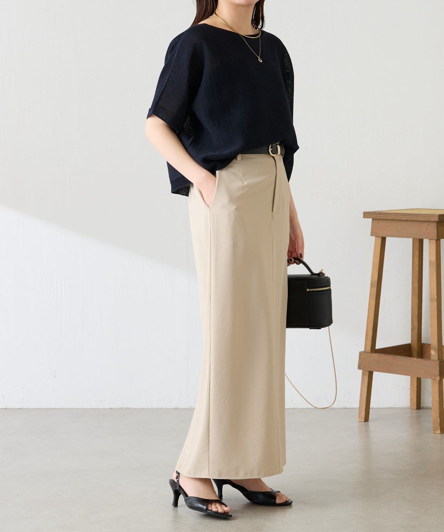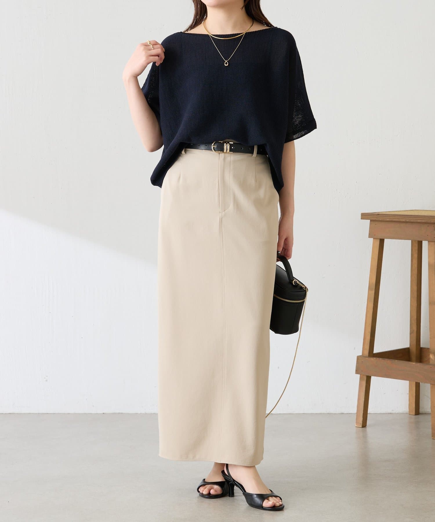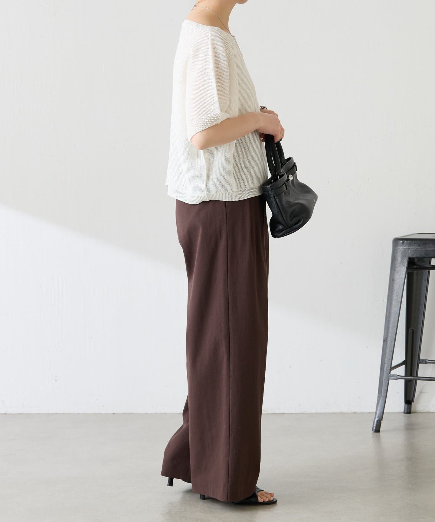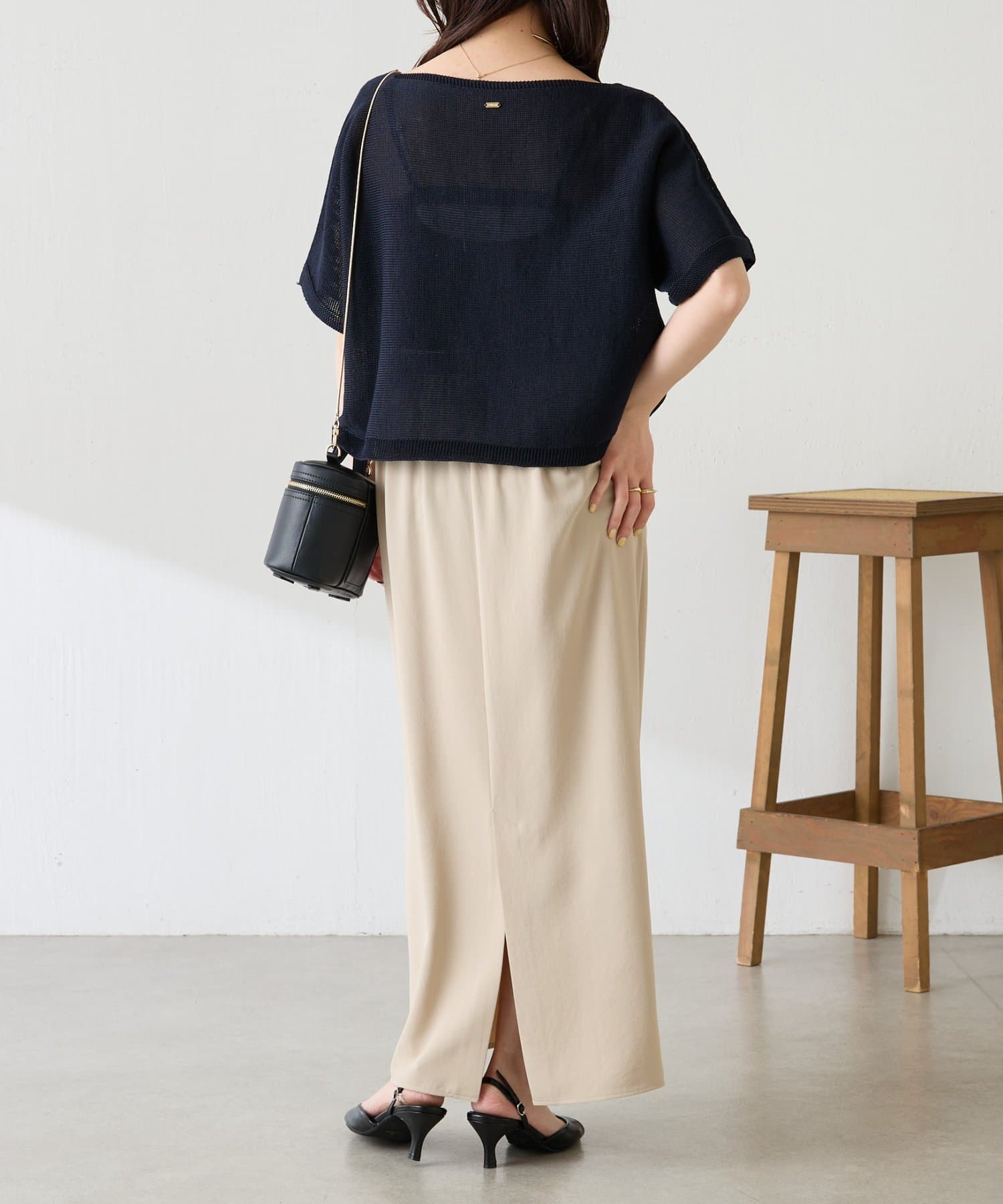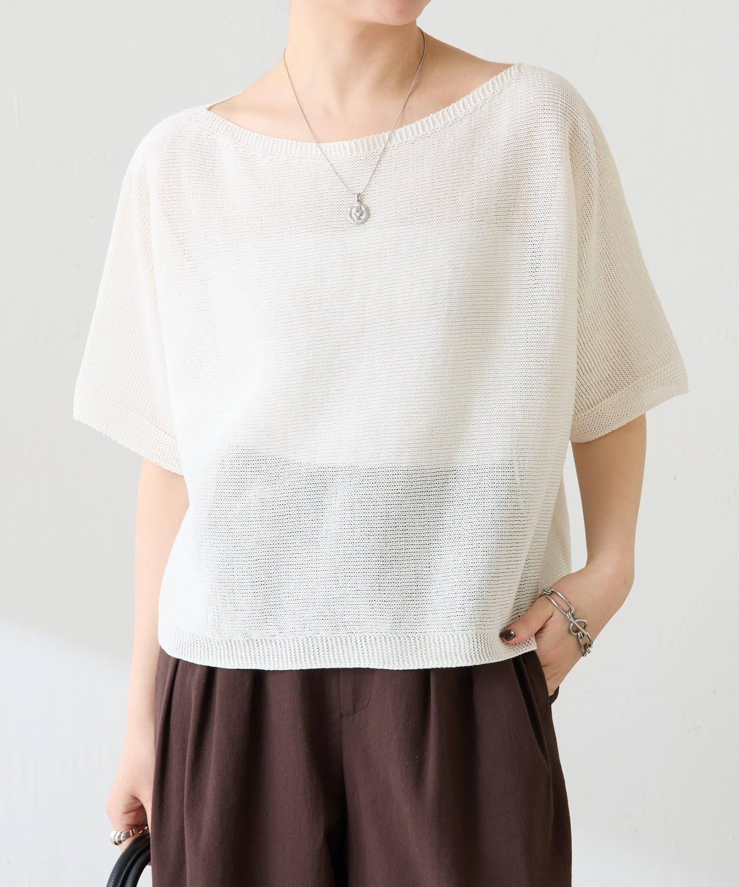 ・横に広いボートネックで顔周りもすっきりした印象に。ワンショルダーとしても着ていただけます◎
