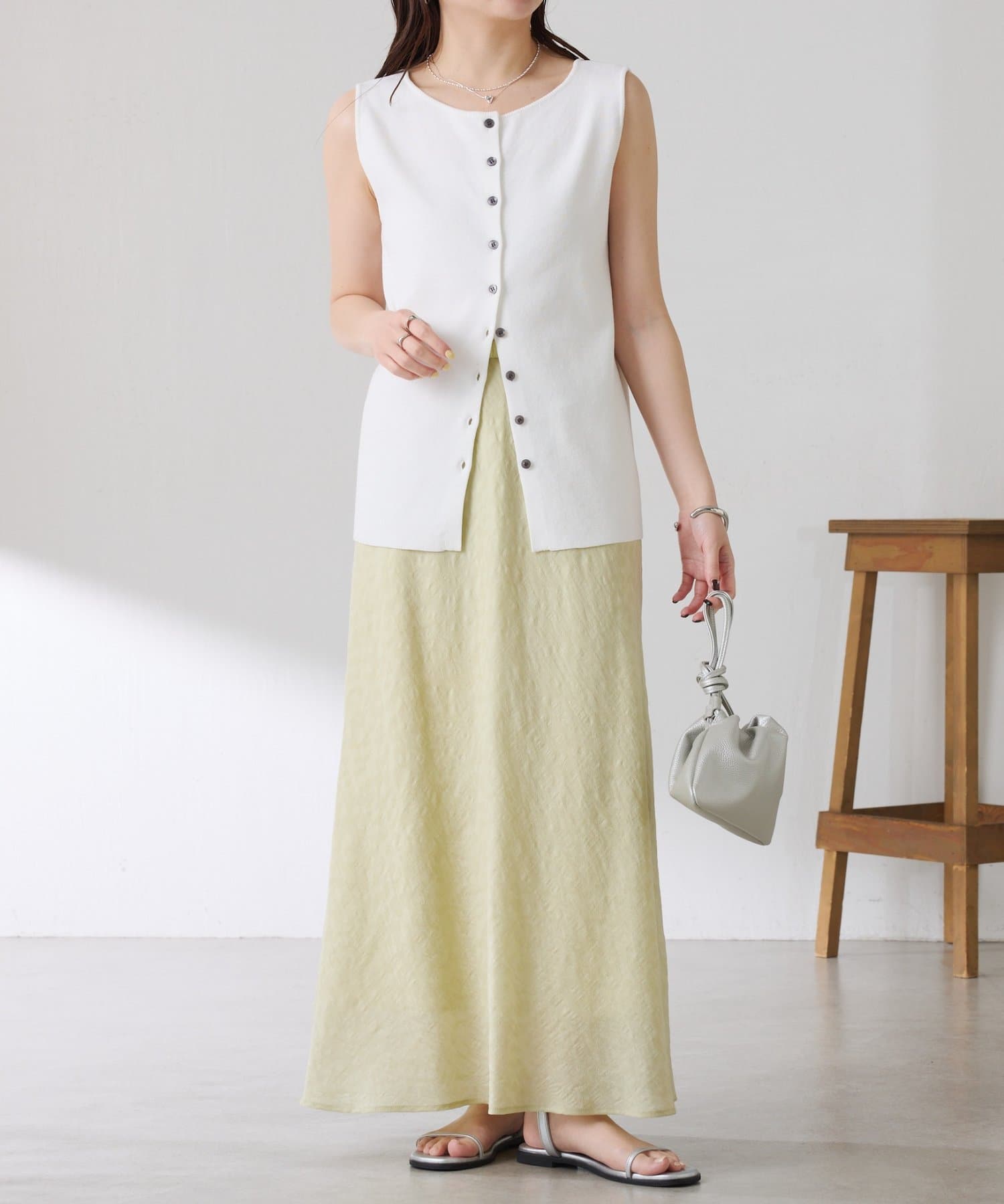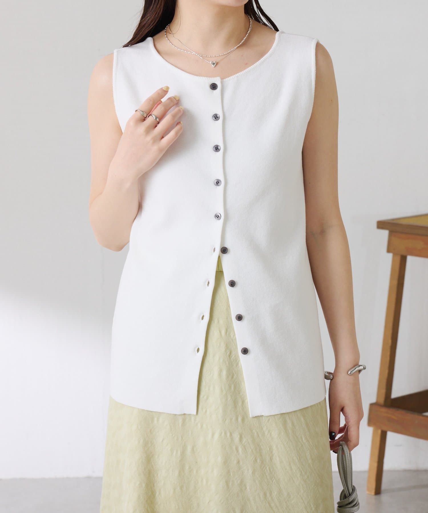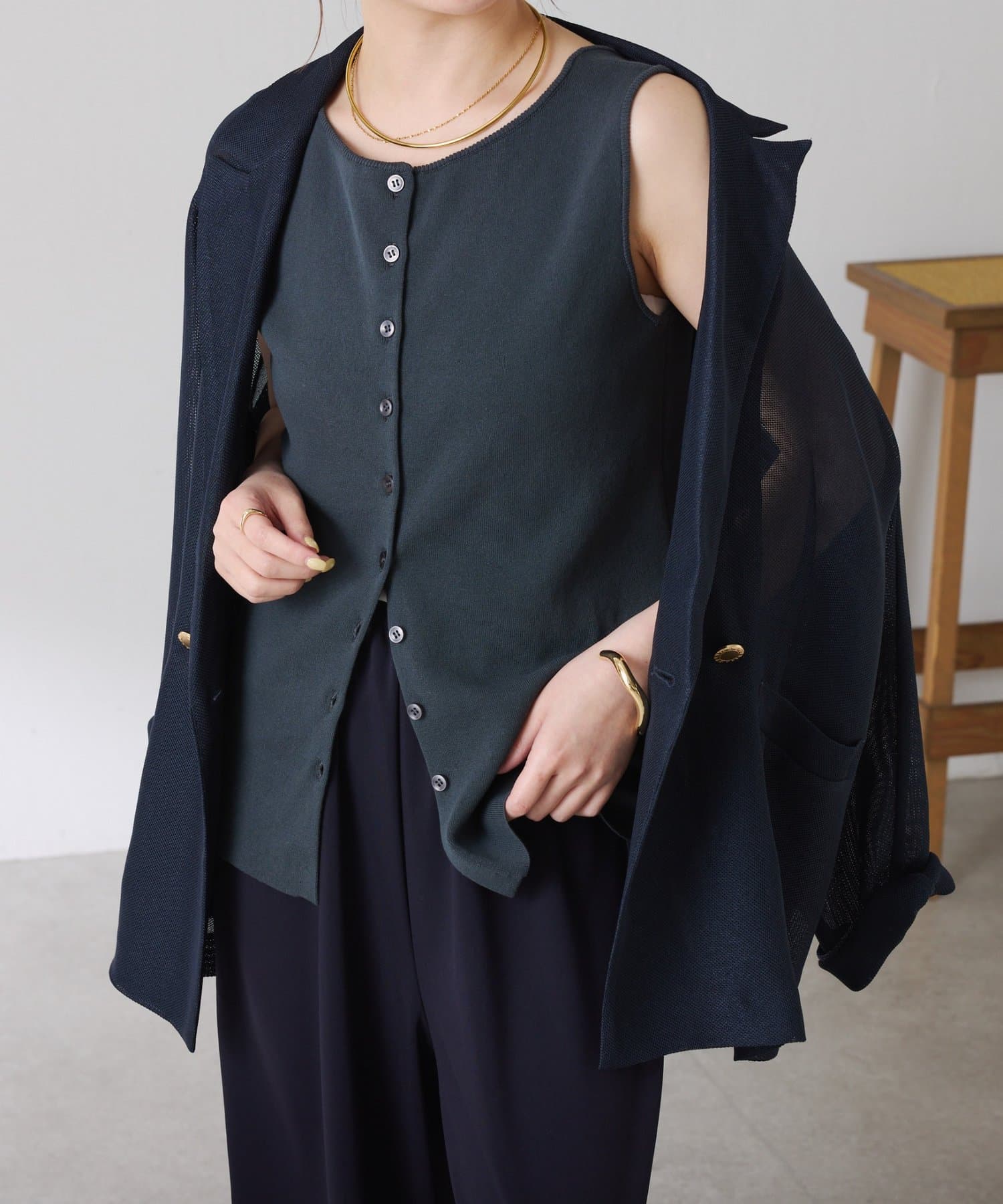 ノースリーブなのでジャケットのインナーとしても使いやすく、お仕事にもおすすめです。