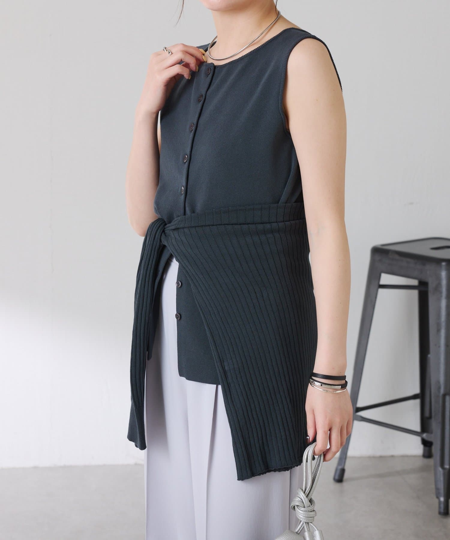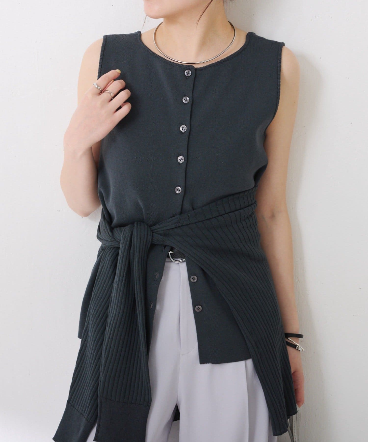【接触冷感/前後2WAY】ドライコットンノースリーブニット