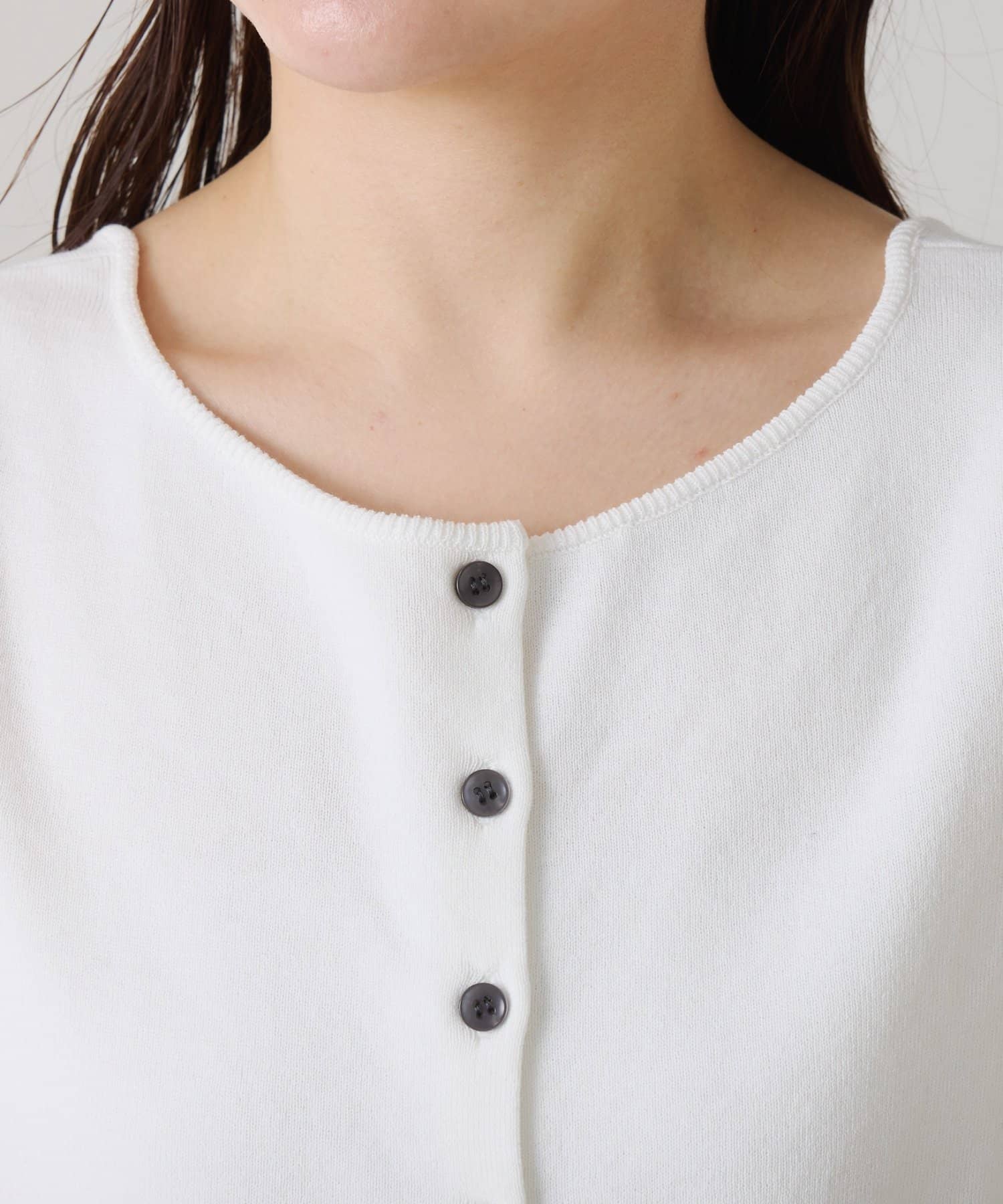 ・ボートネック側はボタンデザインで1枚でもコーデが決まります。