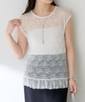 ・裾にフリルもプラスしておりインナーとしてもメインとしても使える万能トップスです◎