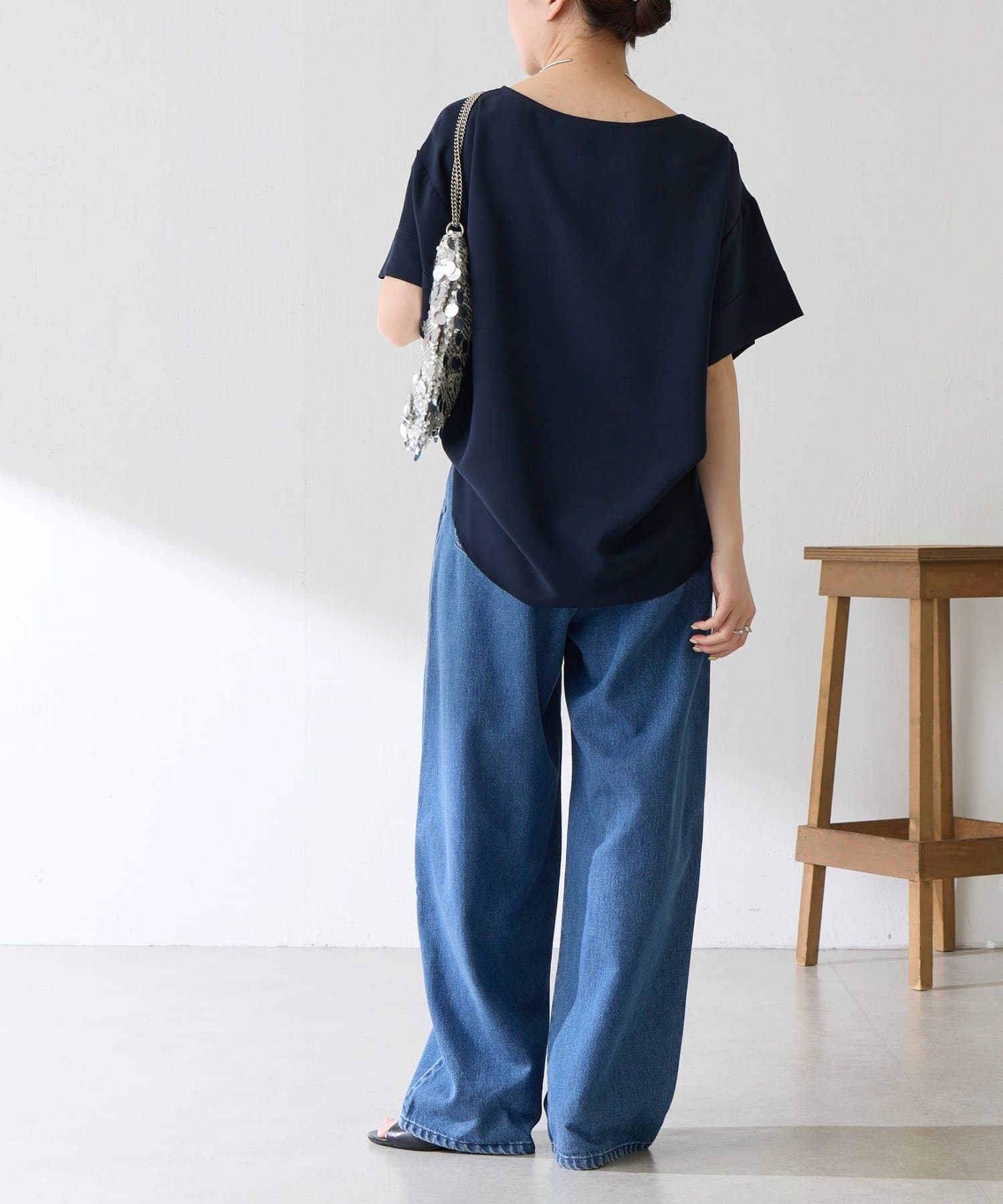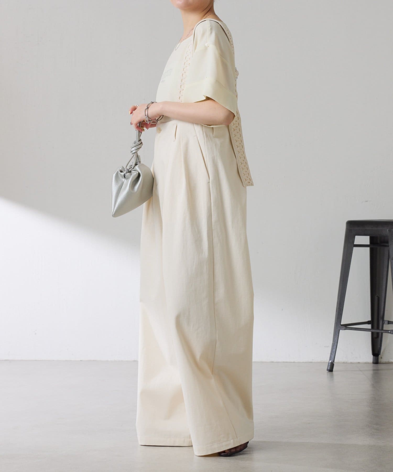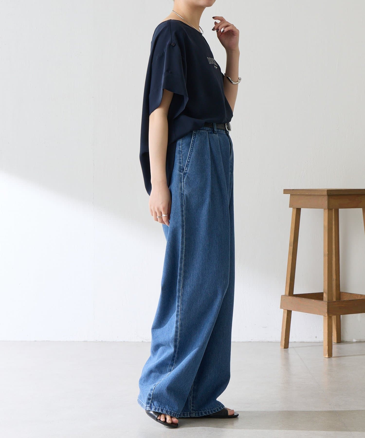 ・落ち感はのある生地なのでジャケットなどの羽織りを着ても袖のおさまりは良いのも嬉しいポイントです。
