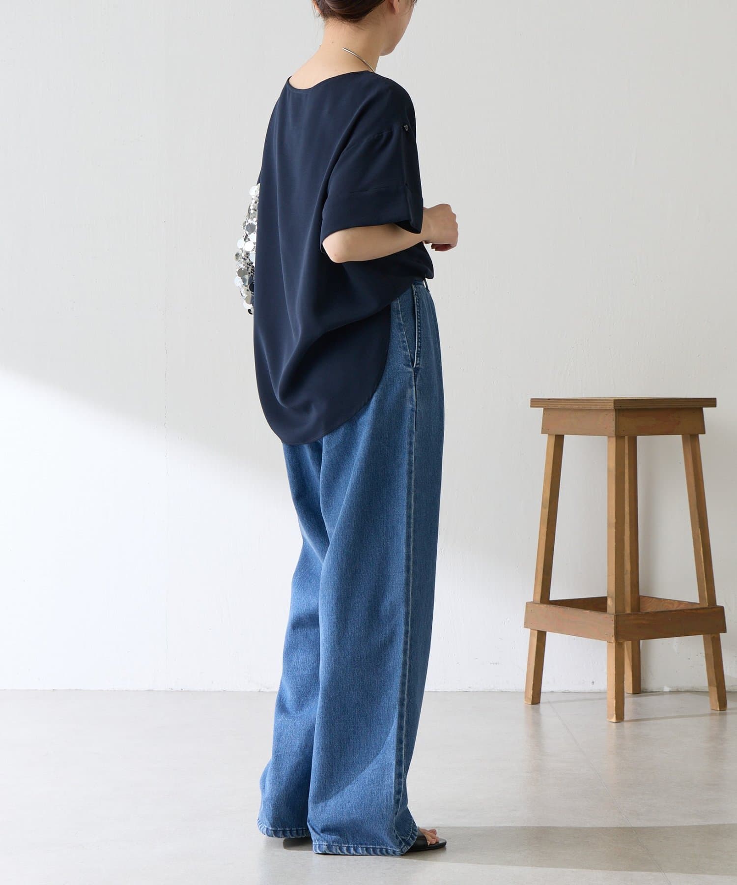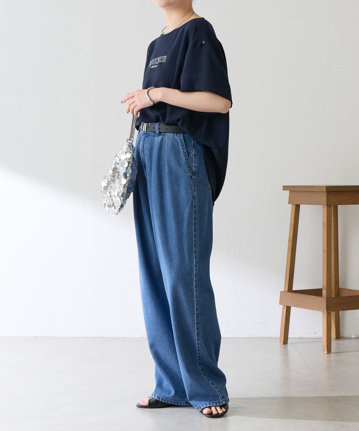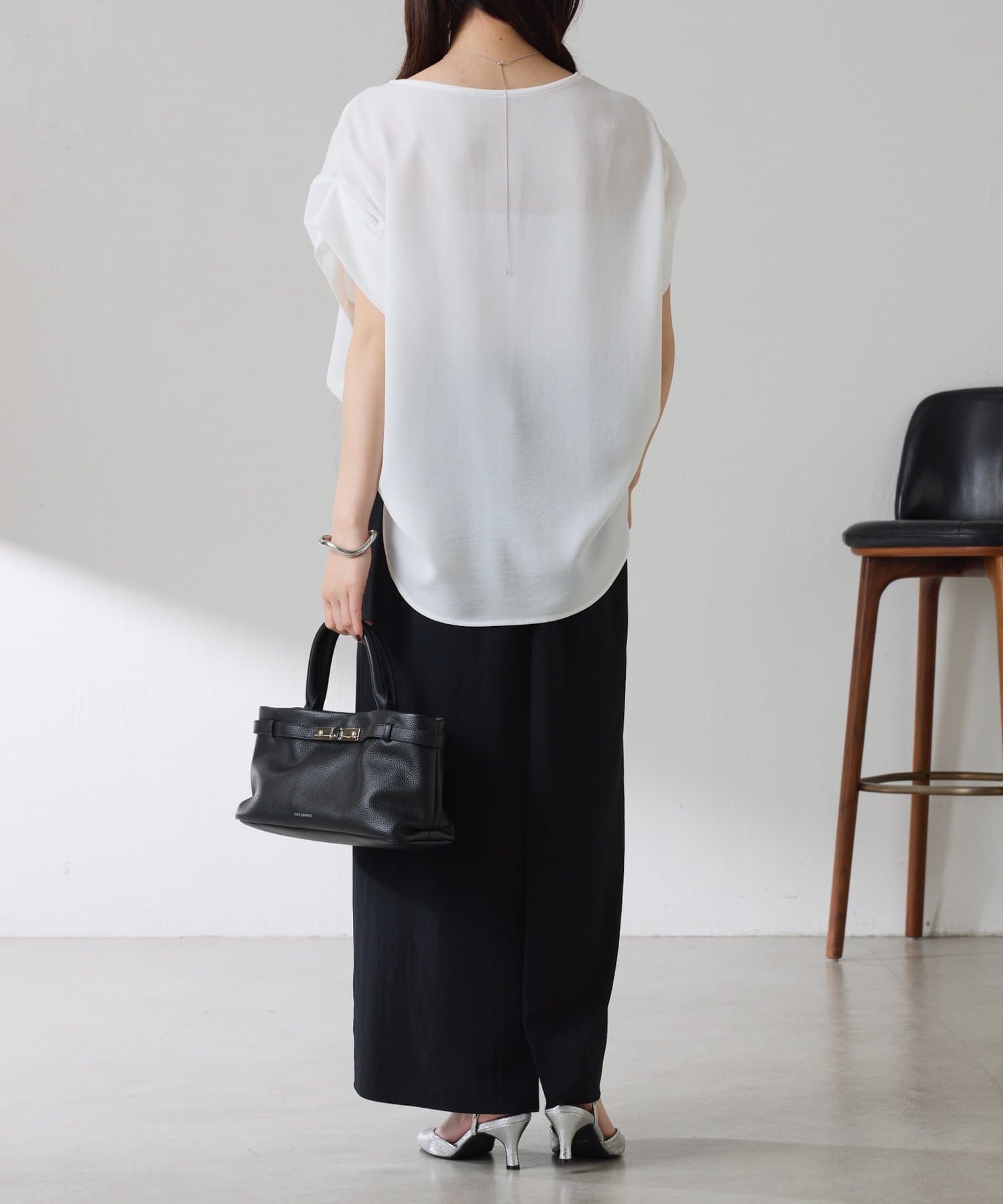 ・落ち感はのある生地なのでジャケットなどの羽織りを着ても袖のおさまりは良いのも嬉しいポイントです。