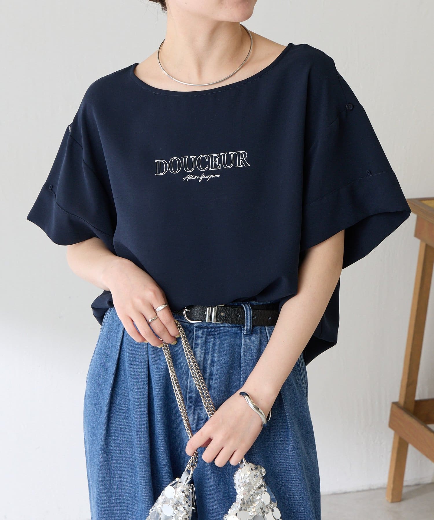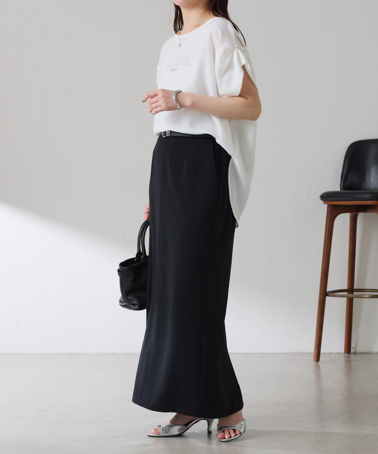 【袖をアレンジできる】袖アレンジジョーゼットロゴTシャツ