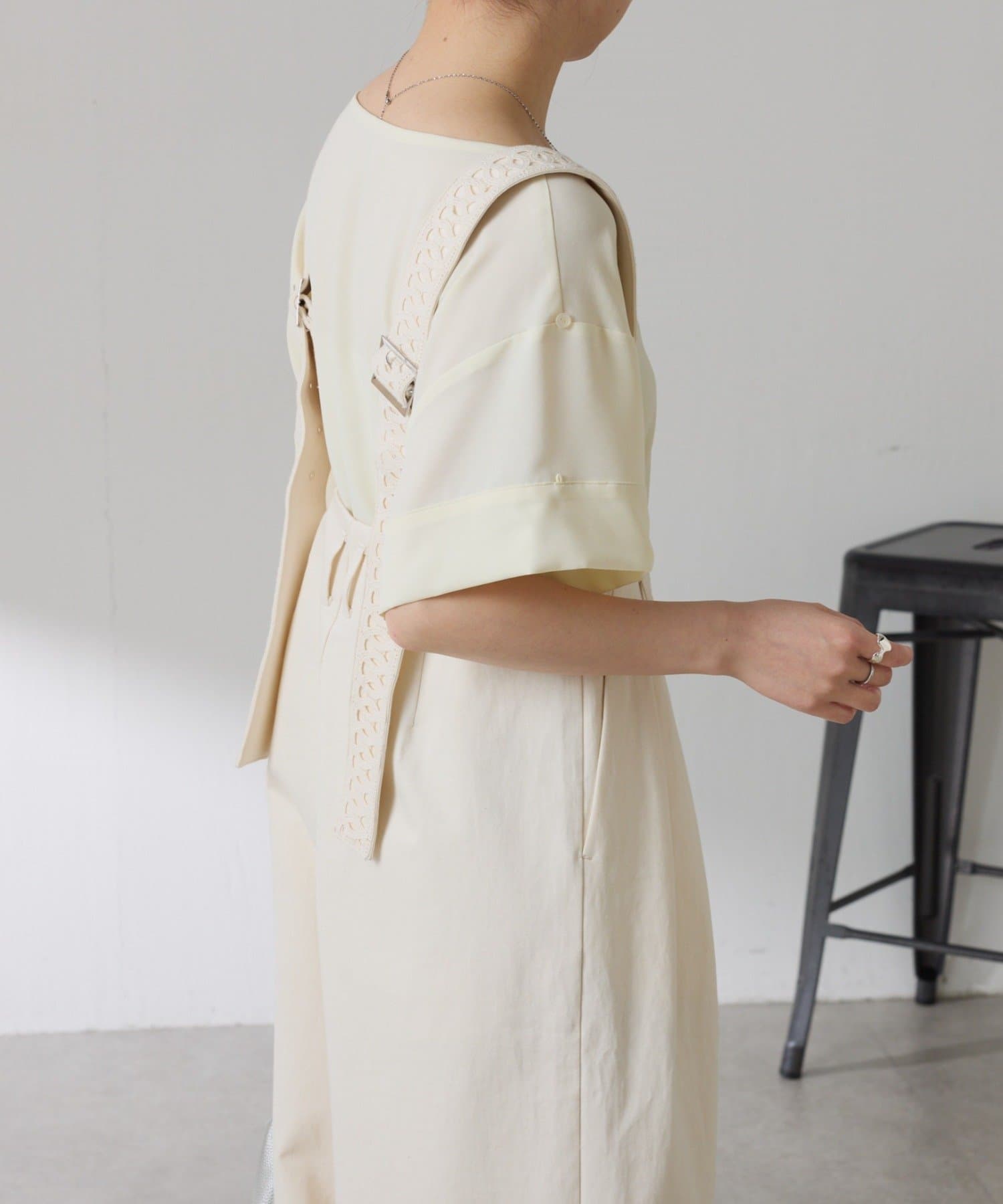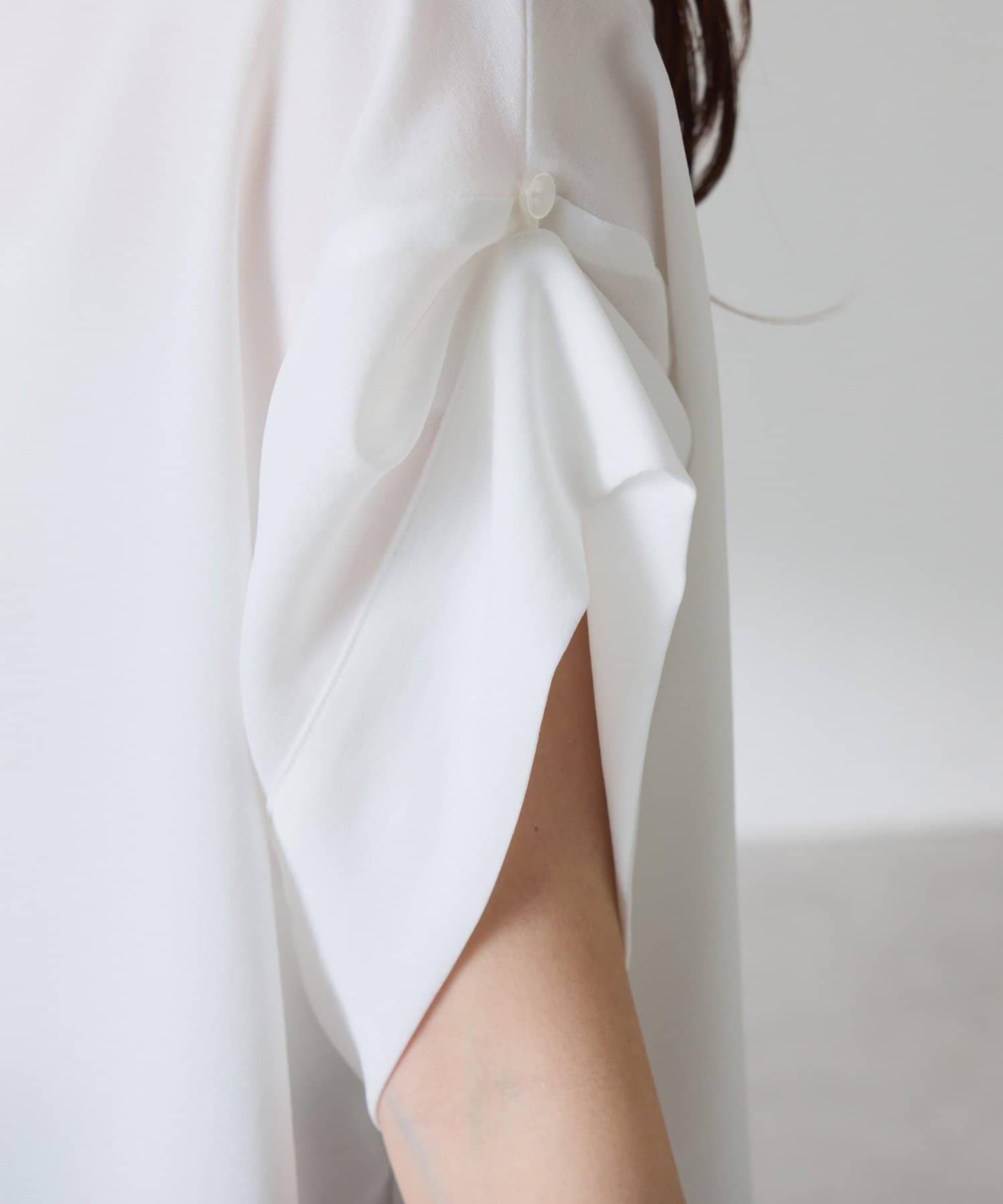 ・肩にボタンが付き。袖を肩のボタンにつけたらフレンチ袖位で、ボタンを外すと半袖くらいの丈感で着ていただけます◎