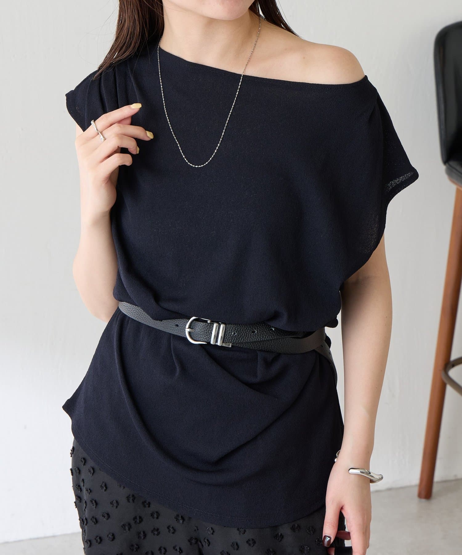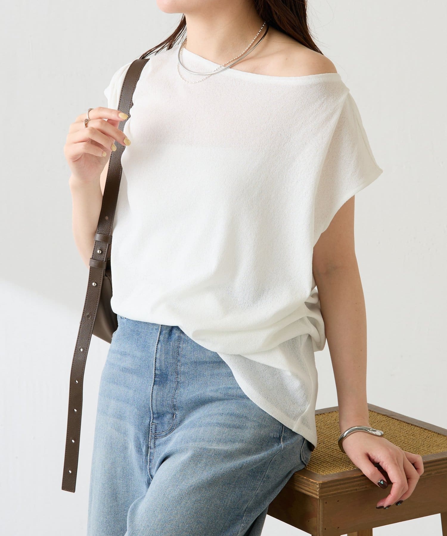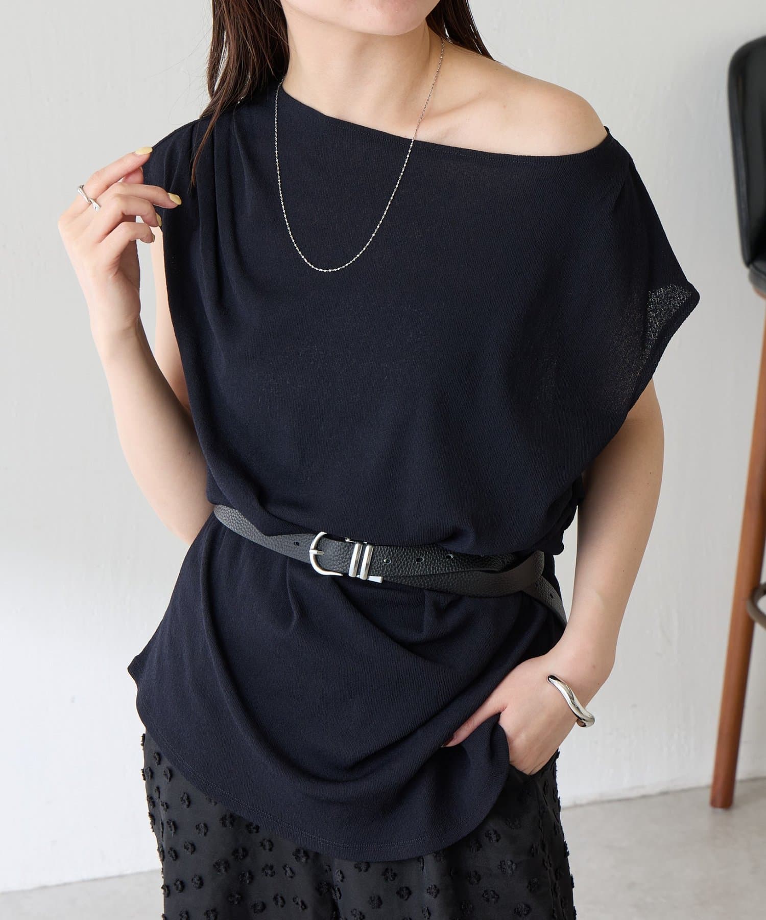 肩を落としてワンショルダーやオフショルダーとして着るのもおすすめです。