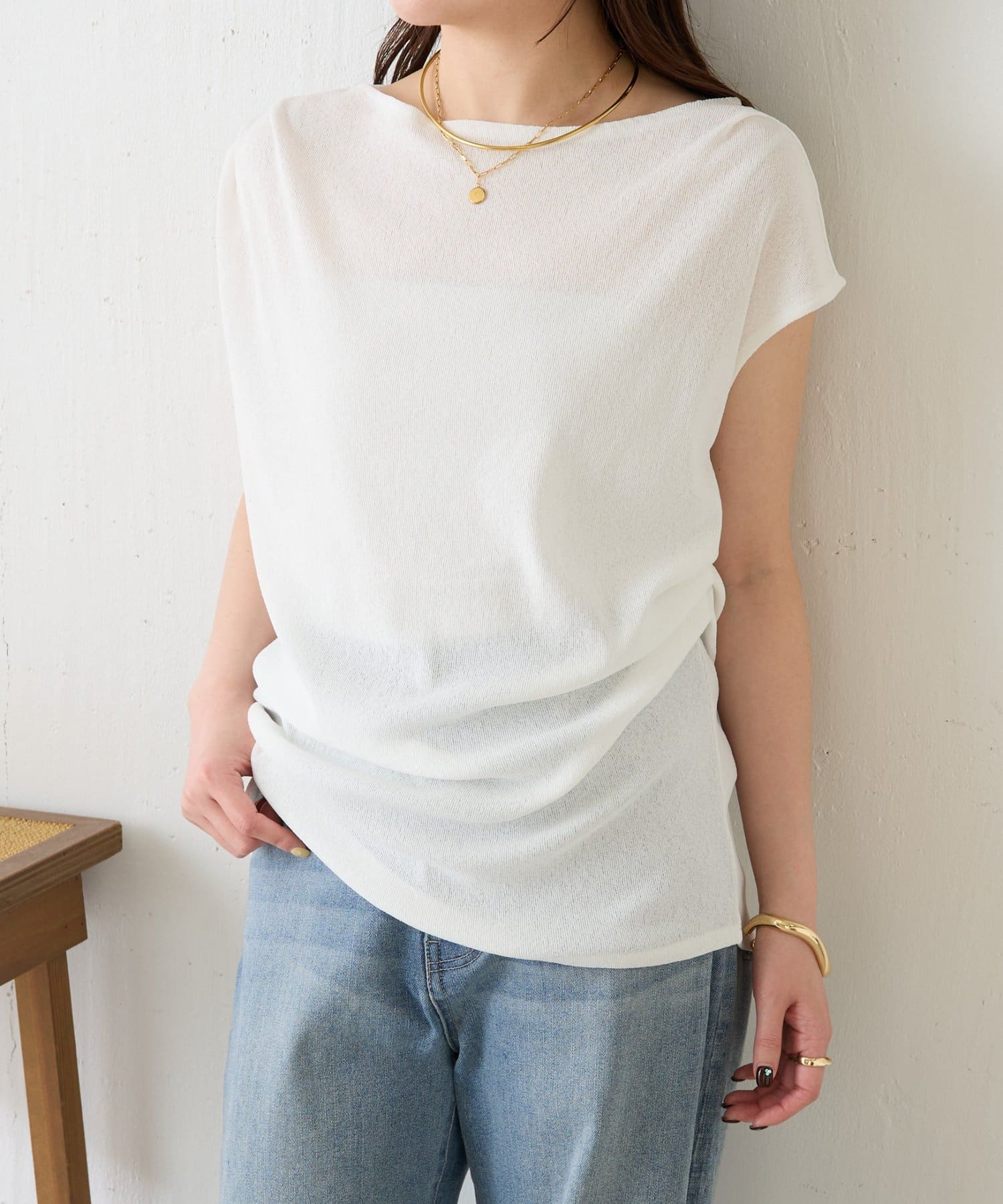 【上品見えカットソー/シアー】アシメタックフレンチカットソー