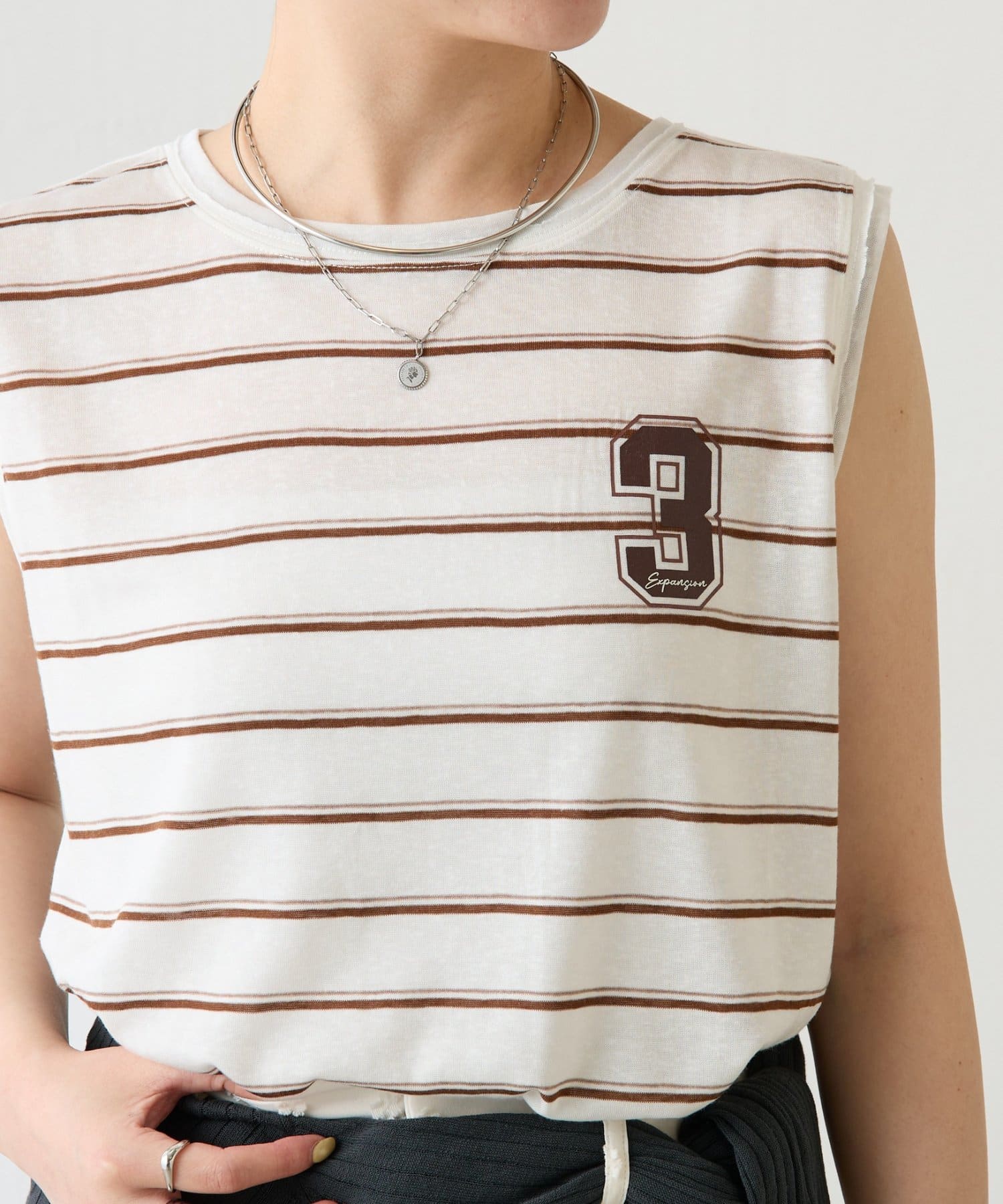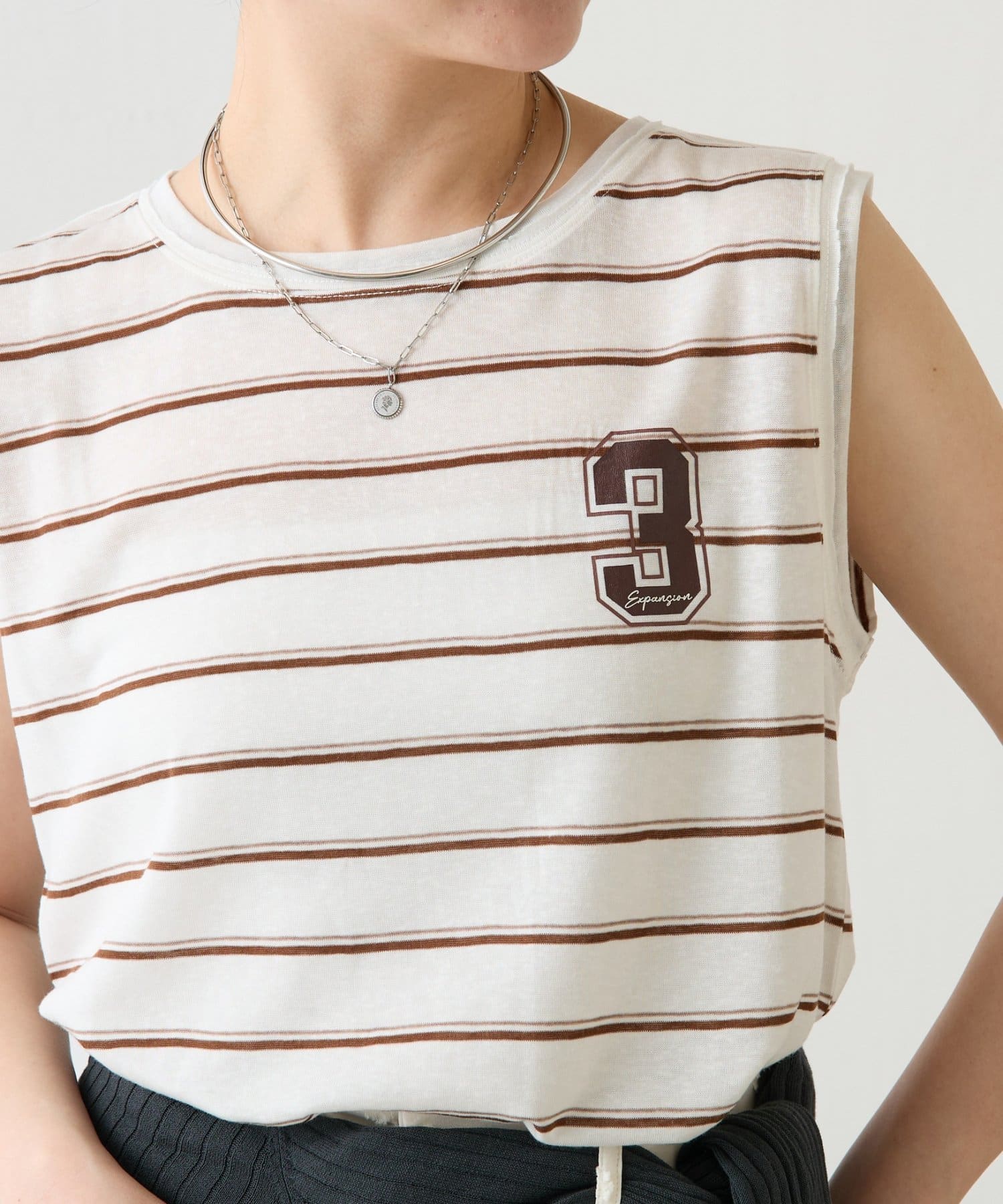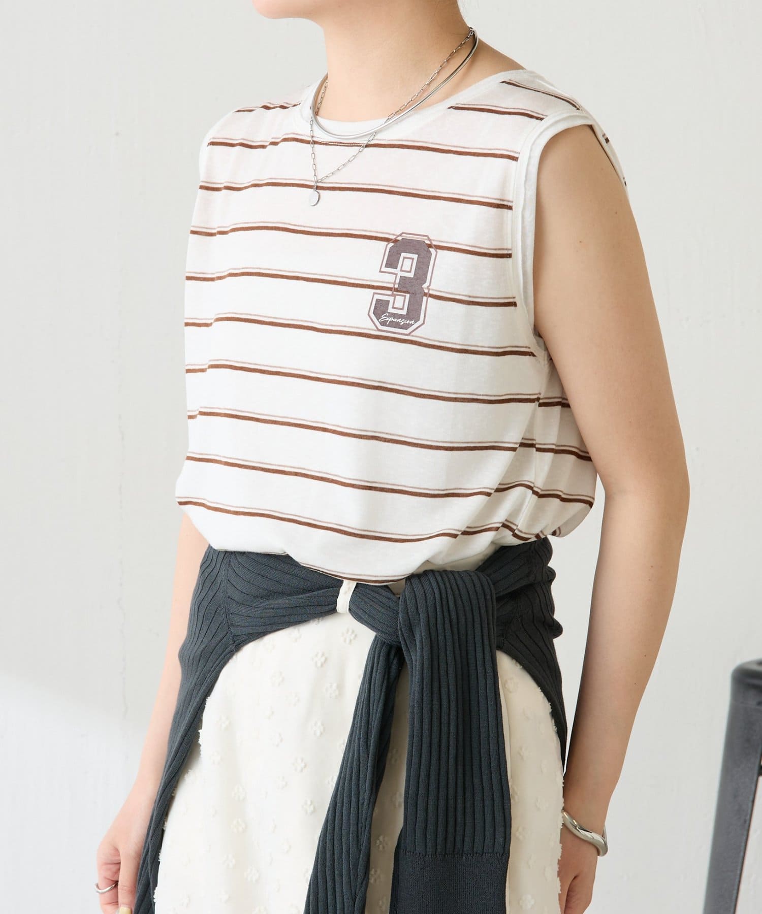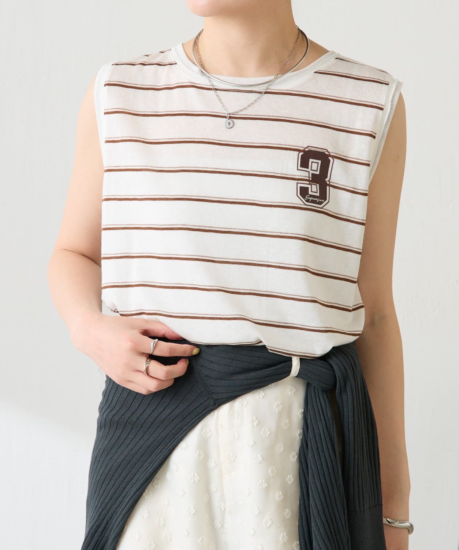 TOP > COLLAGE GALLARDAGALANTE > レディース > トップス > タンクトップ > シアーボーダーナンバーロゴノースリーブ