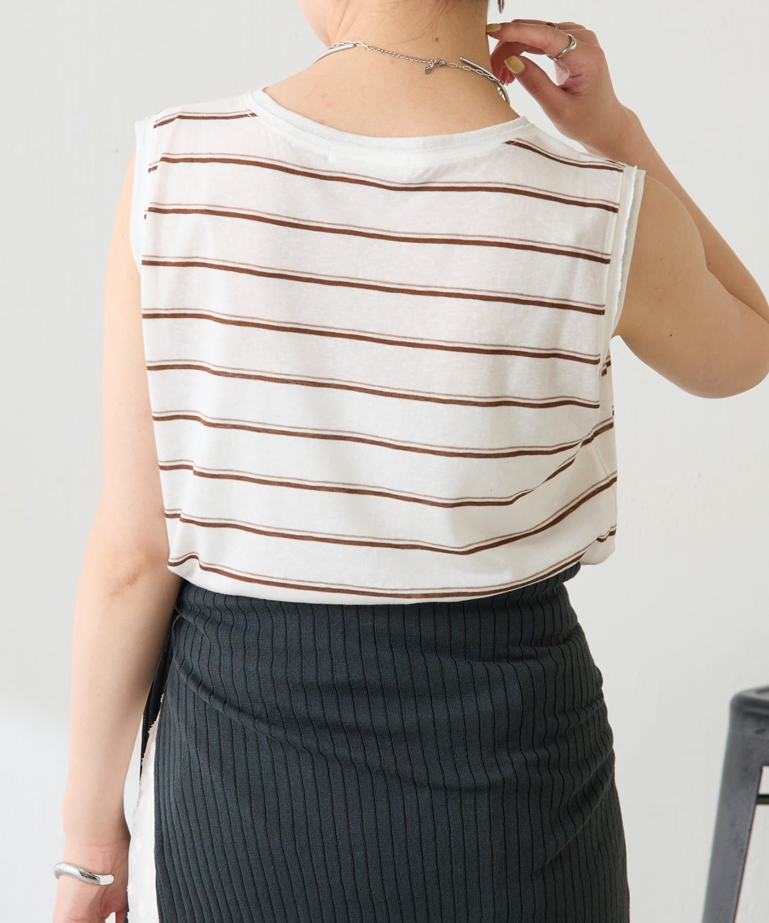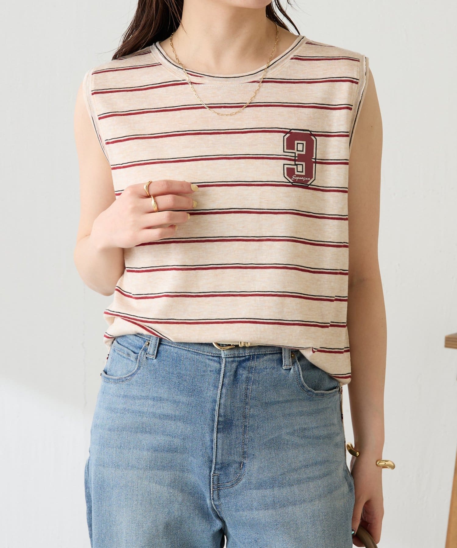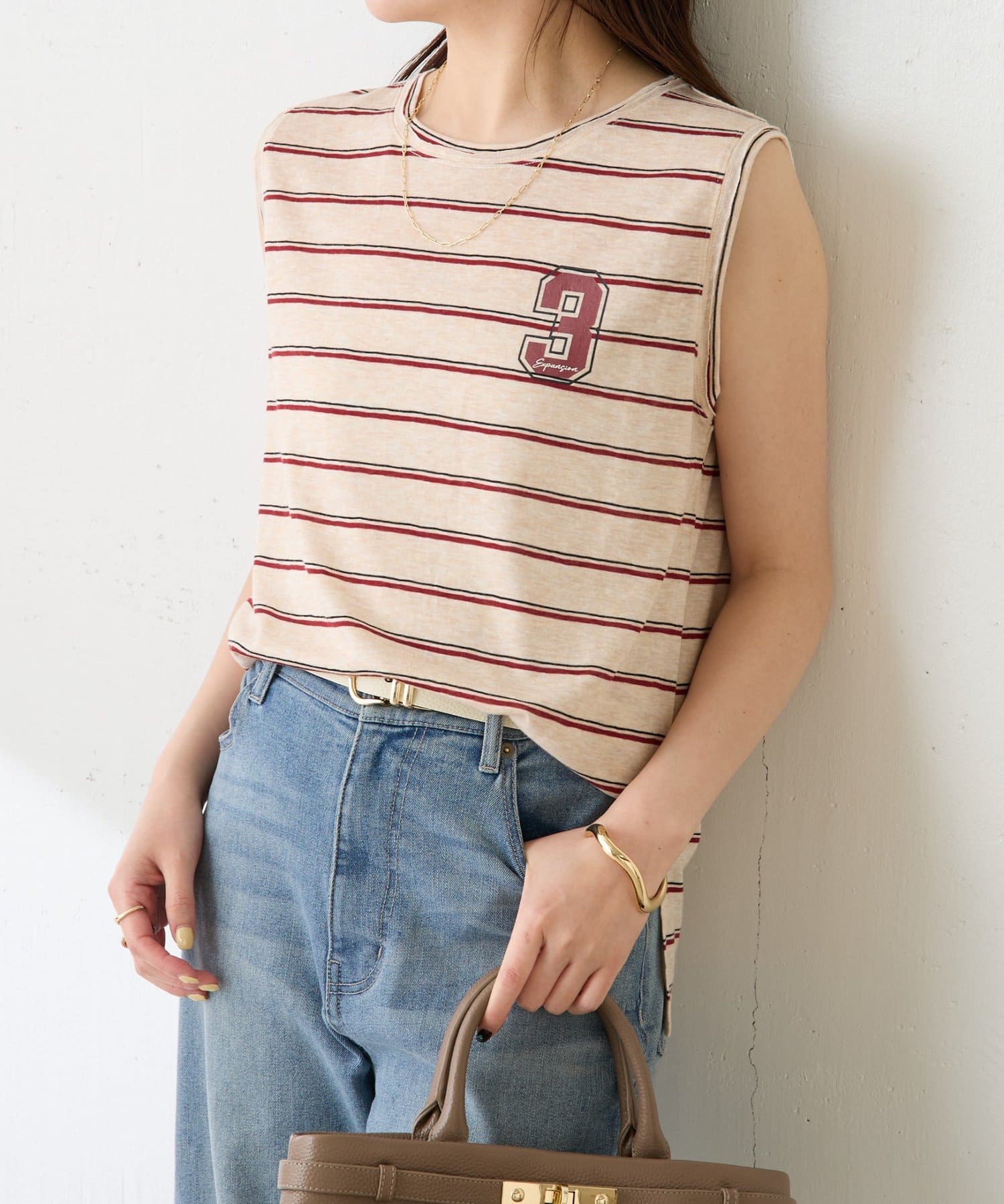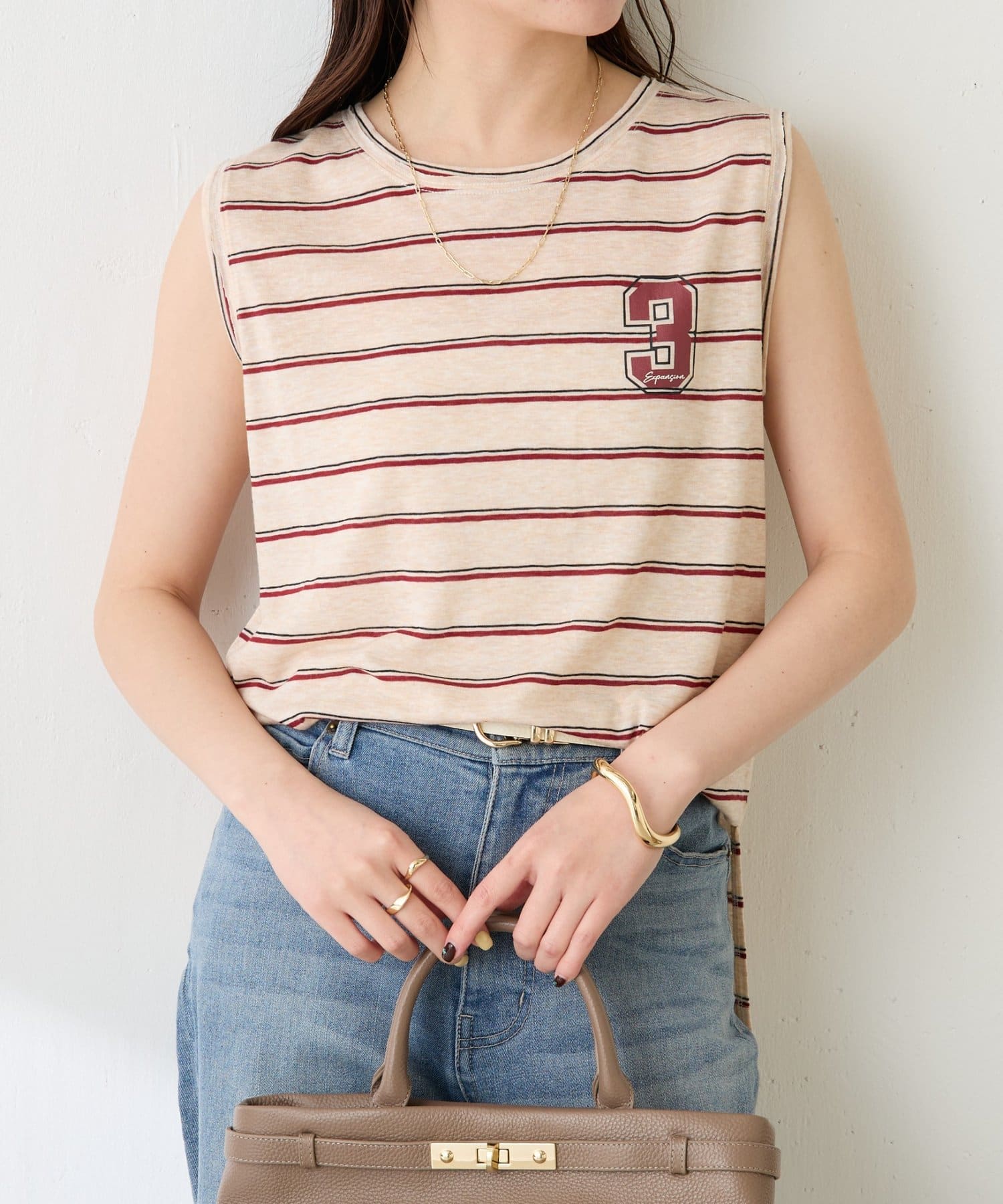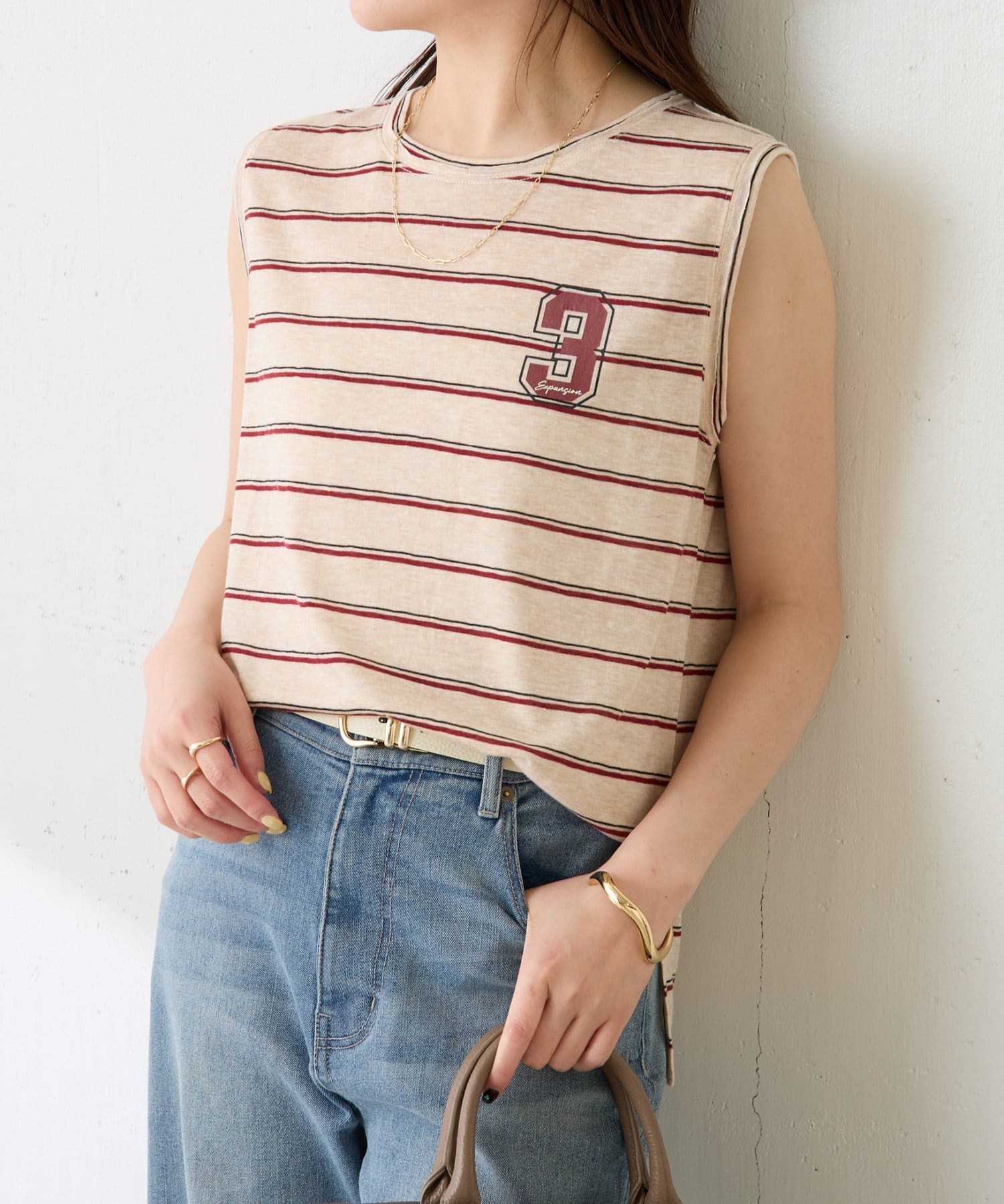 TOP > COLLAGE GALLARDAGALANTE > レディース > トップス > タンクトップ > シアーボーダーナンバーロゴノースリーブ