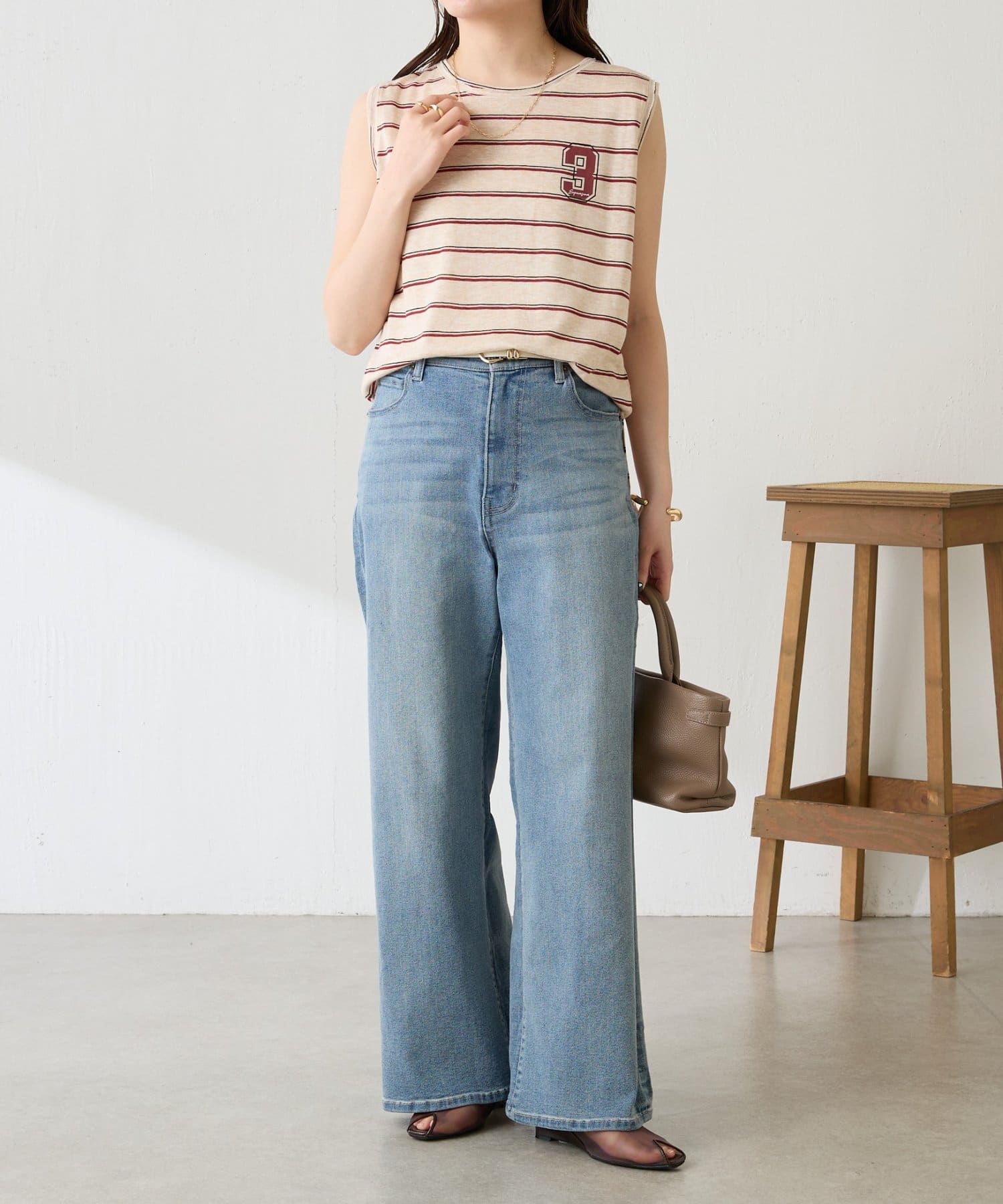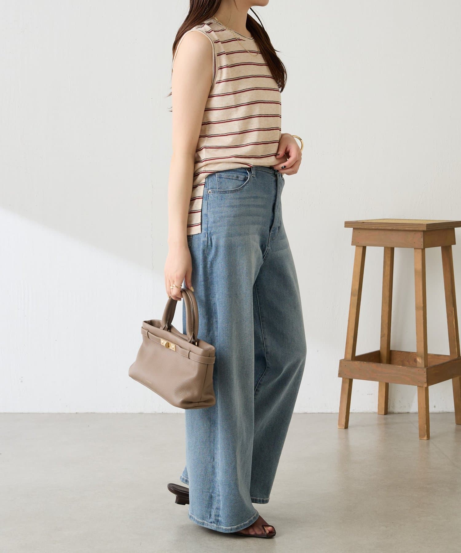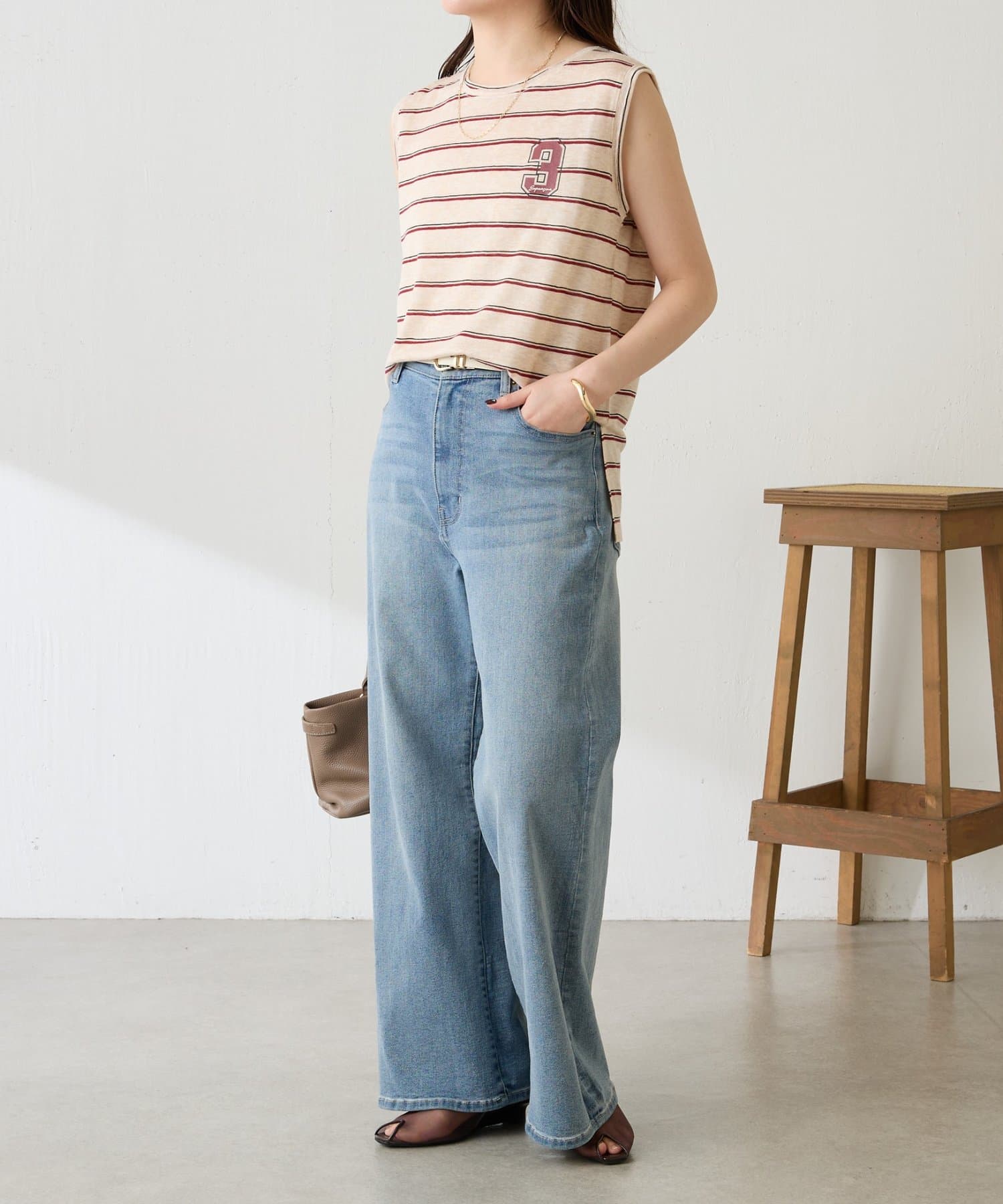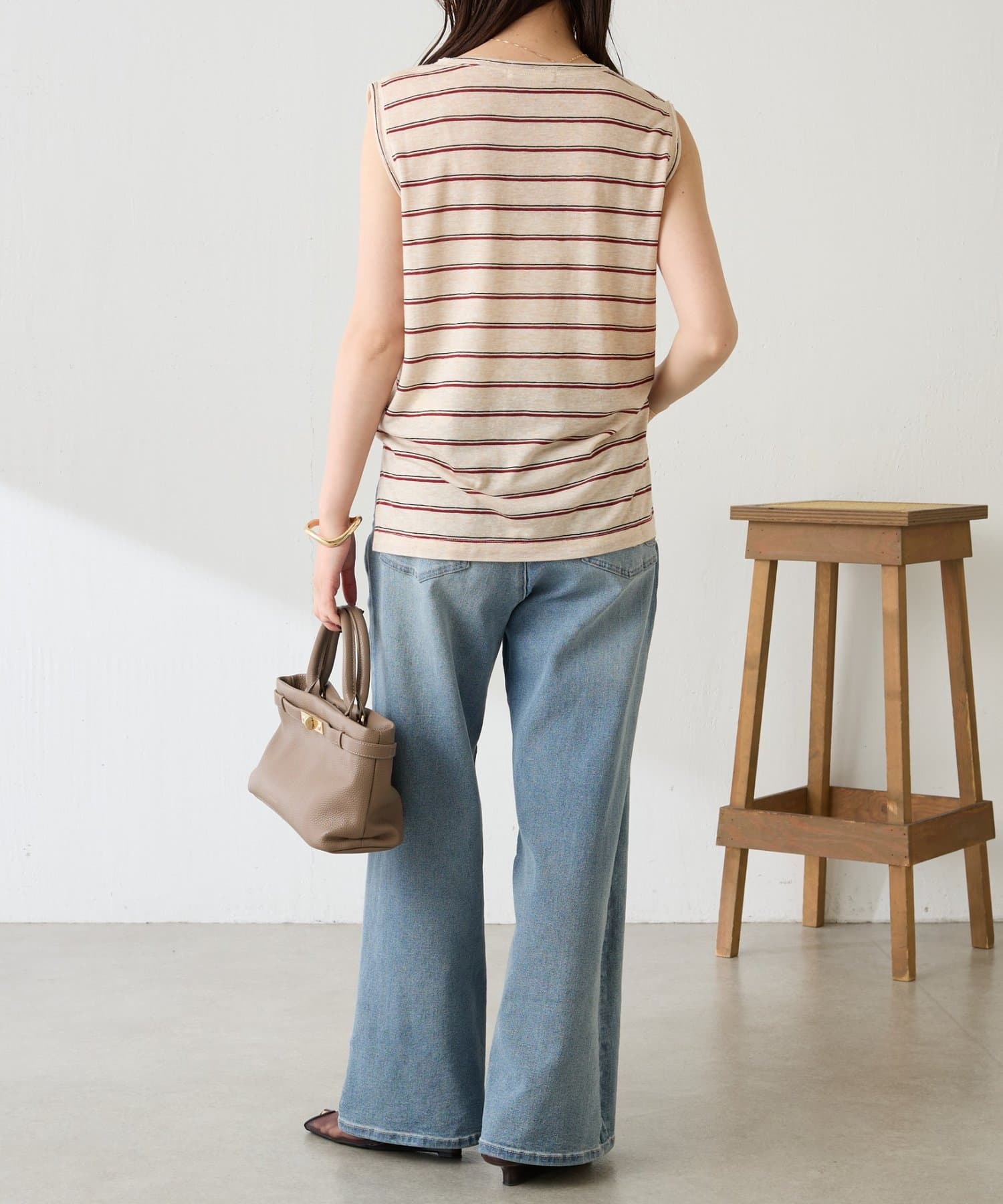 ・羽織りと一緒に着た時でも涼しさも叶うノースリーブアイテム。