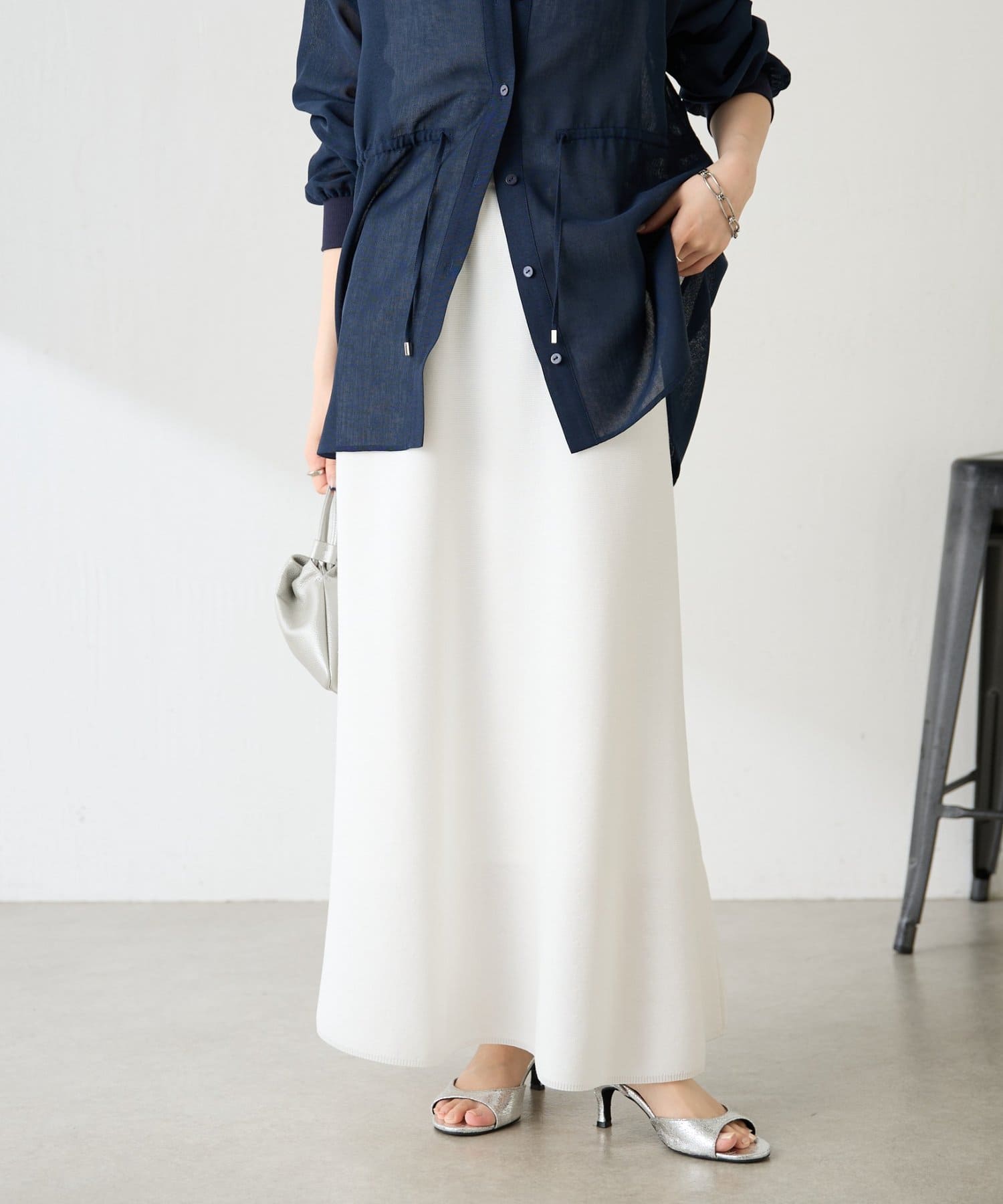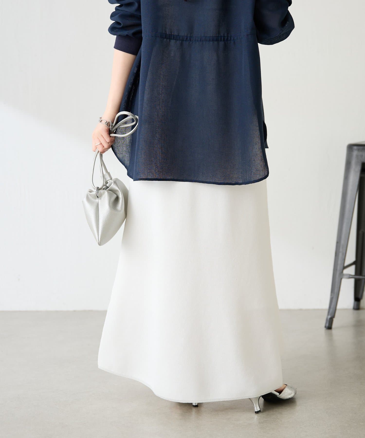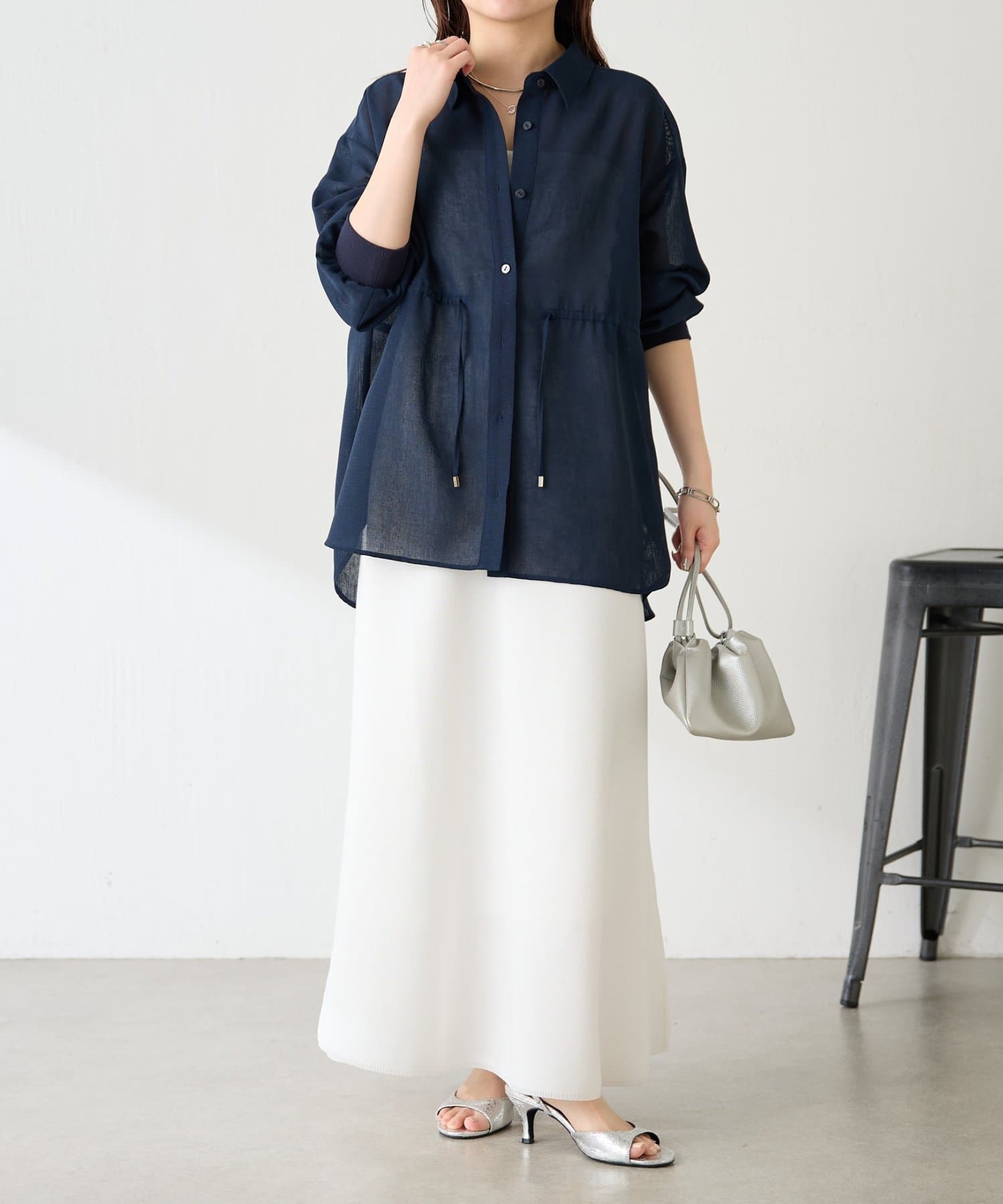シアーのブラウスやシャツと合わせた綺麗めコーデは、暑くなる時期にもバランスよく着ていただけるのでおすすめです。