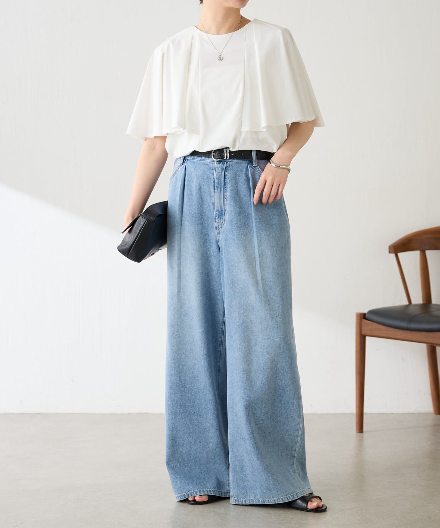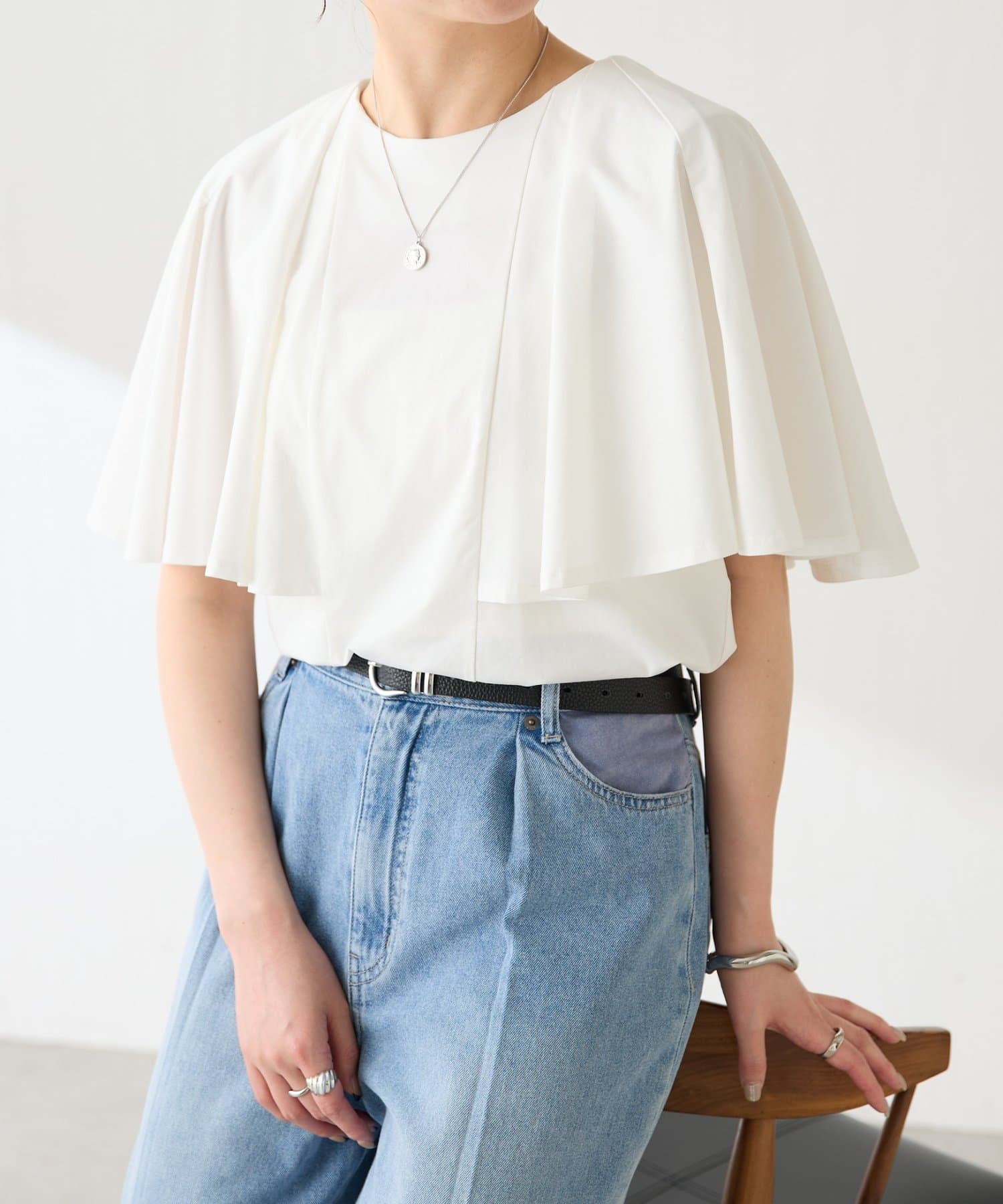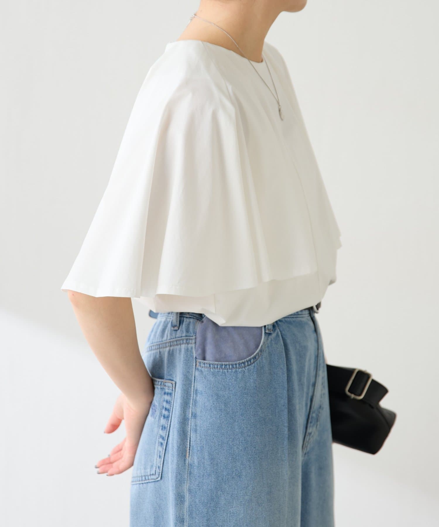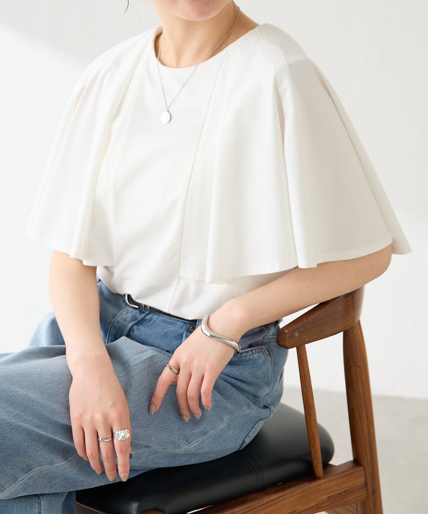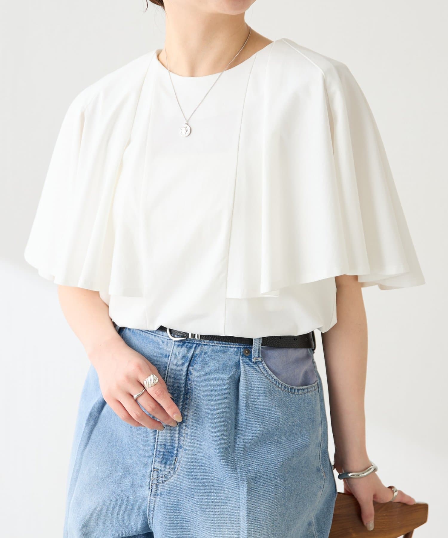 【接触冷感/二の腕カバー】ケープデザインカットソー
