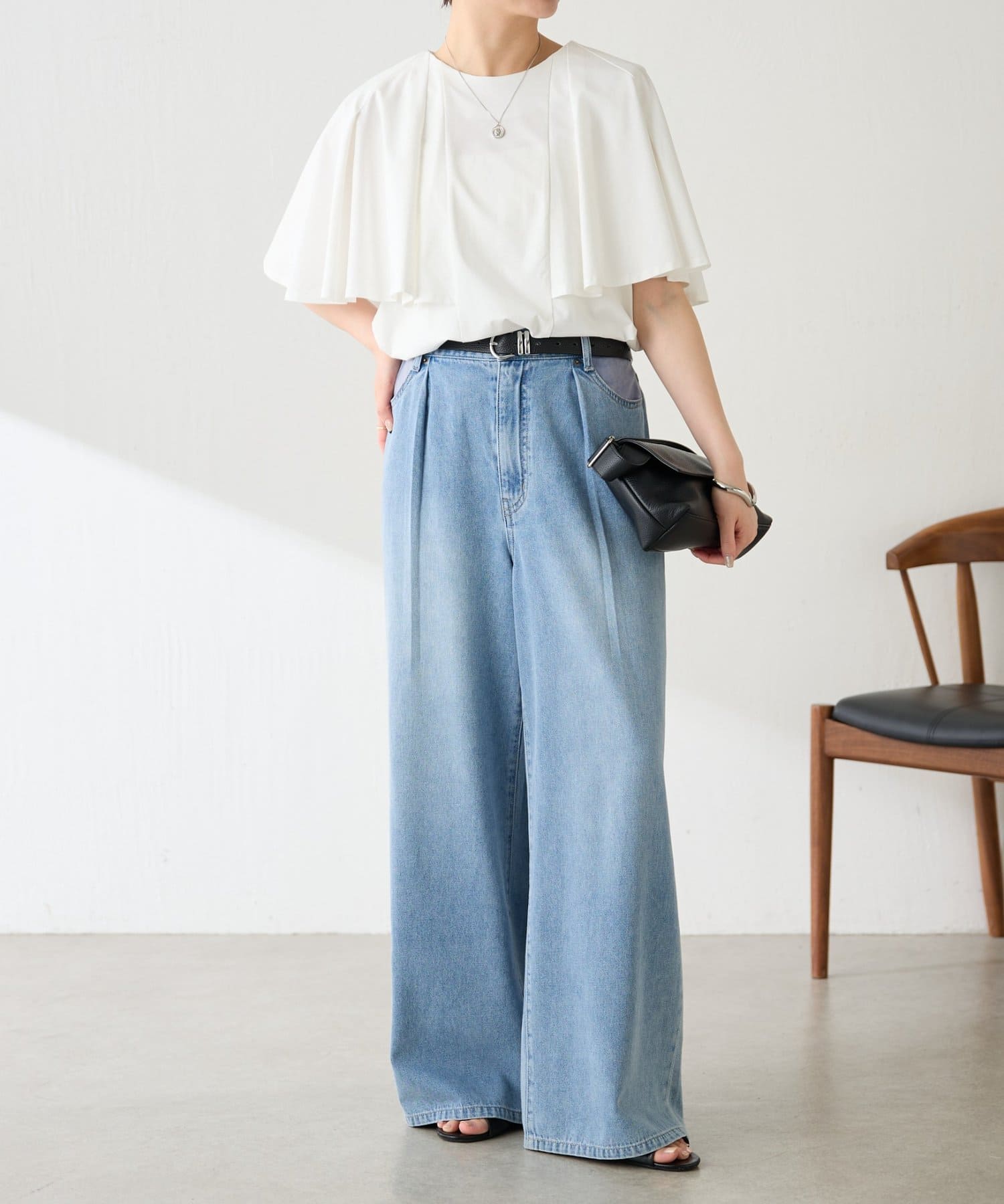 ・普通のTシャツよりもキレイめ素材なので、オンオフどちらのスタイリングでも活躍します◎