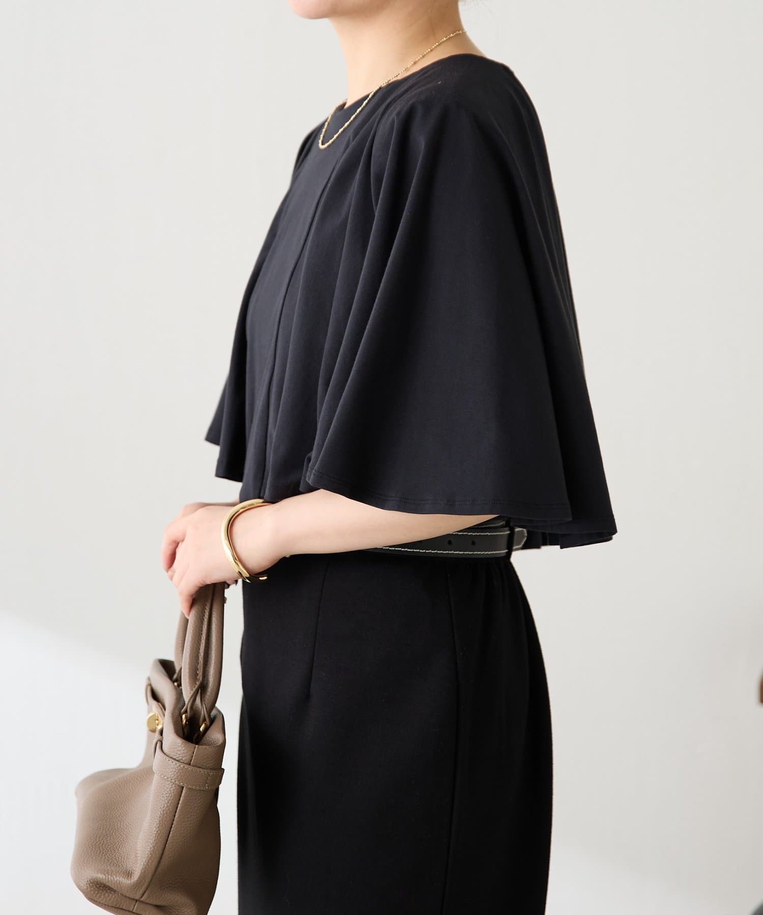 ・ケープデザインが肘上くらいまであるので、日焼け対策や肌を露出したくない方にもおすすめ。