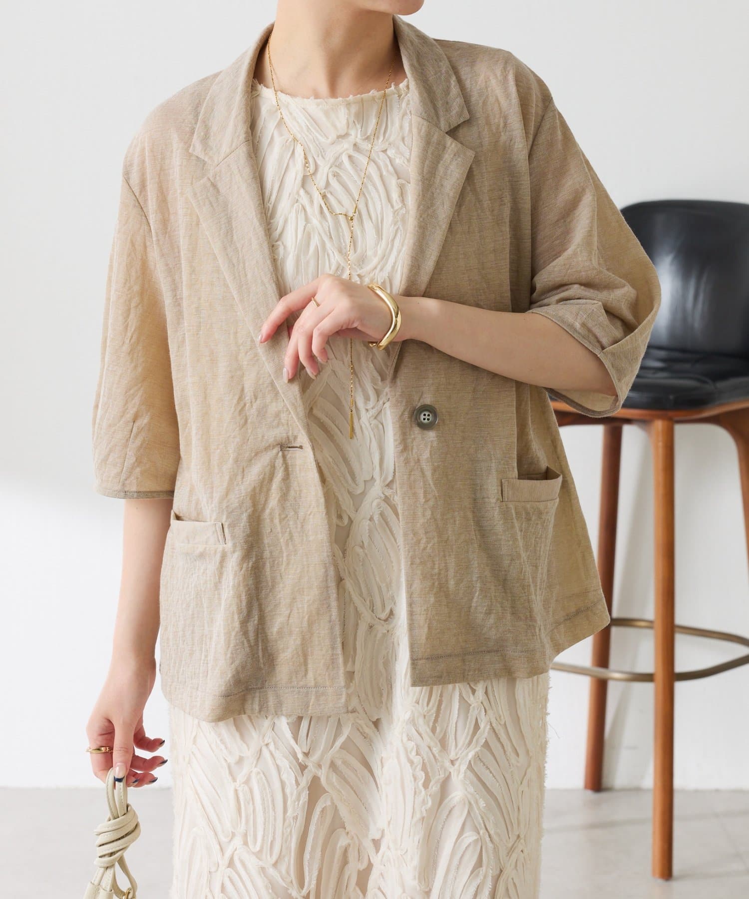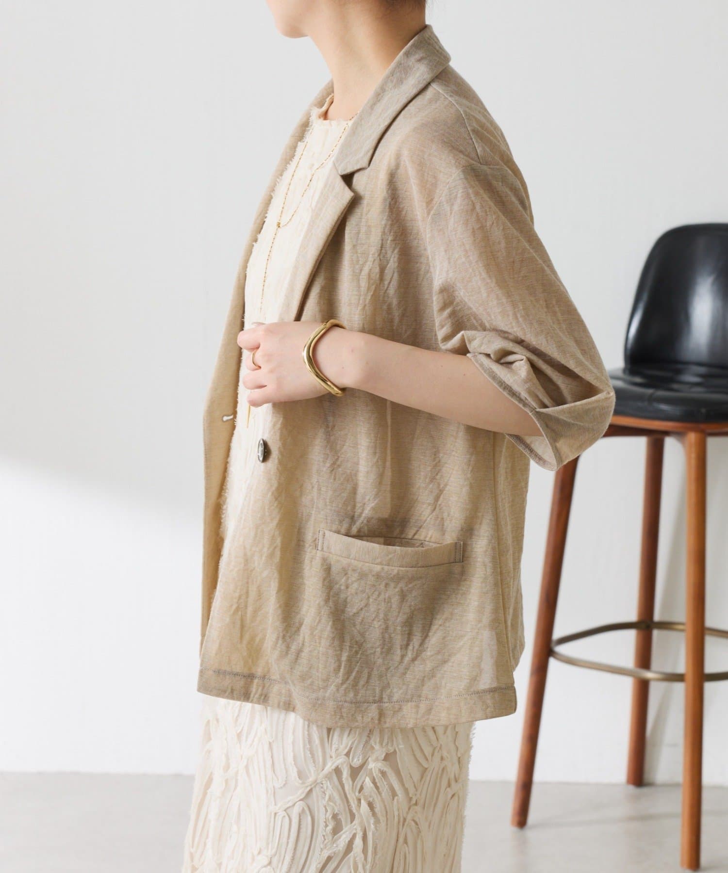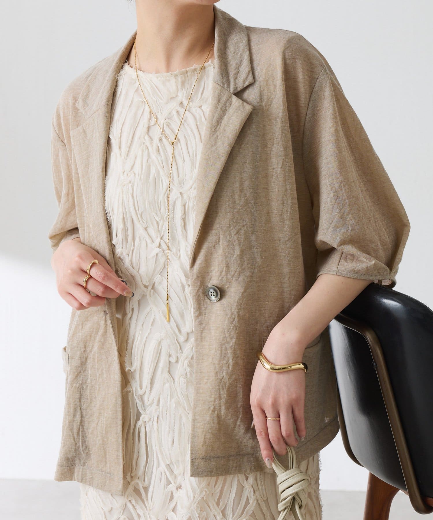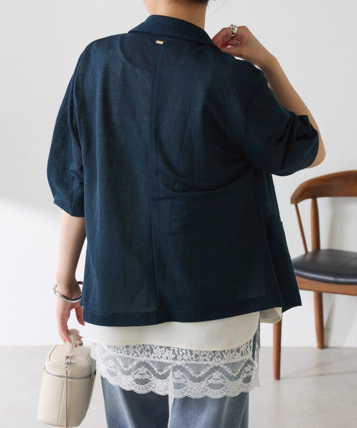 ・テーラーカラーがきちんと感を持たせつつ、シャツのようにさらっと羽織れる軽さもポイント