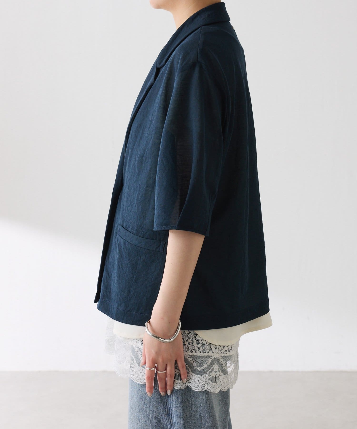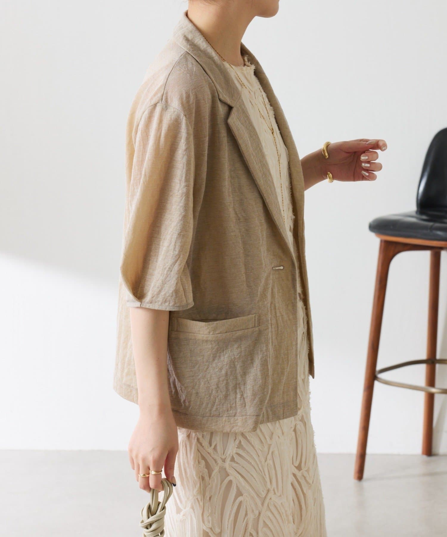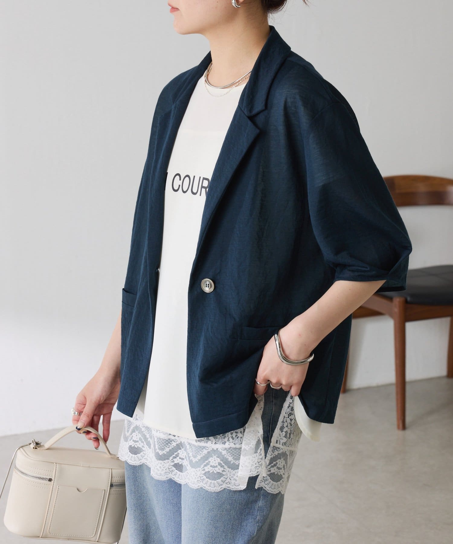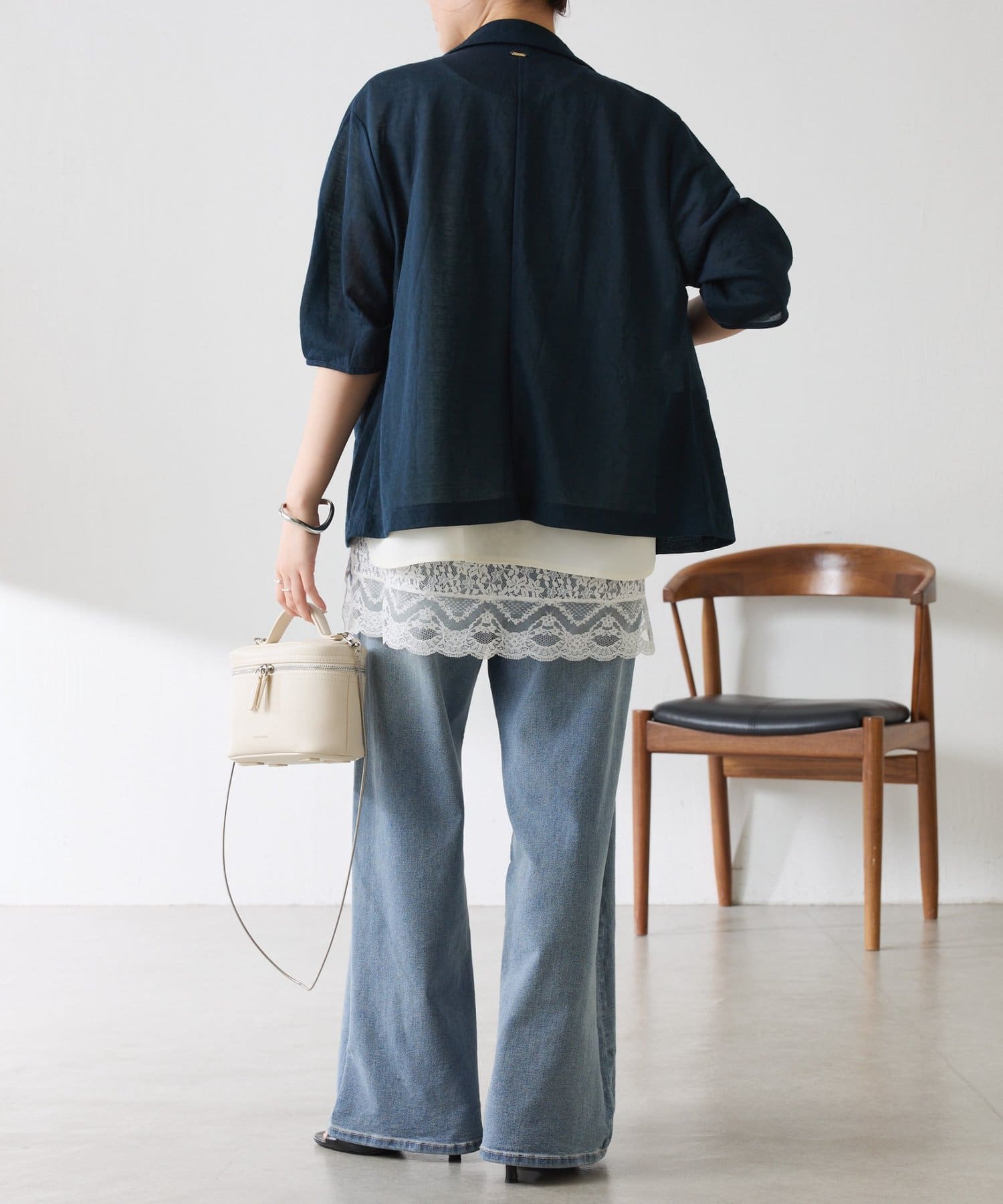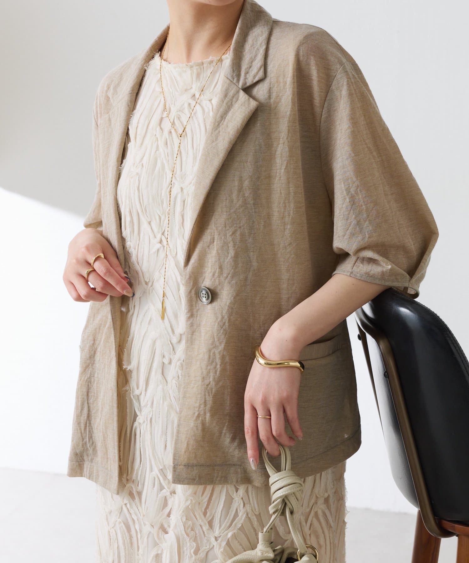 ・テーラーカラーがきちんと感を持たせつつ、シャツのようにさらっと羽織れる軽さもポイント