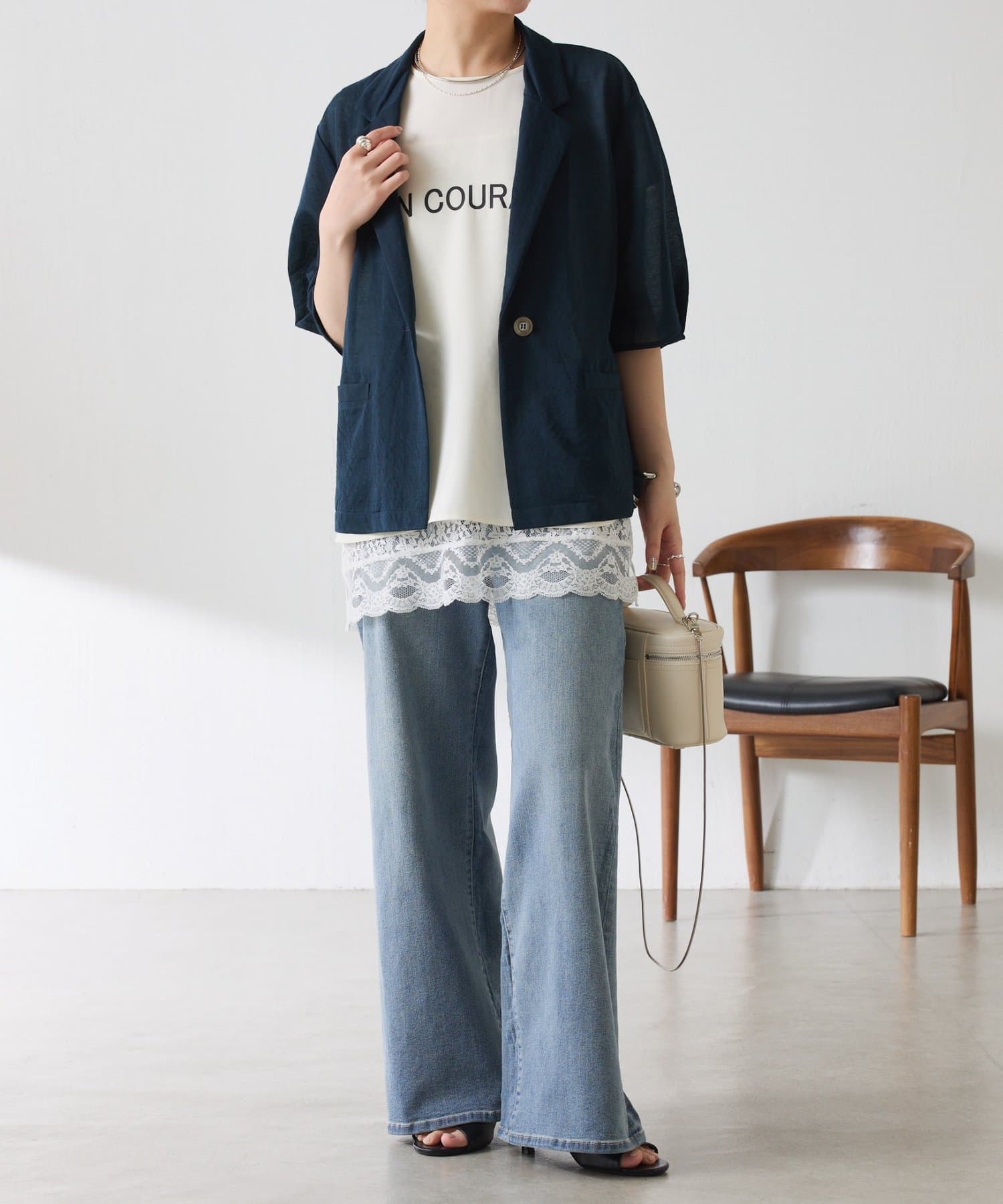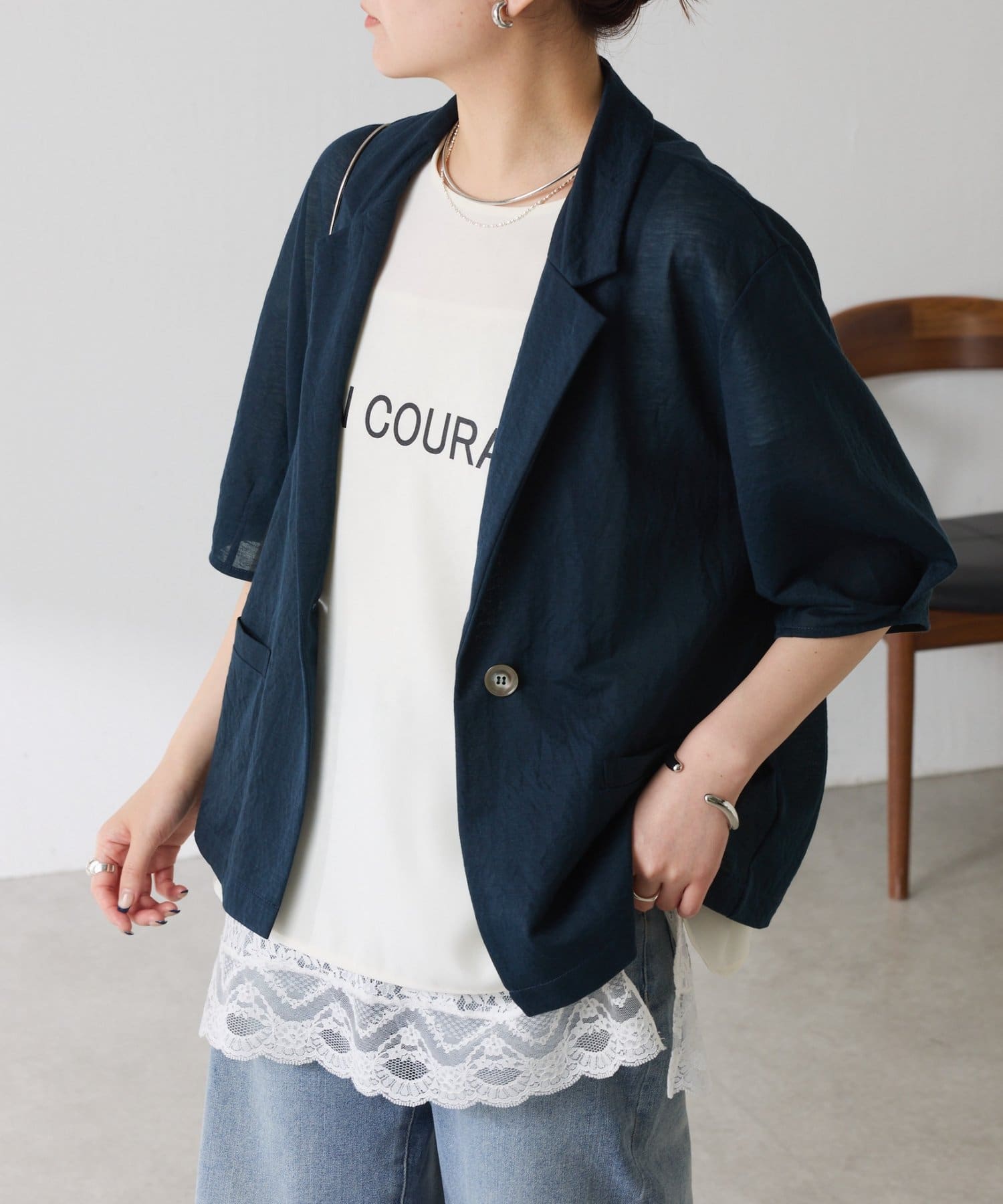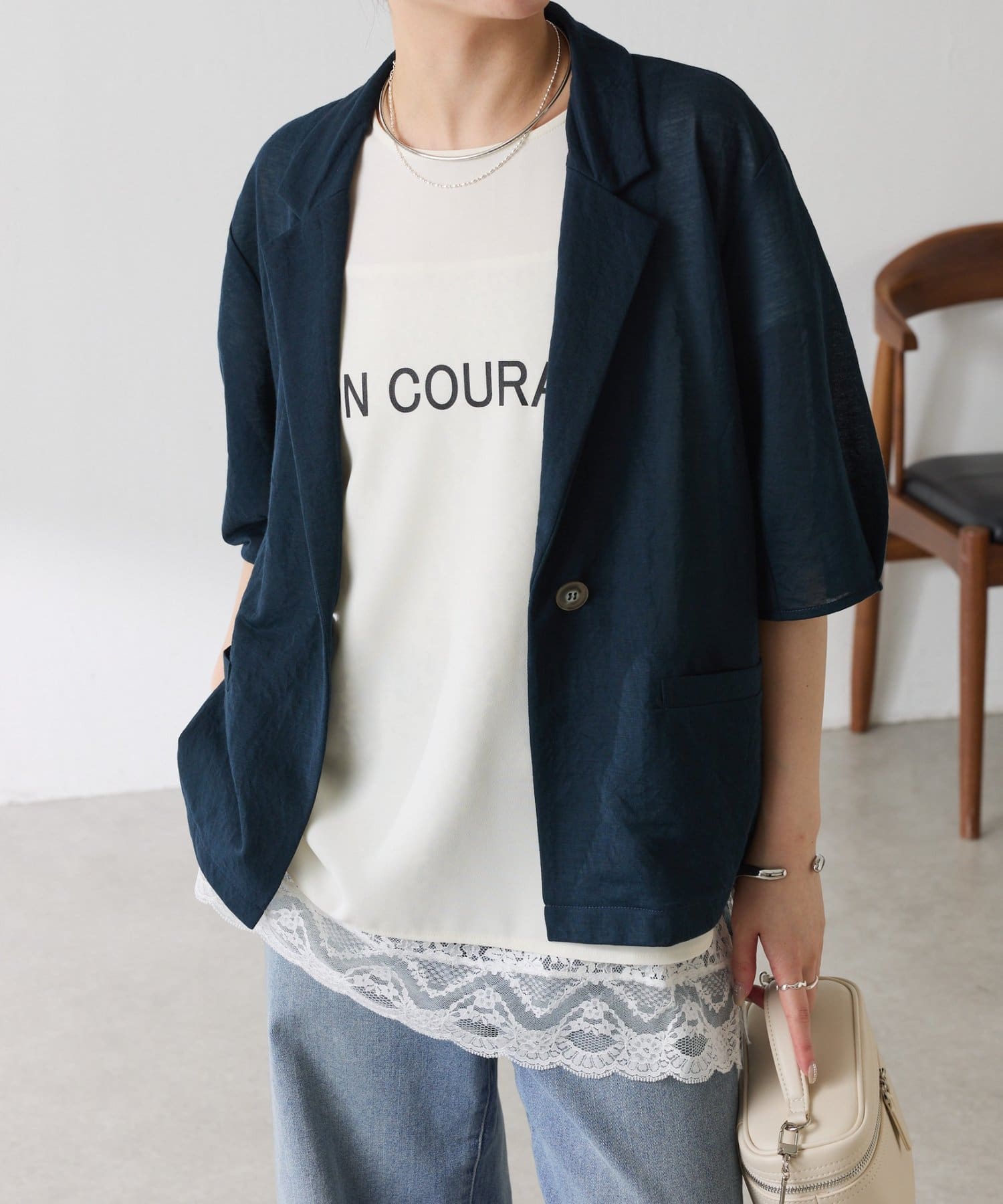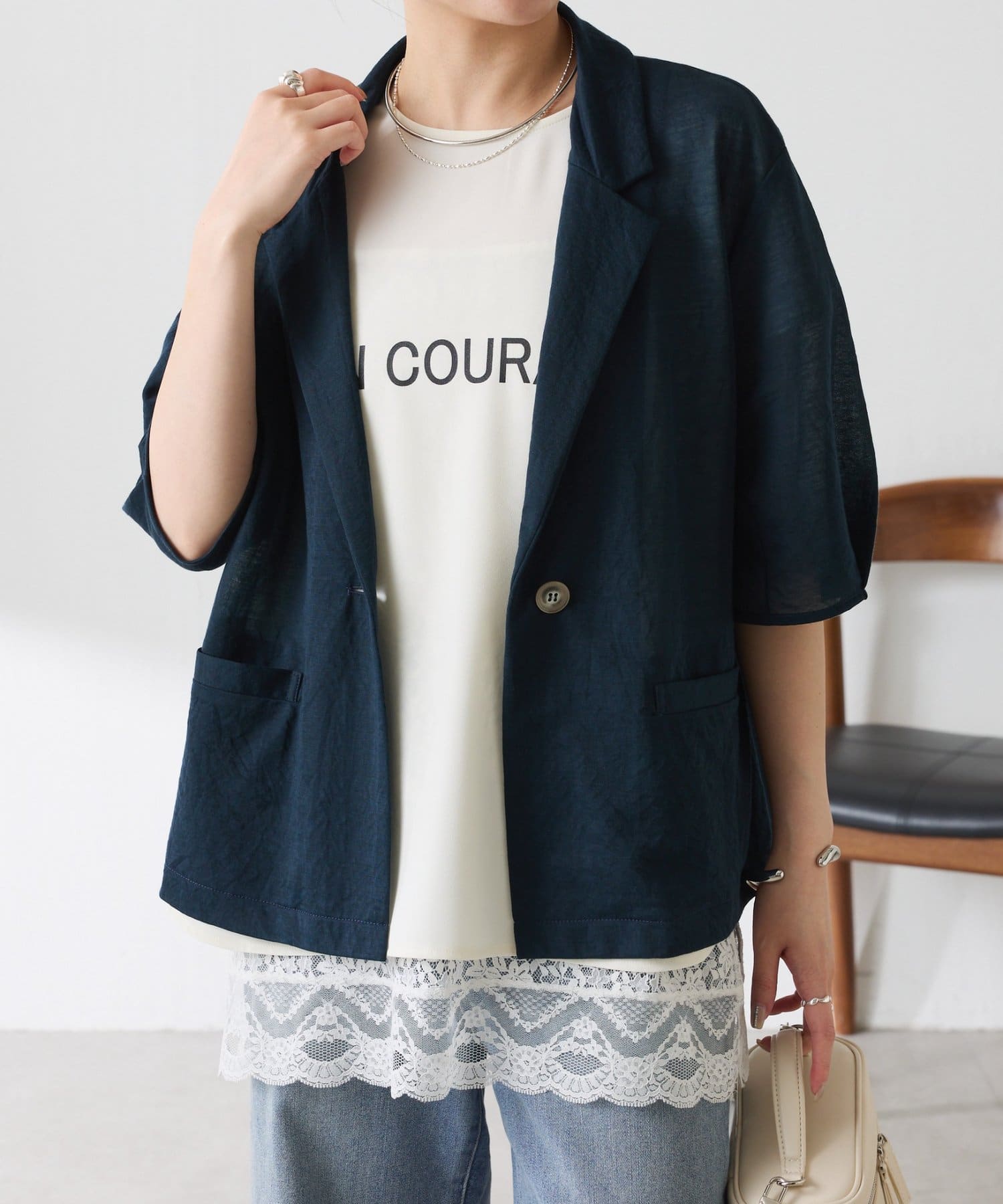 ・テーラーカラーがきちんと感を持たせつつ、シャツのようにさらっと羽織れる軽さもポイント