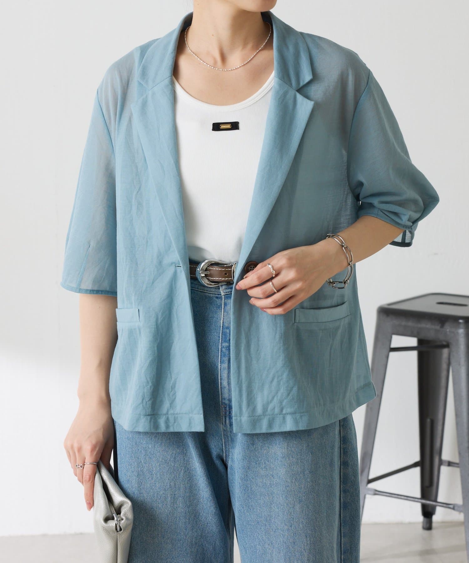【冷房/紫外線対策】シアーハーフスリーブカットジャケット
