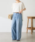 Q.anos ライトオンスタックデニムタックパンツ CLQ5061503A0001