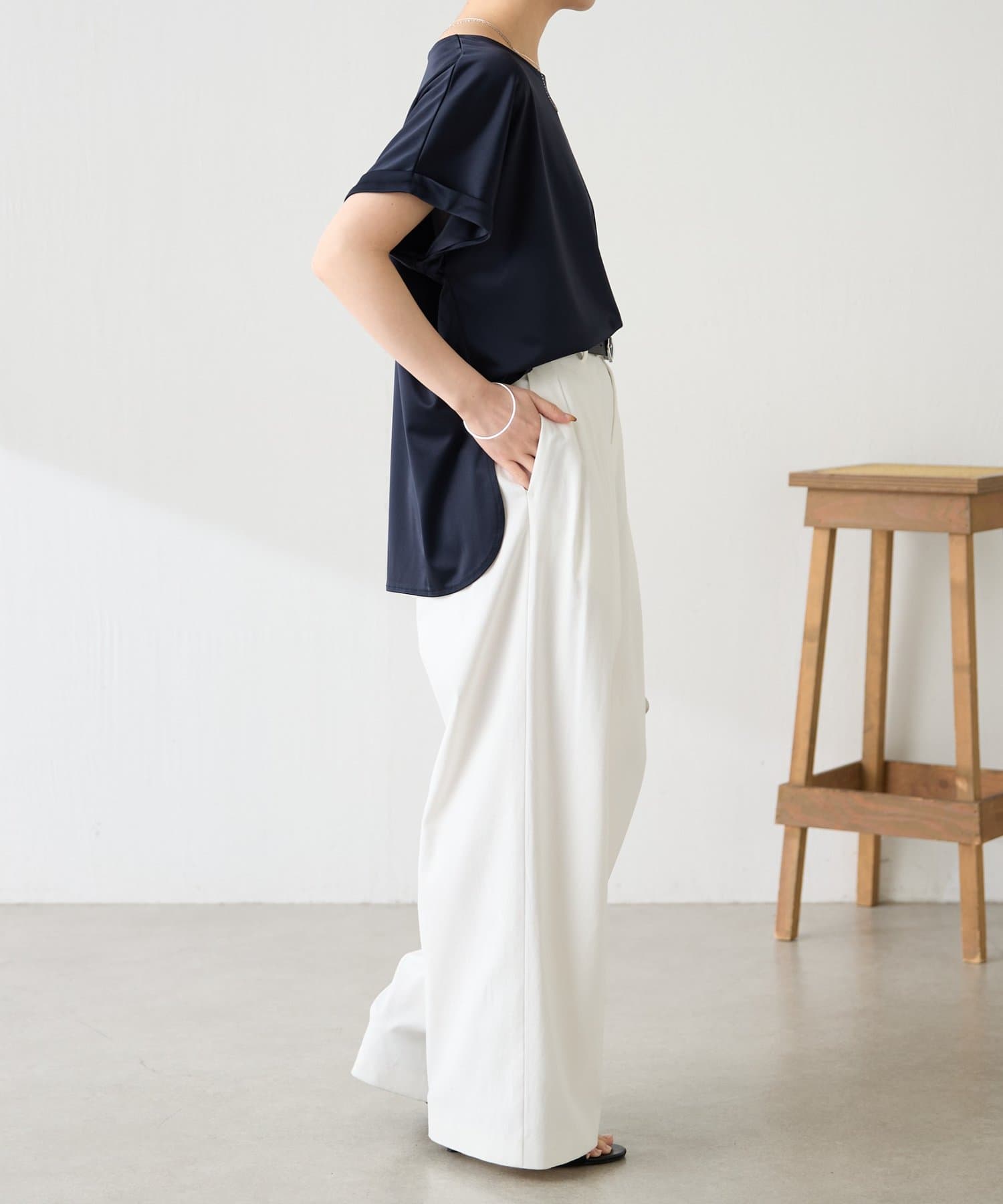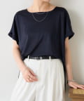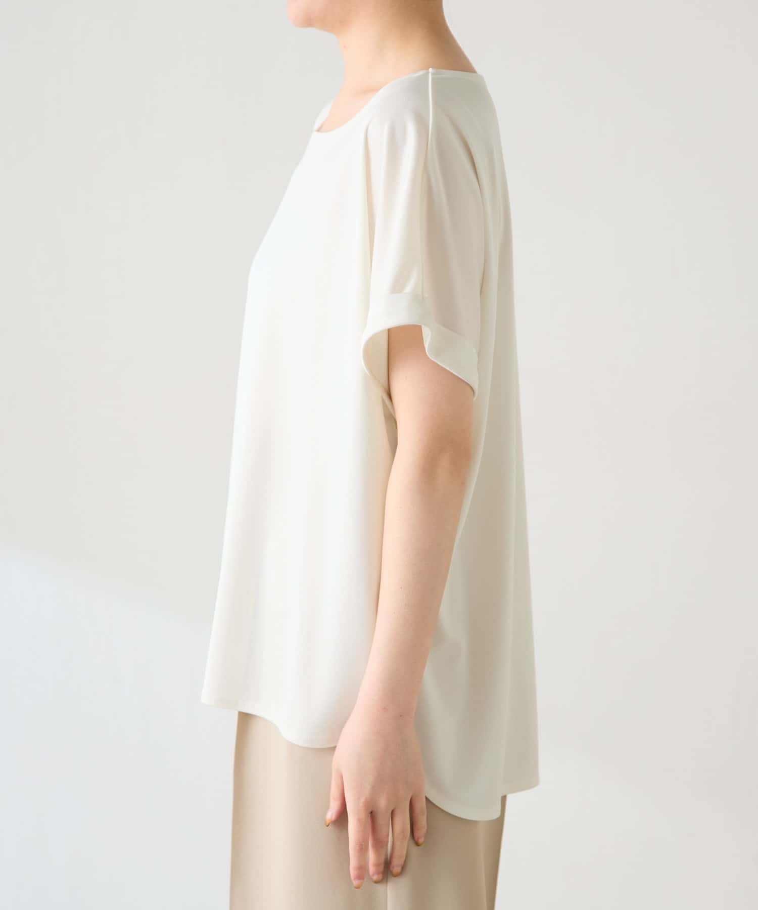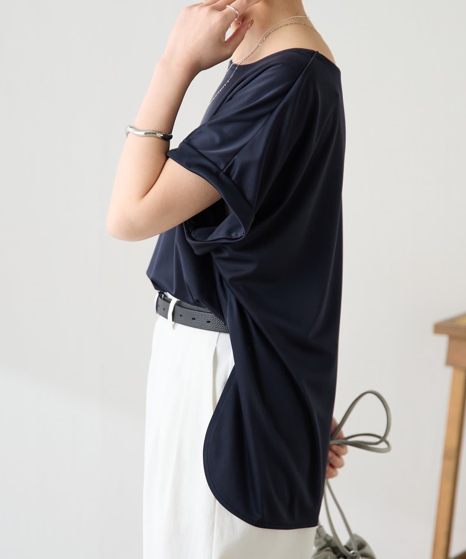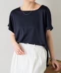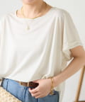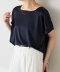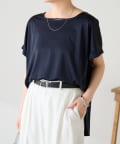 ・程よいつや感がブラウスのようにきれい見えするサテンカットソー。