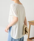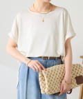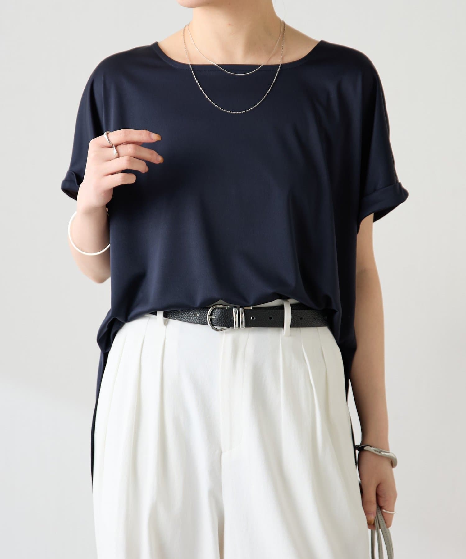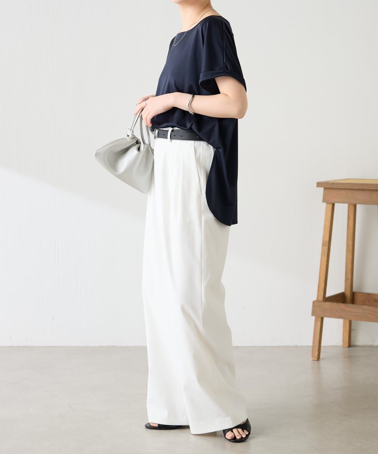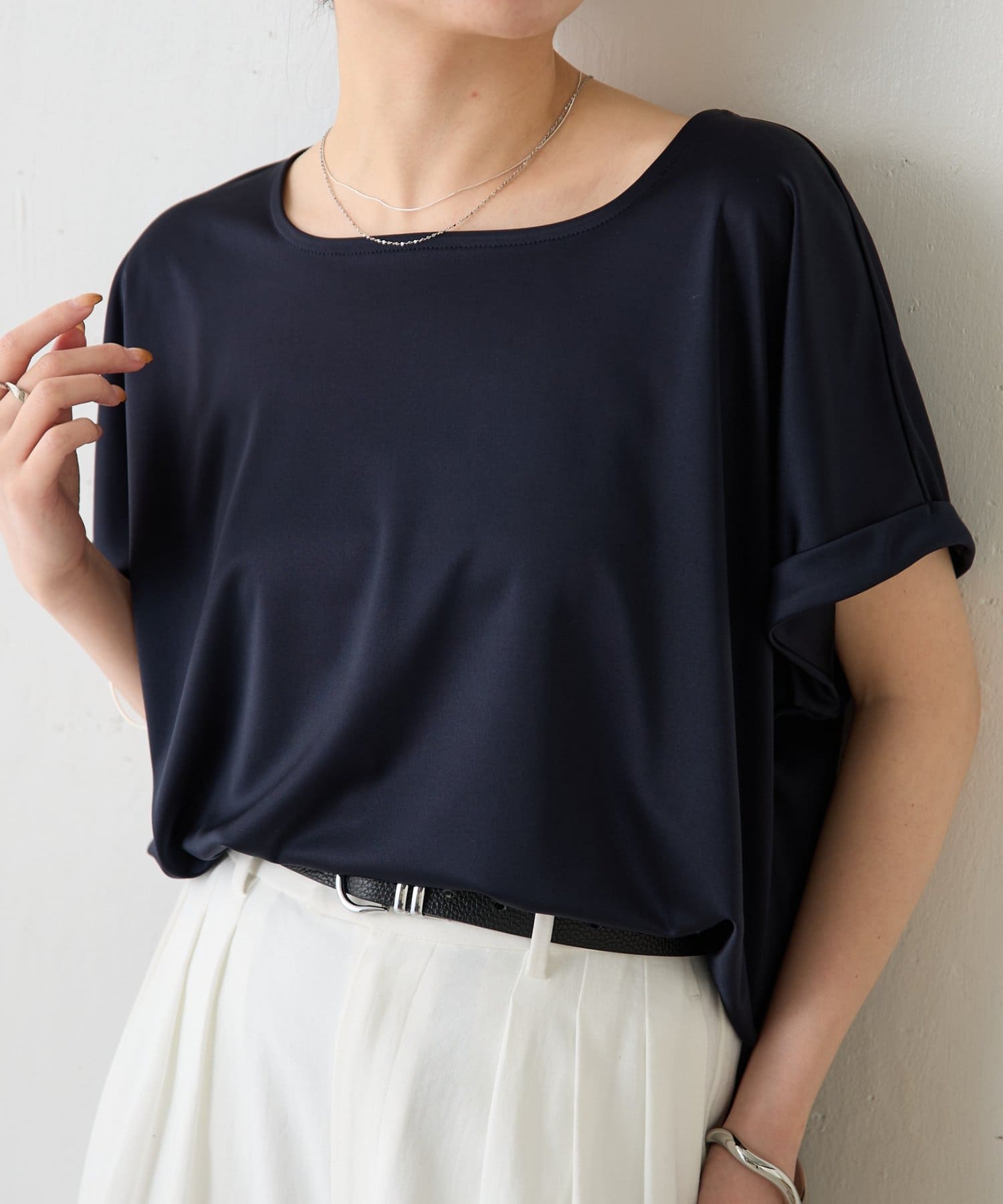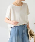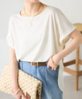 ・程よいつや感がブラウスのようにきれい見えするサテンカットソー。