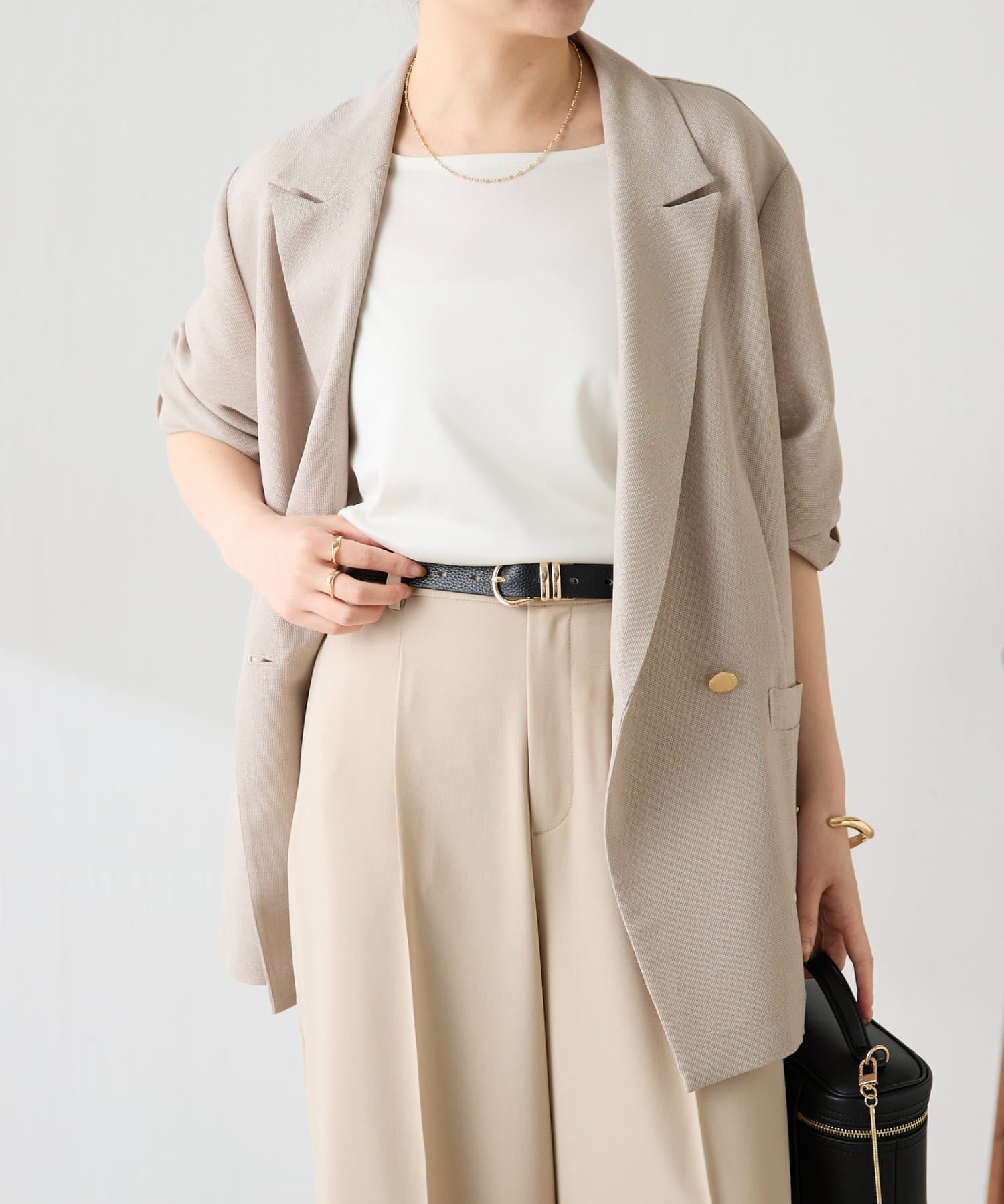 スラックスやジャージスカートと合わせてオフィスカジュアルにも、デニムやキャミワンピに合わせてきれいめカジュアルにもおすすめです。