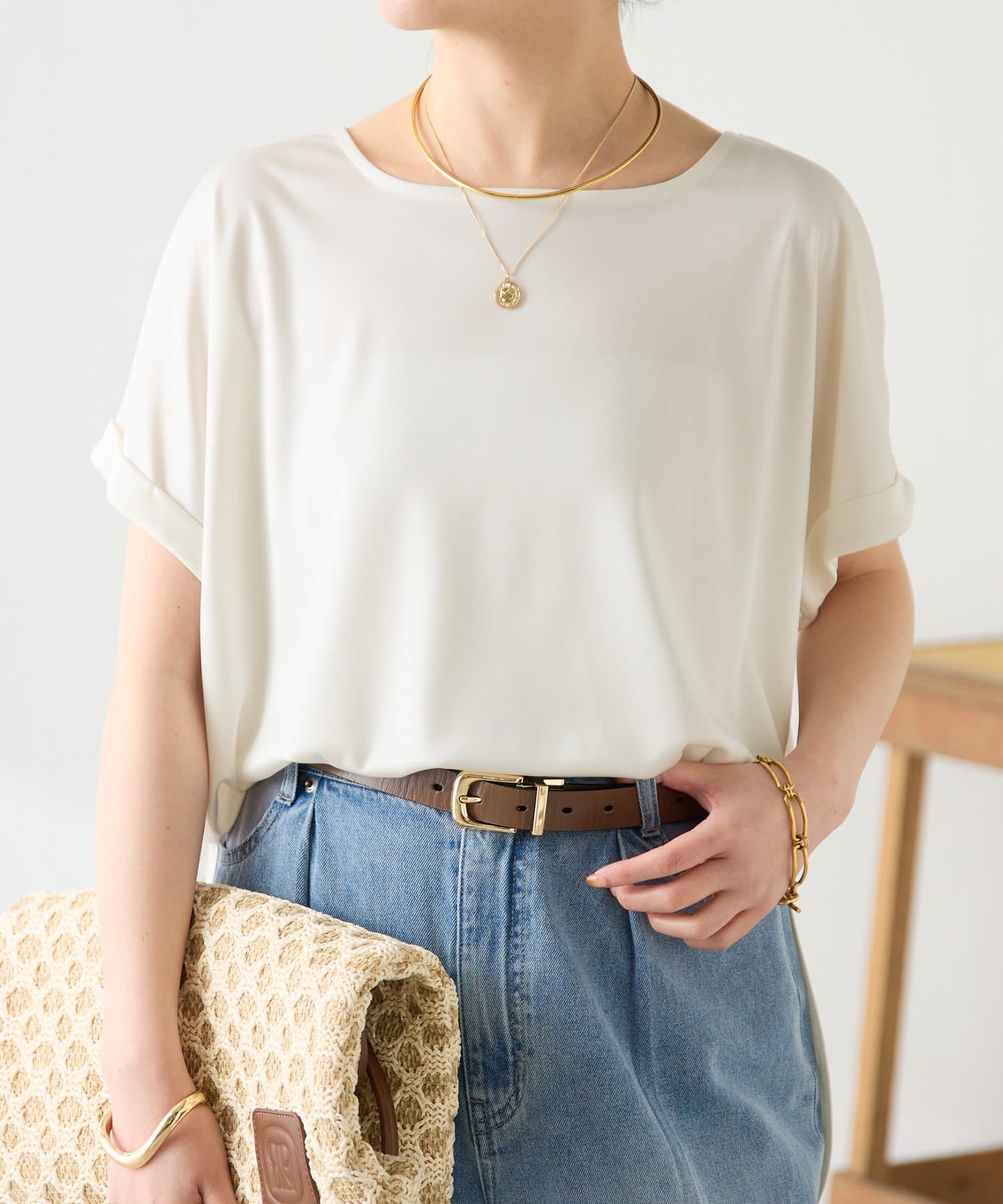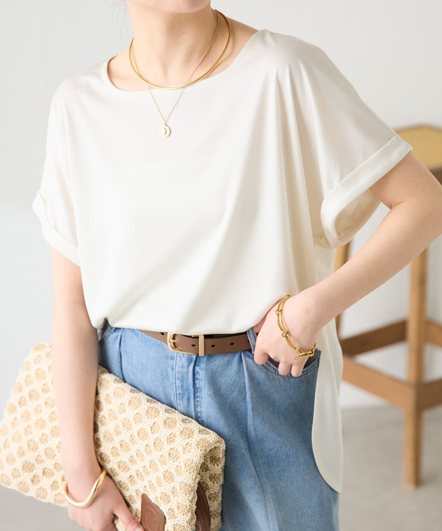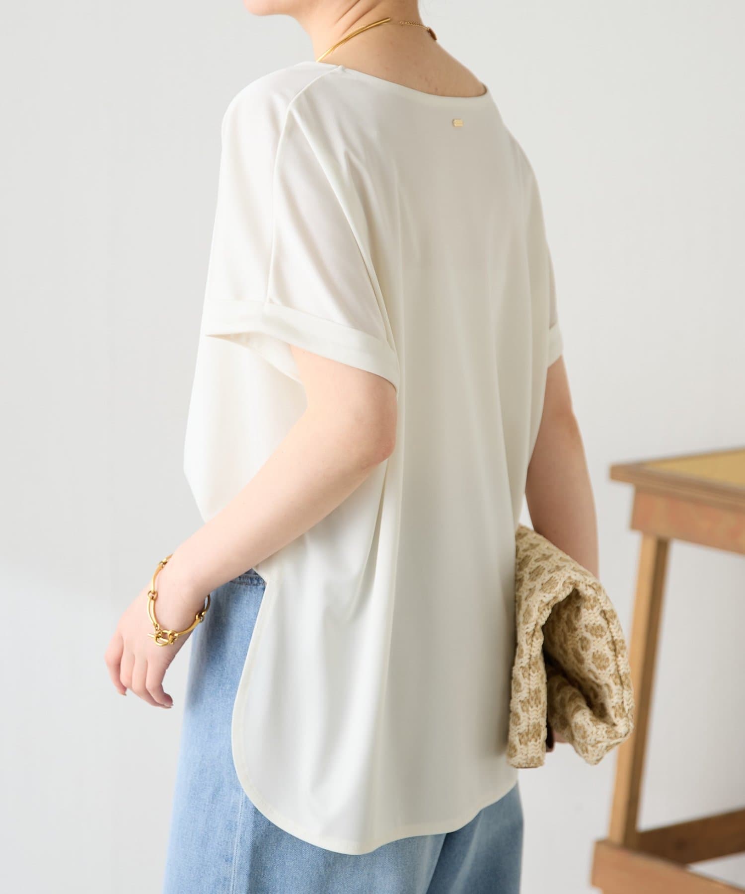 ・袖はロールアップデザインがワンポイントで二の腕のほっそり見えも叶います。