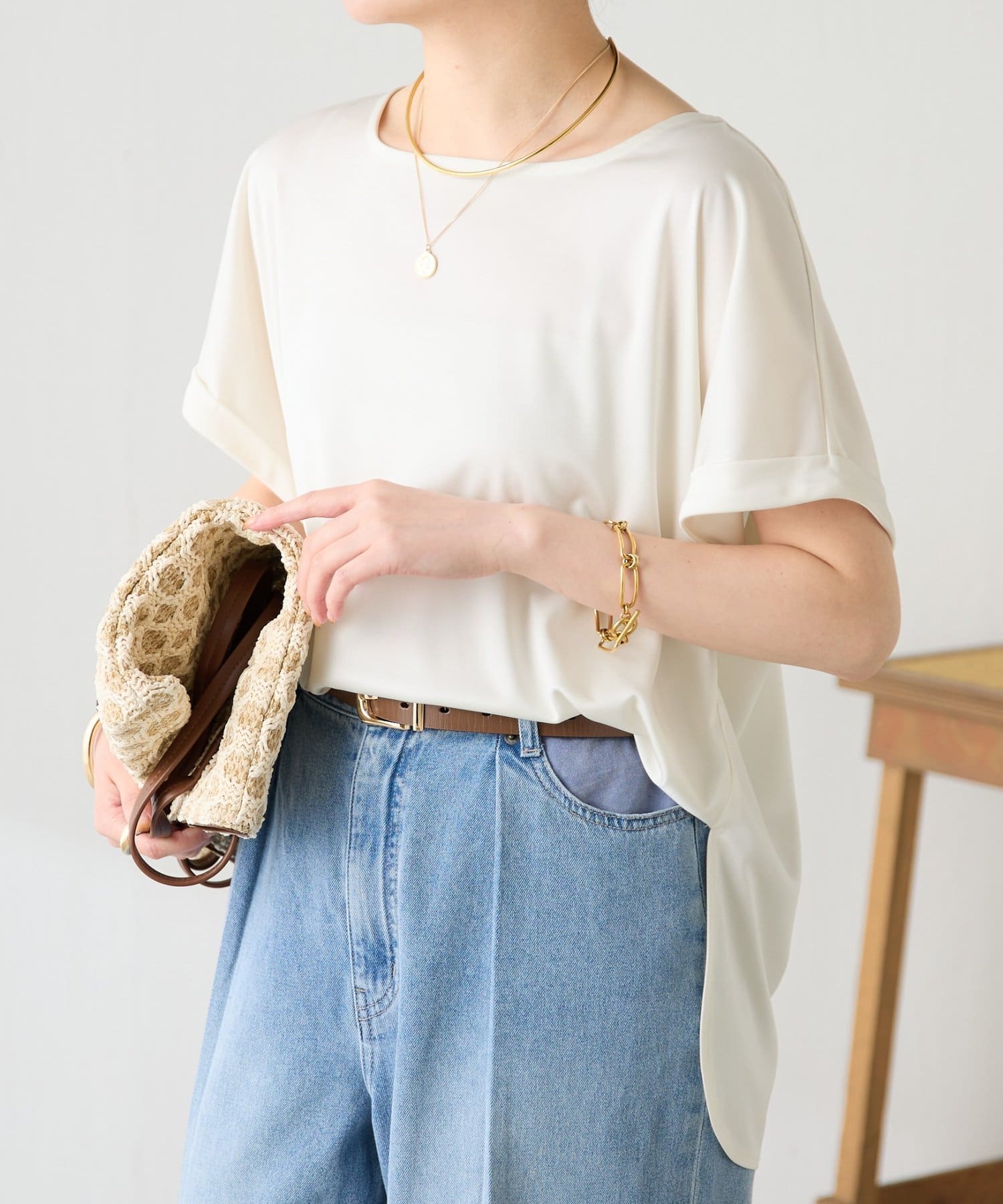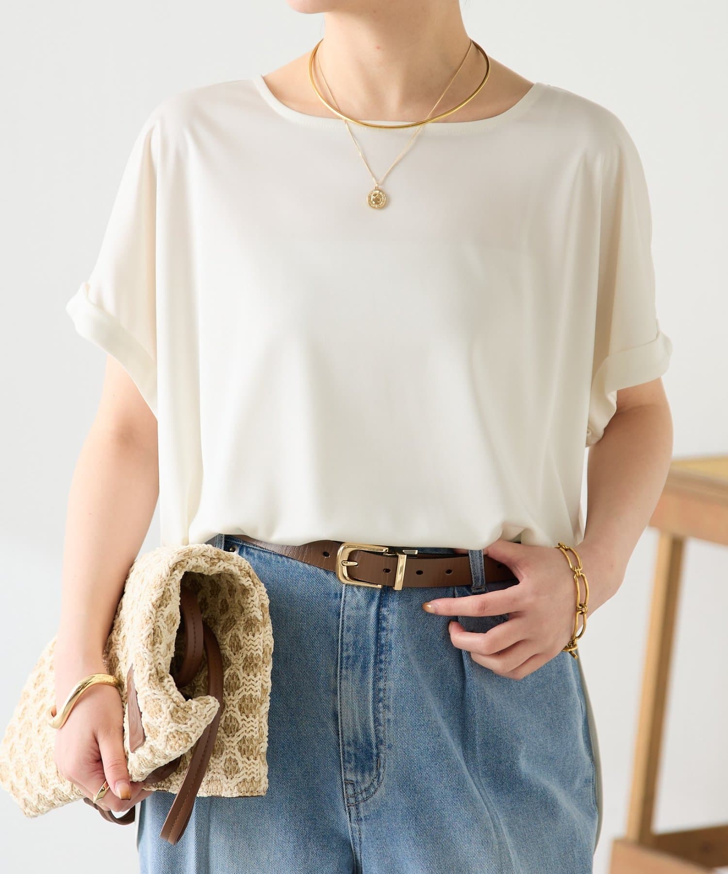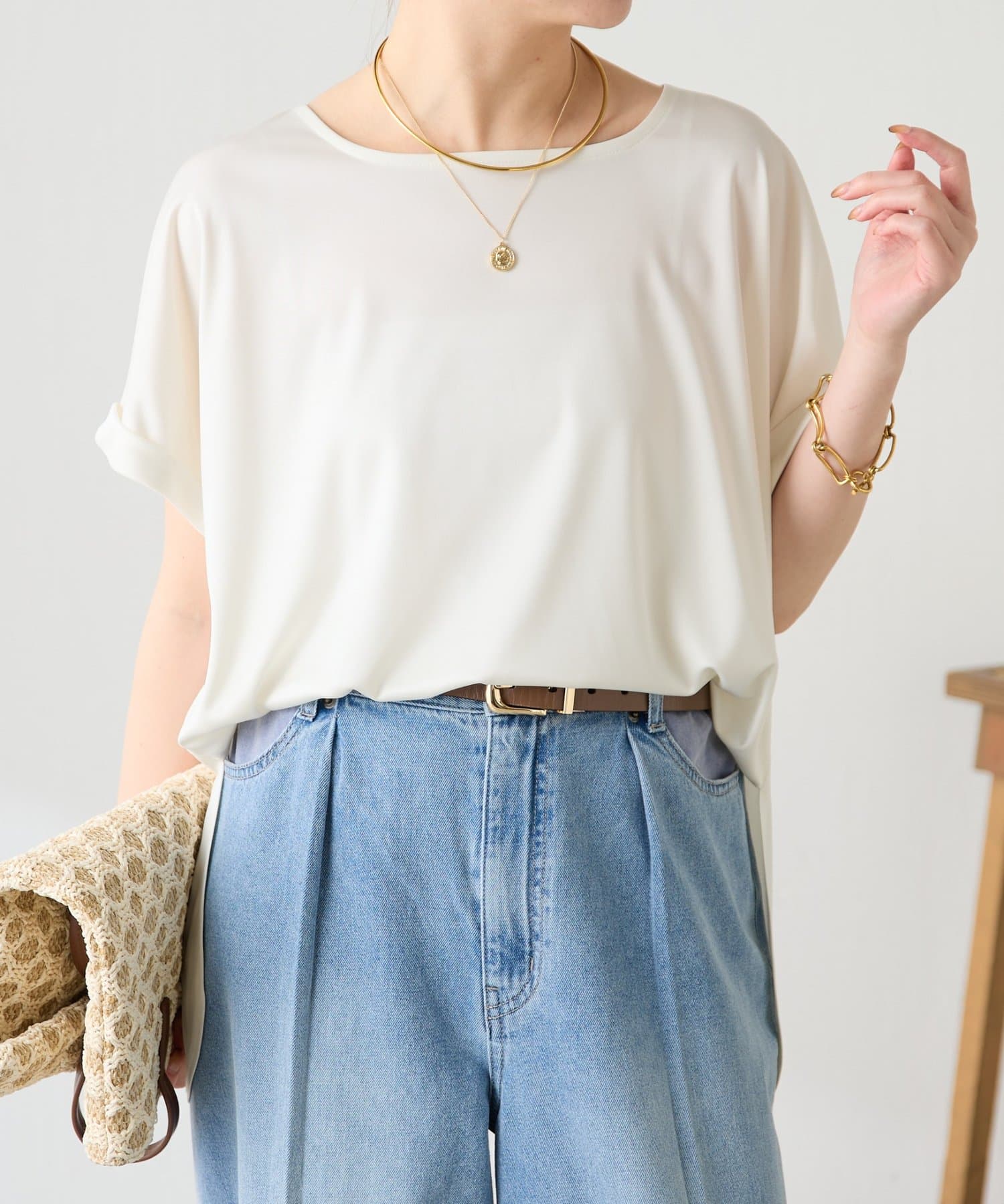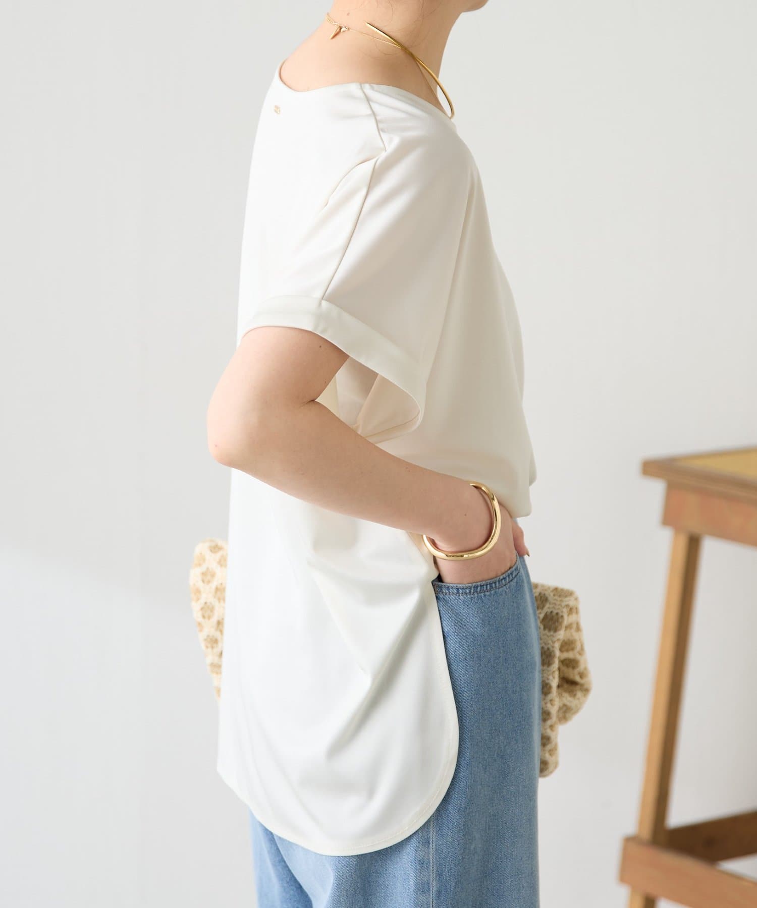 ・袖はロールアップデザインがワンポイントで二の腕のほっそり見えも叶います。