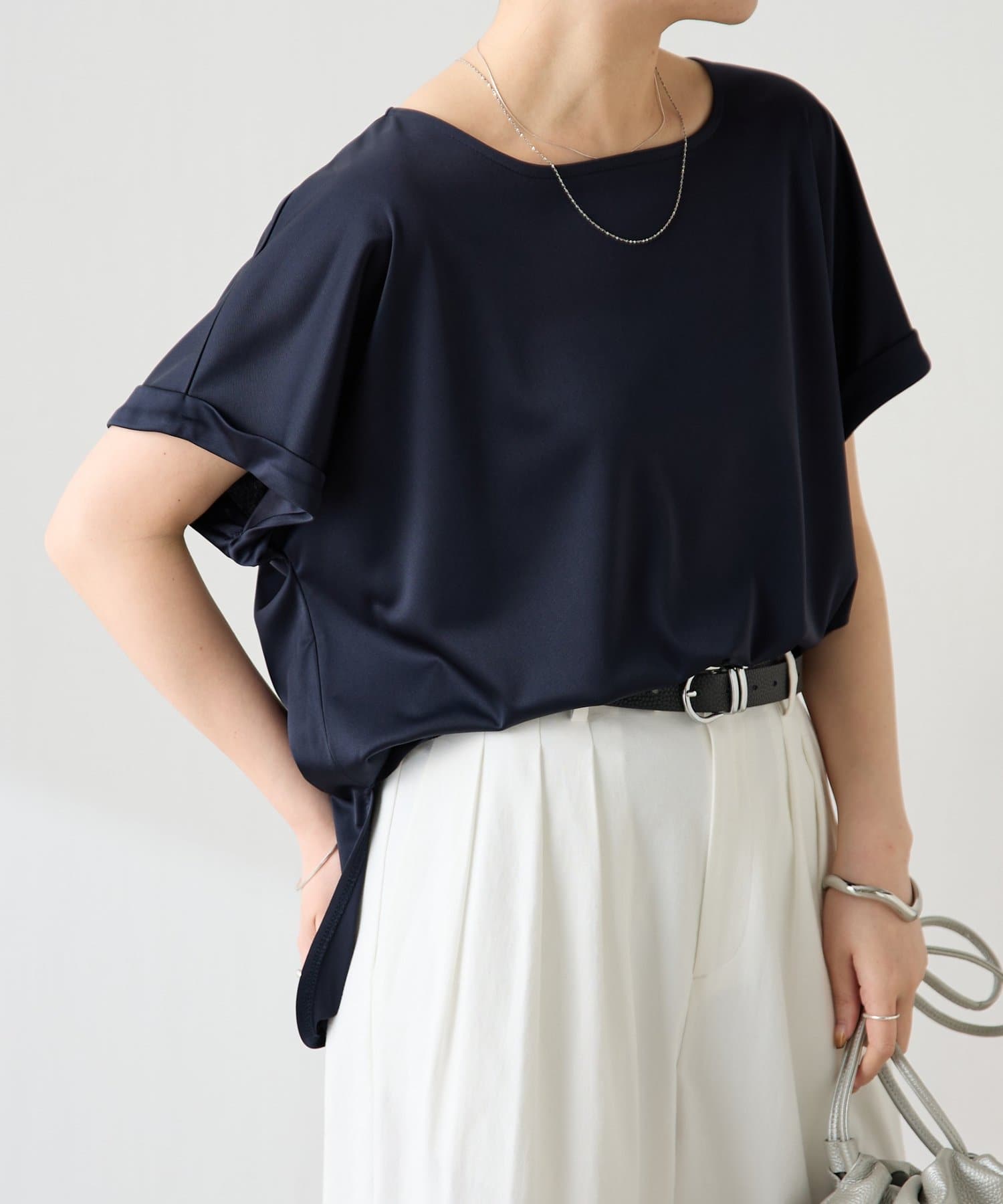 TOP > COLLAGE GALLARDAGALANTE > レディース > トップス > Tシャツ/カットソー > 【伸びるサテン/吸湿性/速乾性】ストレッチサテンTシャツ