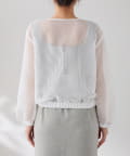 全部閉めてプルオーバーのように着ると、裾のゴムでふわっと立体感のあるシルエットが完成◎