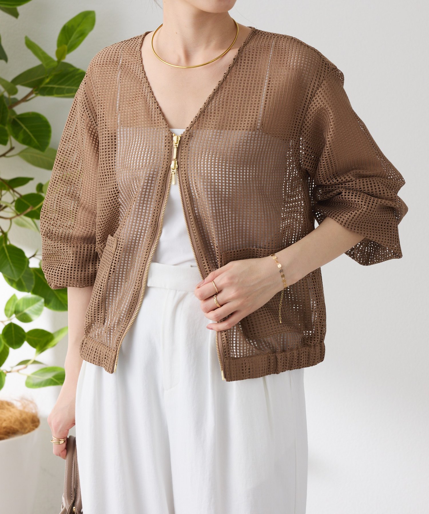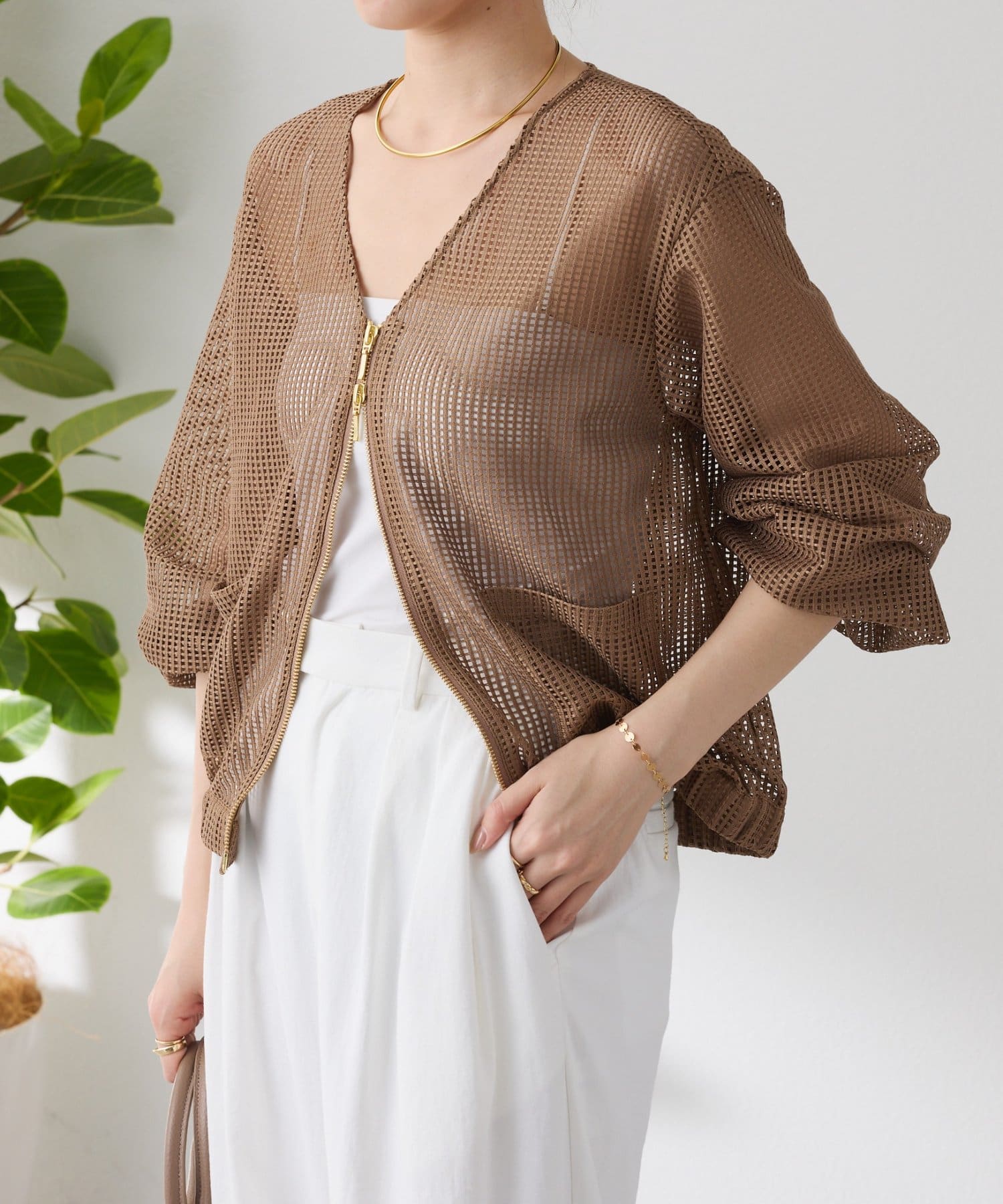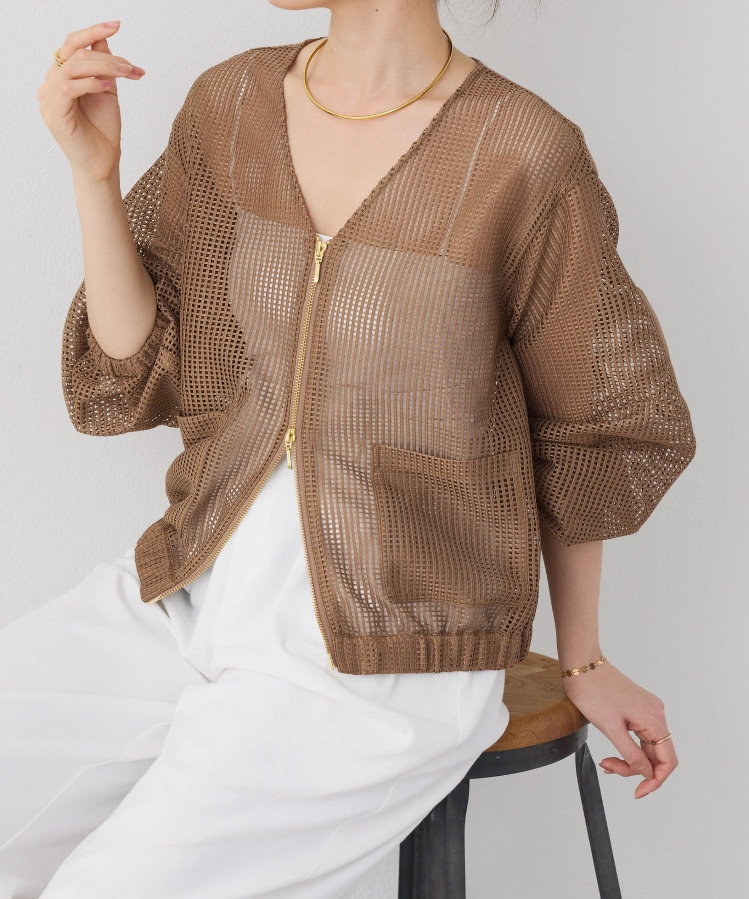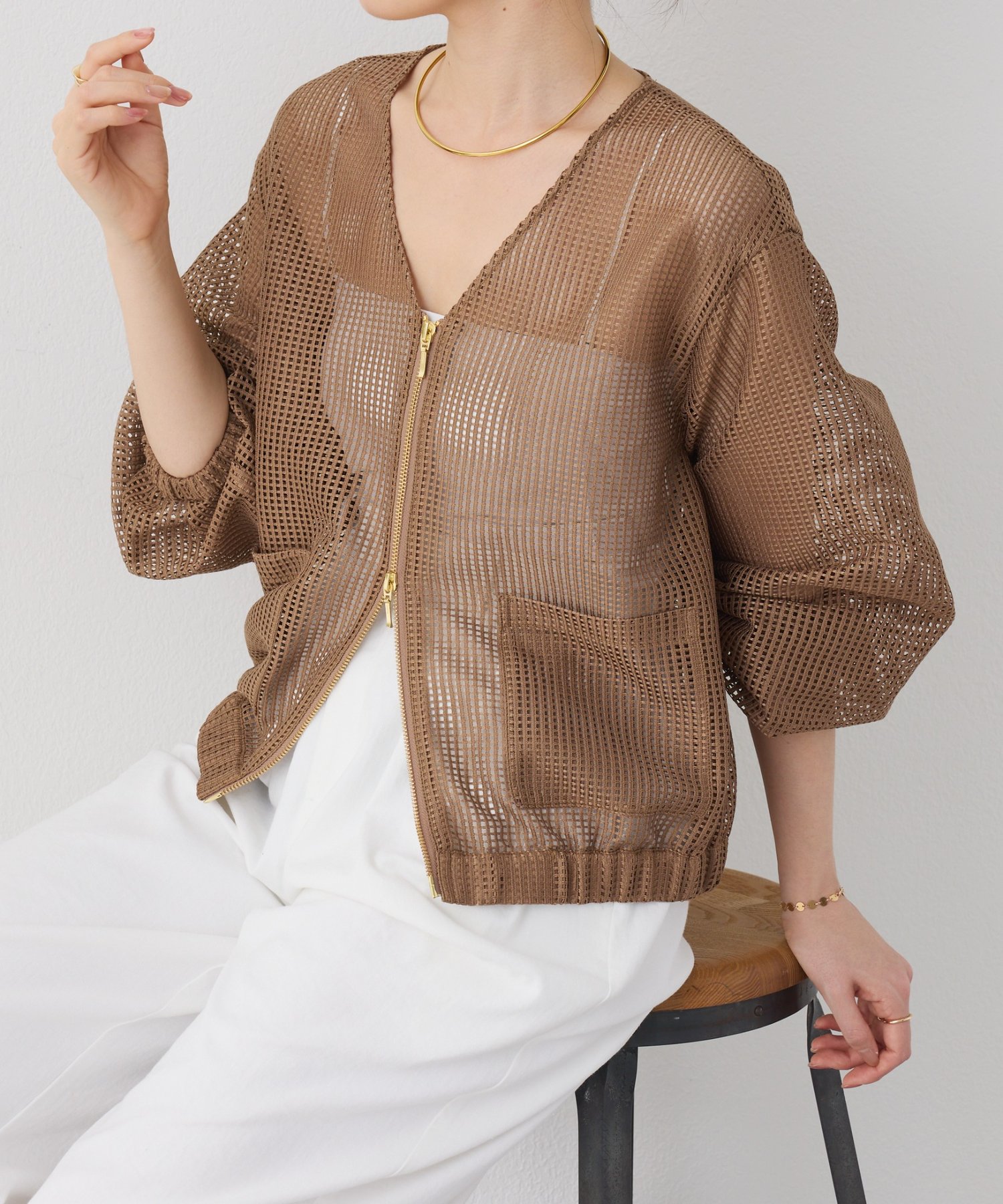 コーデのスパイスになるメッシュブルゾン