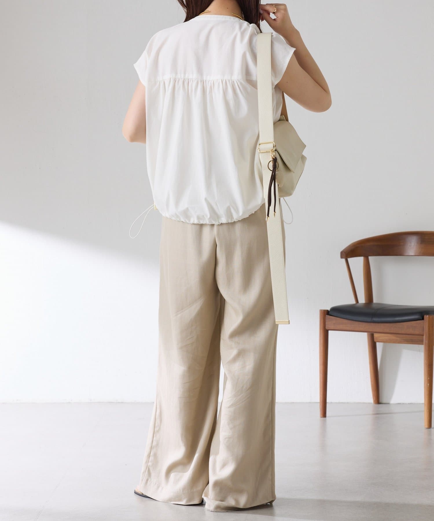 • 身長:157cm / 着用サイズ:FREE 裾のドロストを絞らず着用