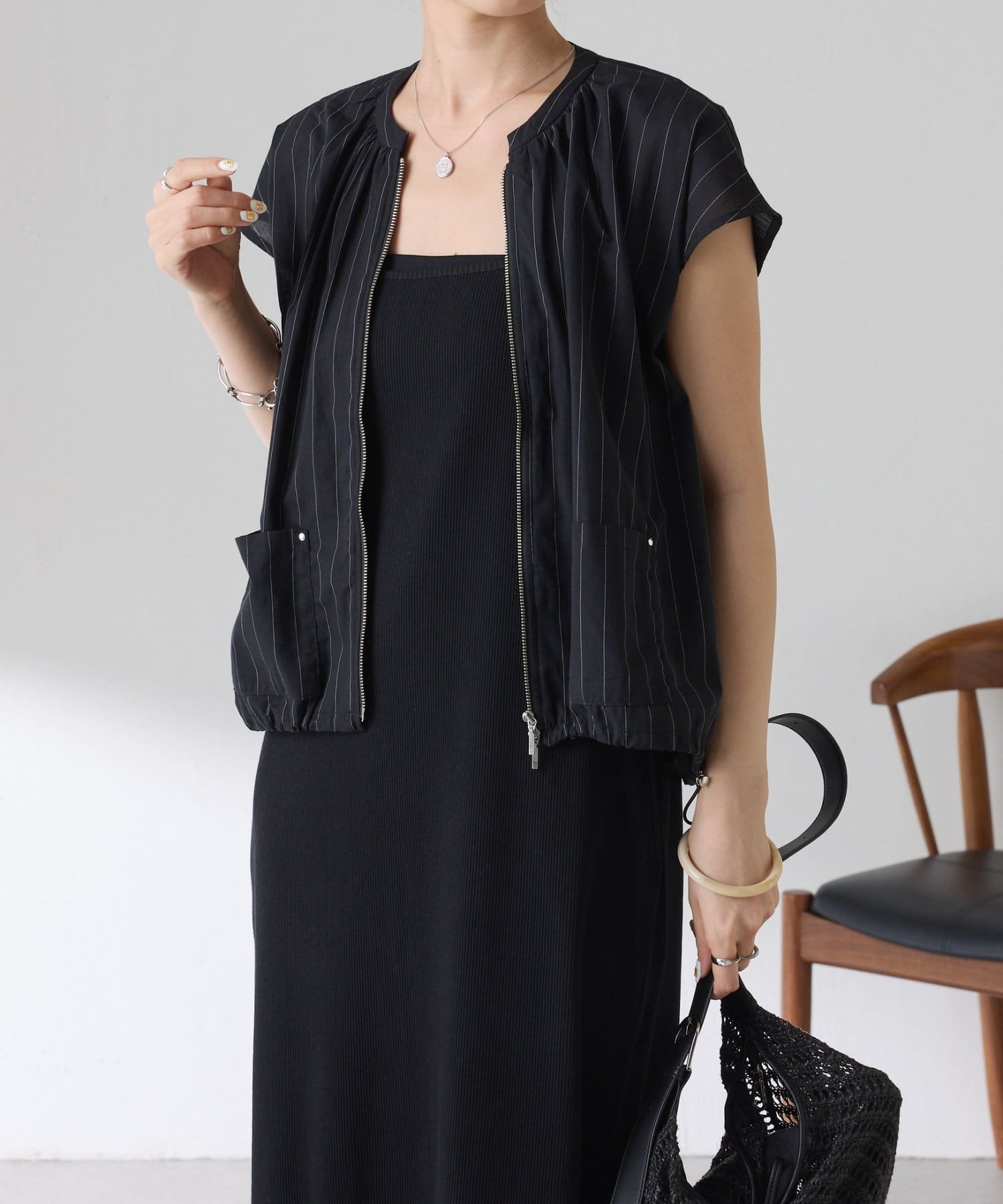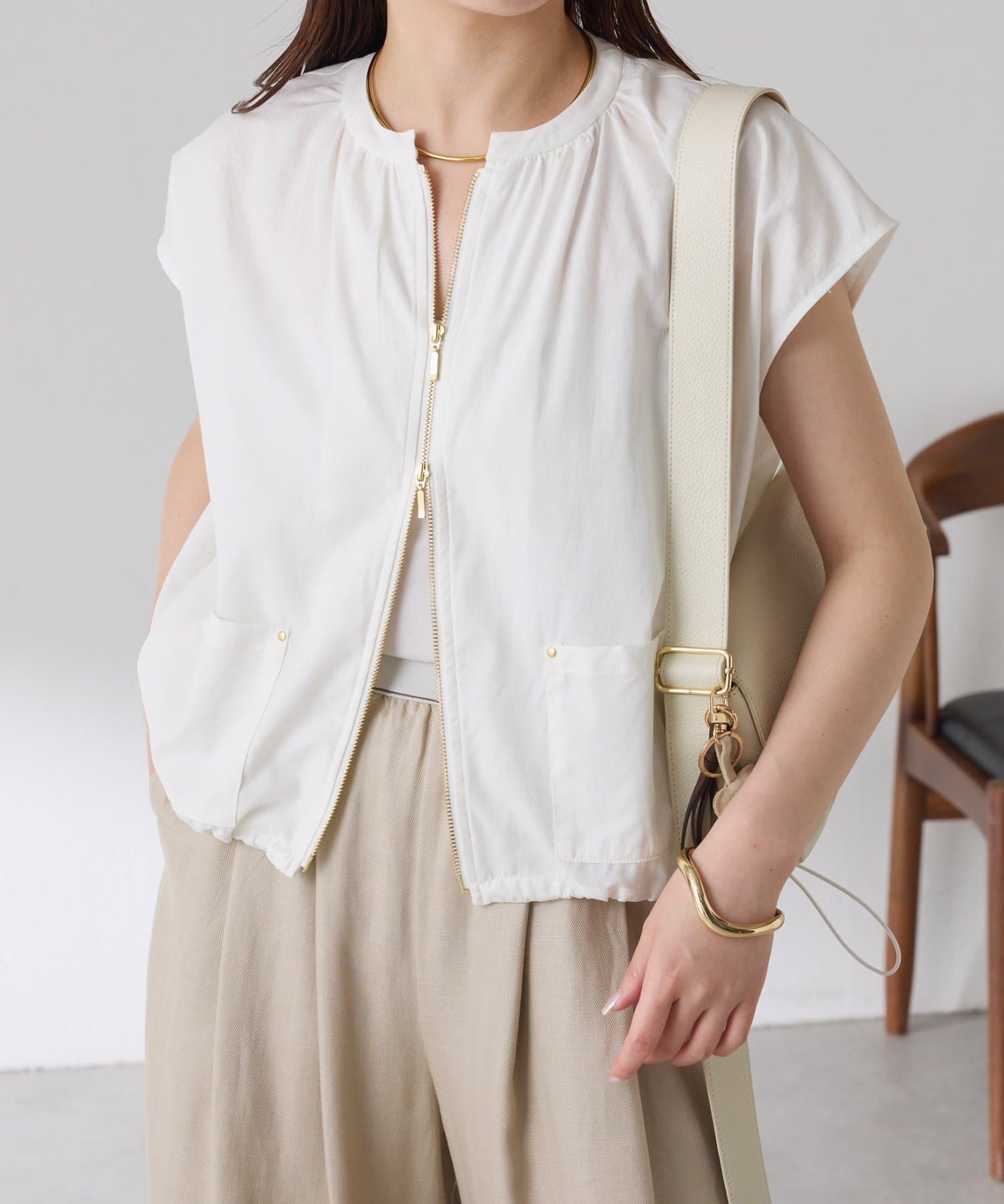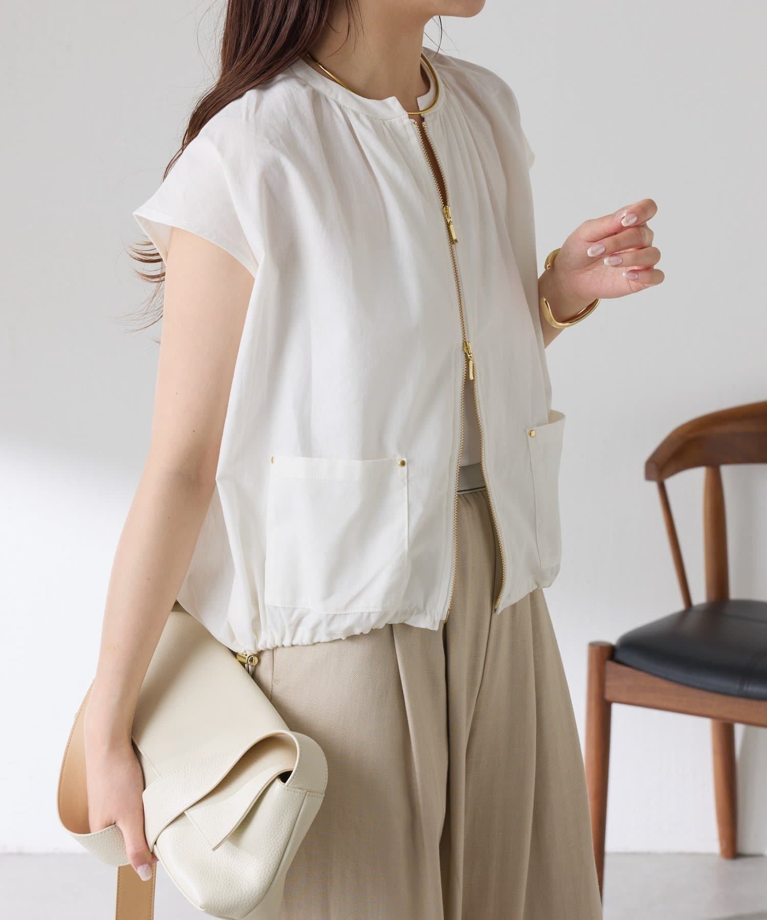 TOP > COLLAGE GALLARDAGALANTE > レディース > ジャケット/アウター > ベスト/ジレ > 【夏の羽織に◎】コットンシアーフレンチベスト