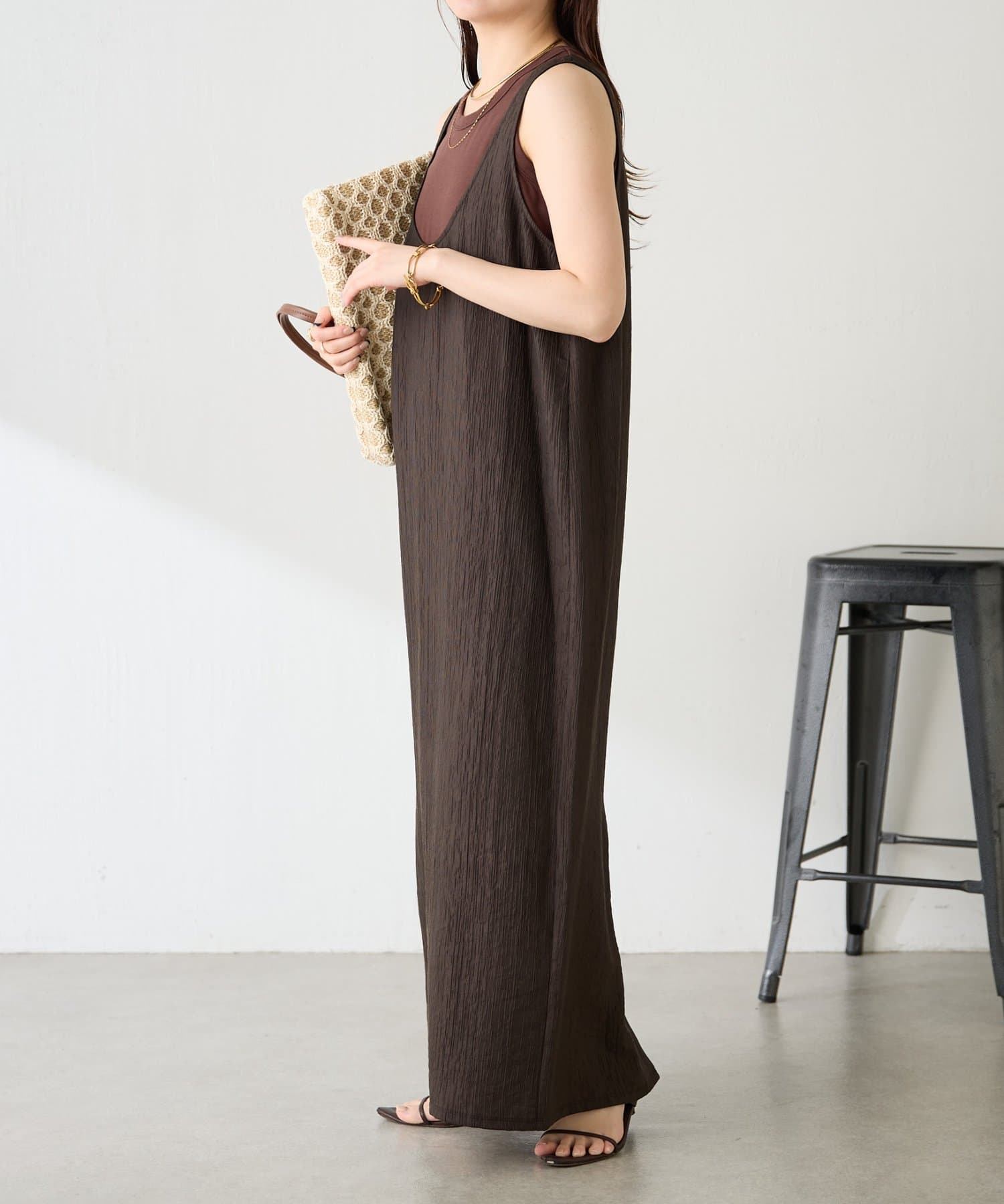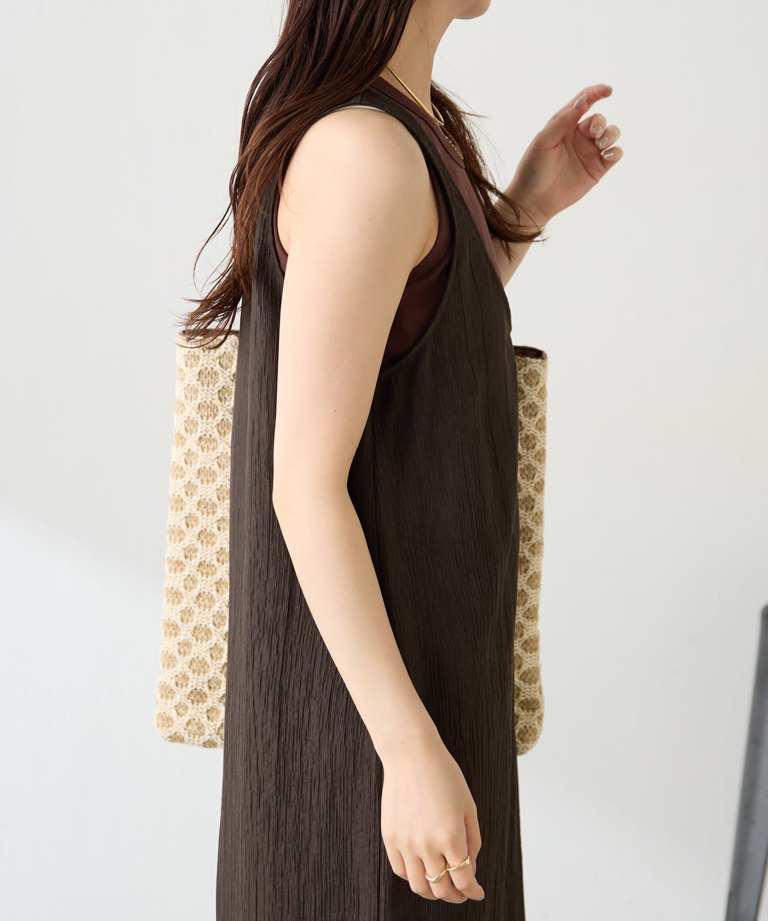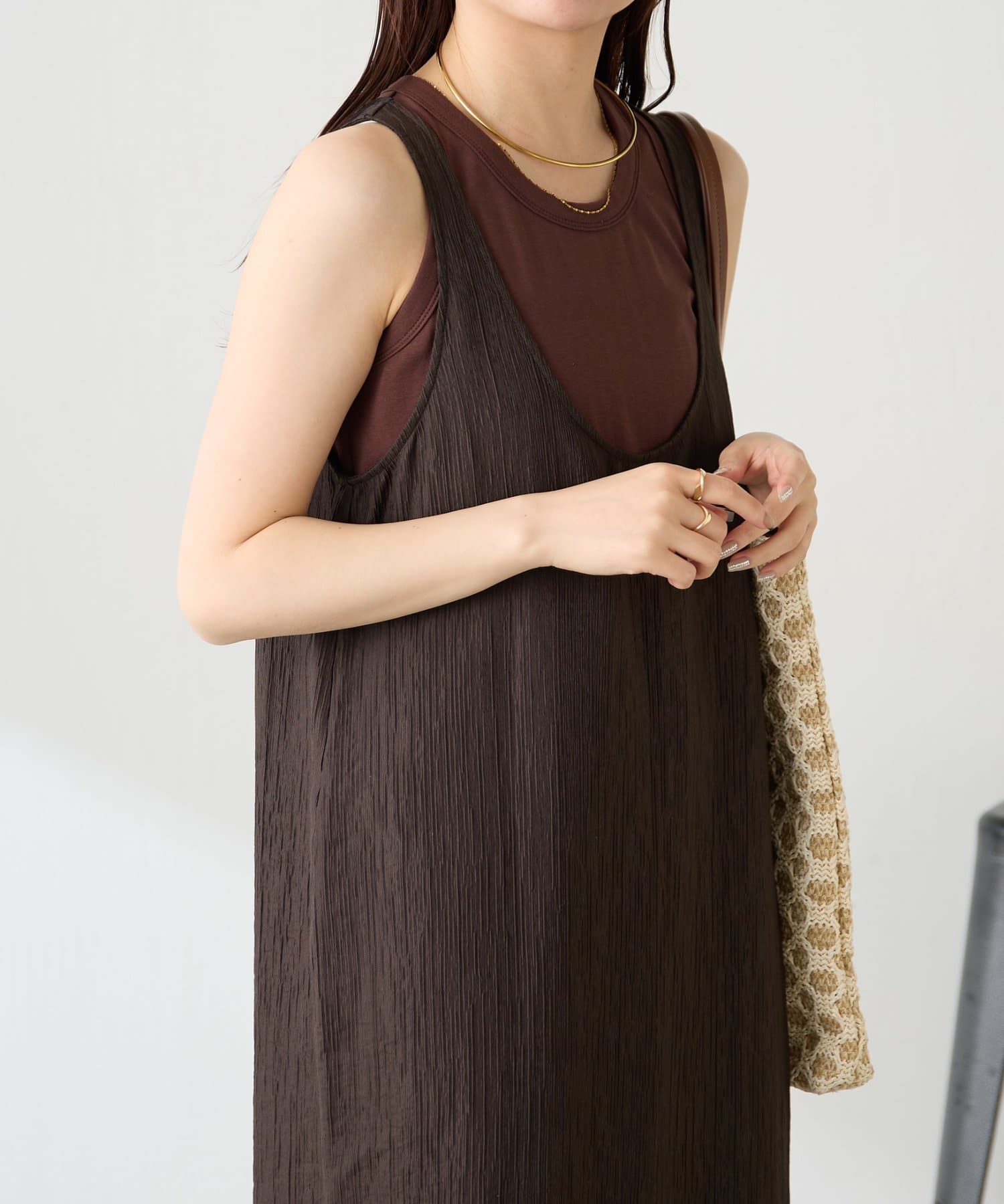 ・重ねたときにタンクトップのゴールドプレートが見えるようにこだわりました。