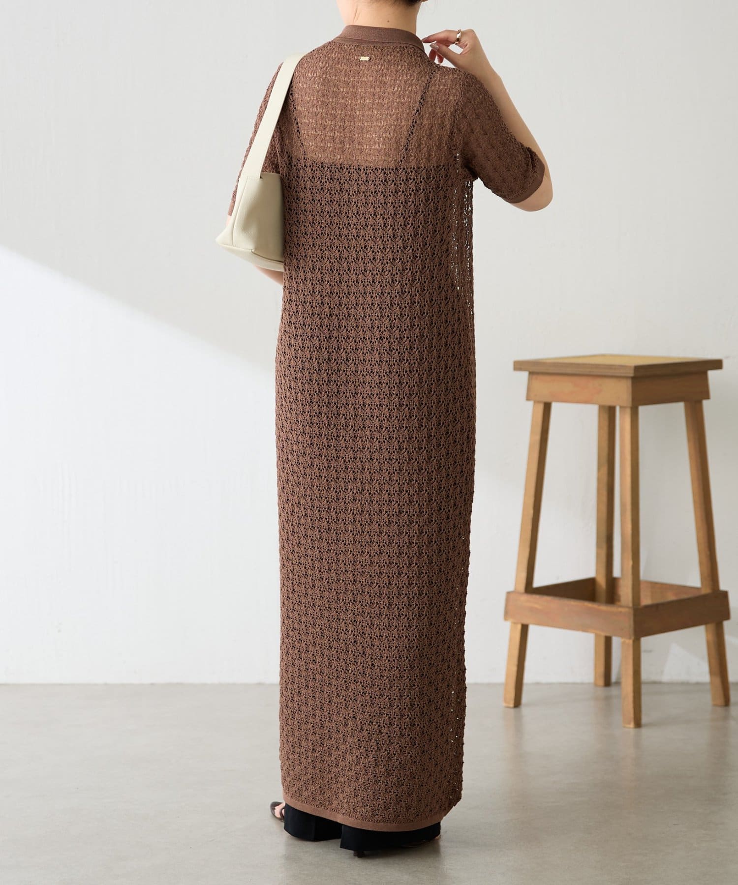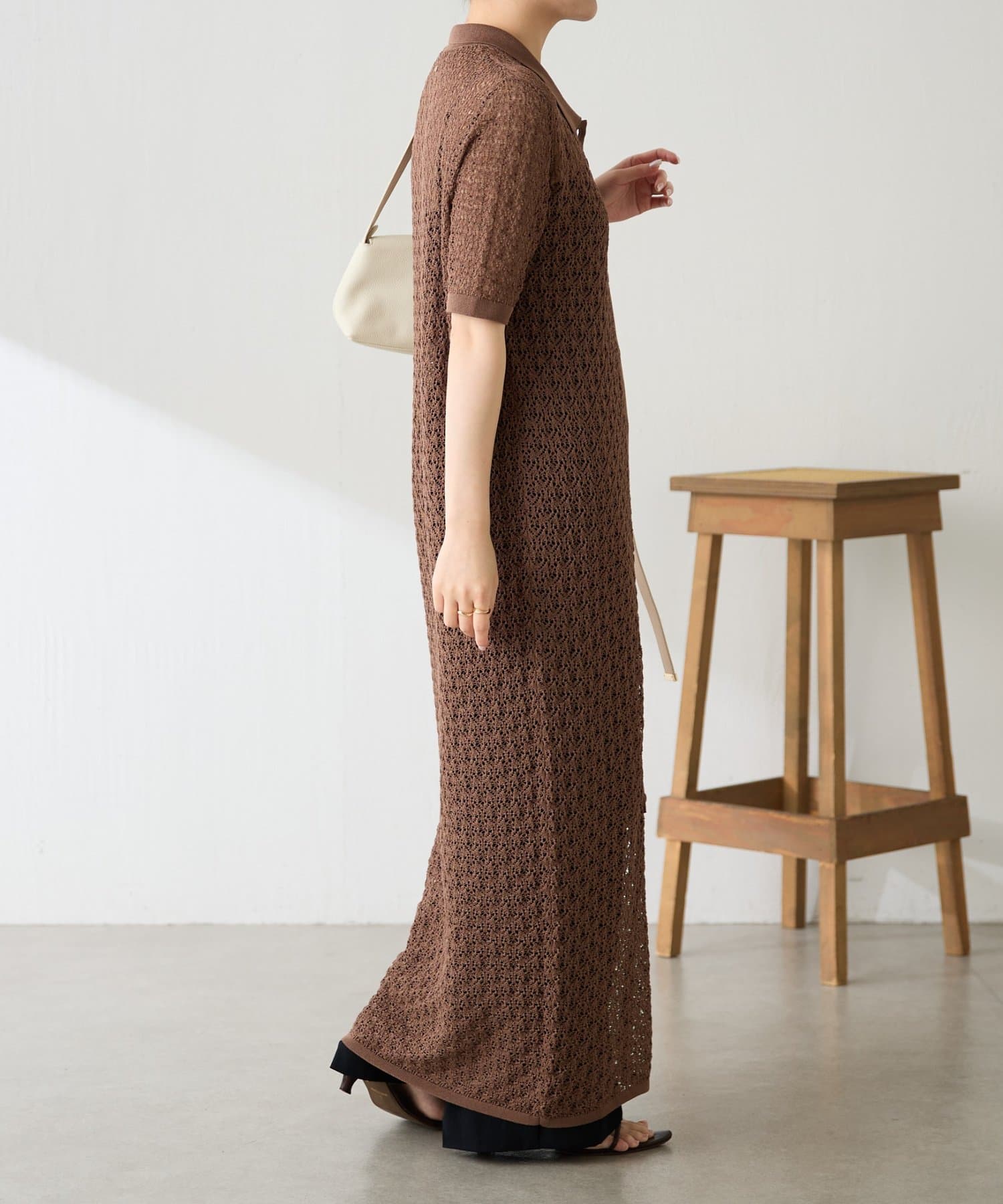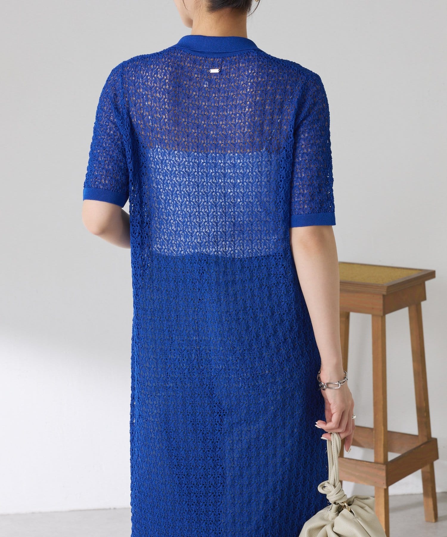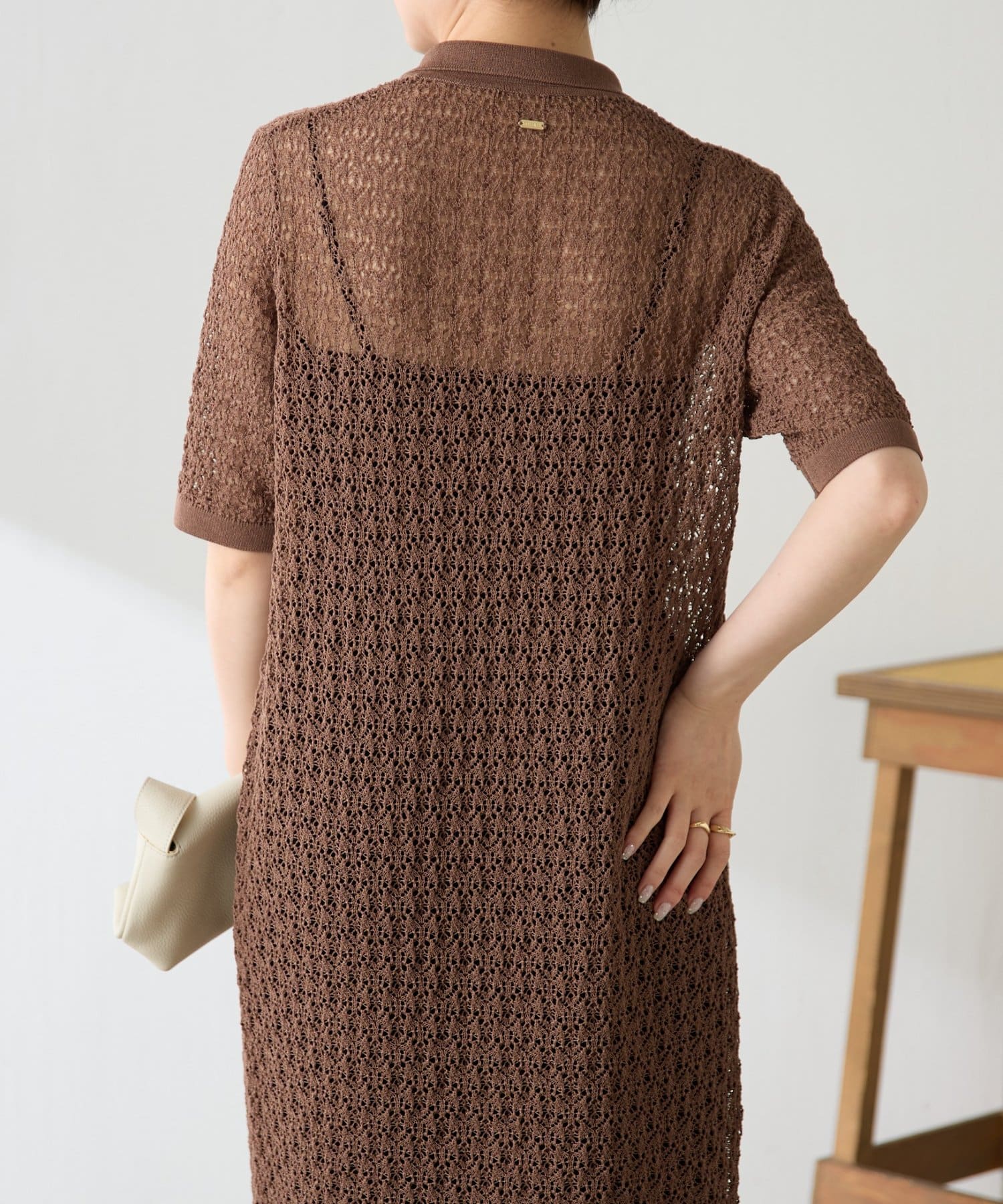 ・清涼感のある生地で、夏のレイヤードスタイルを楽しめるポロ型ニットワンピース。