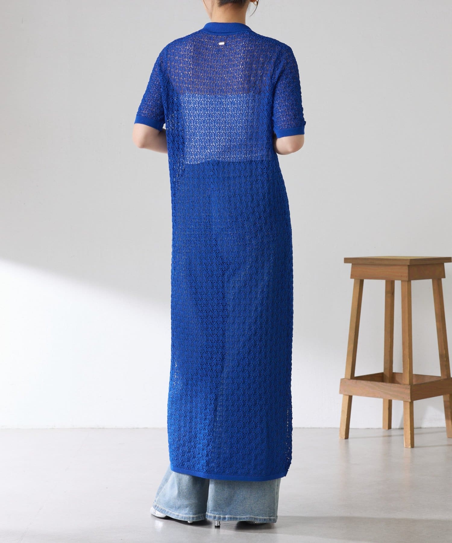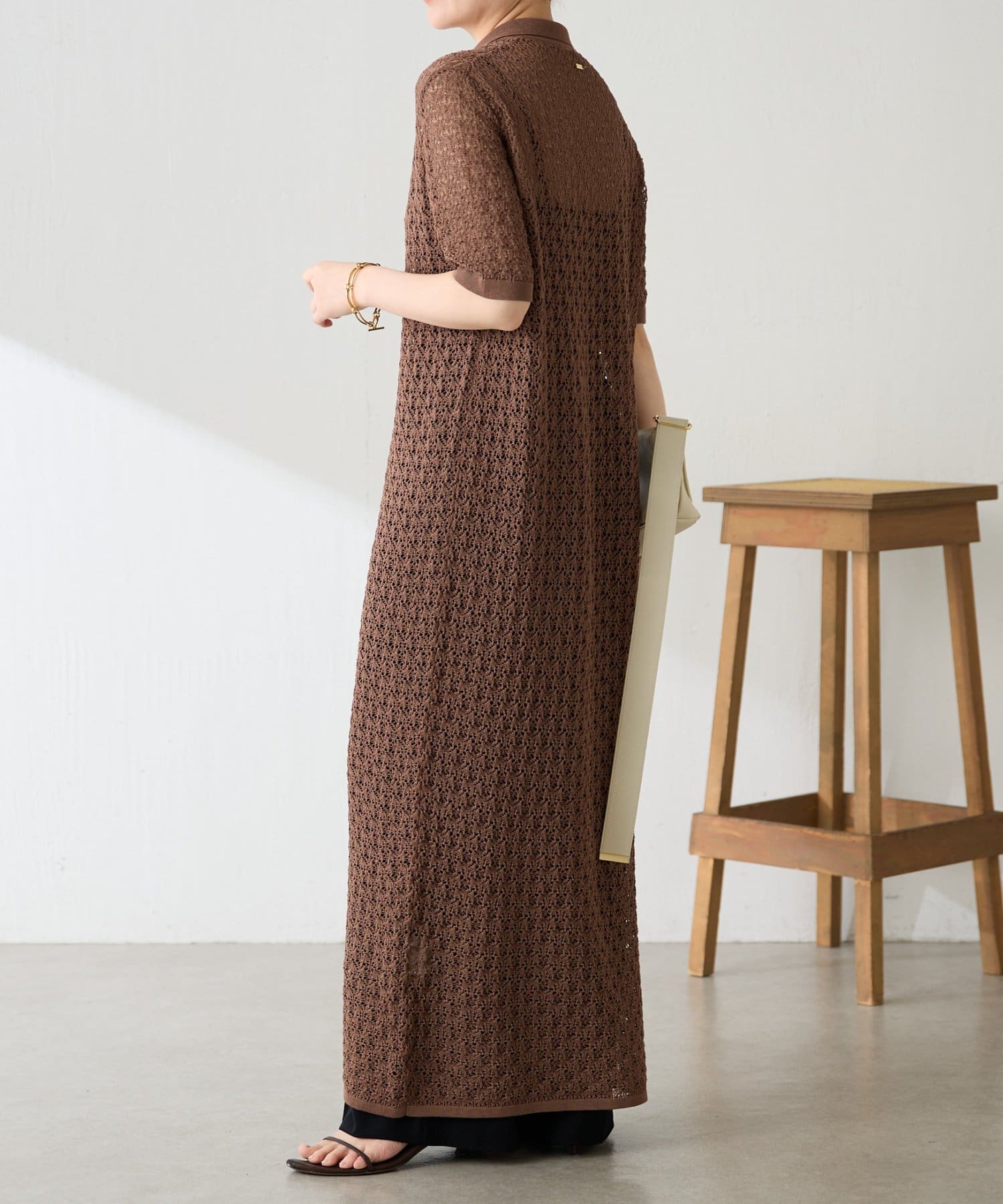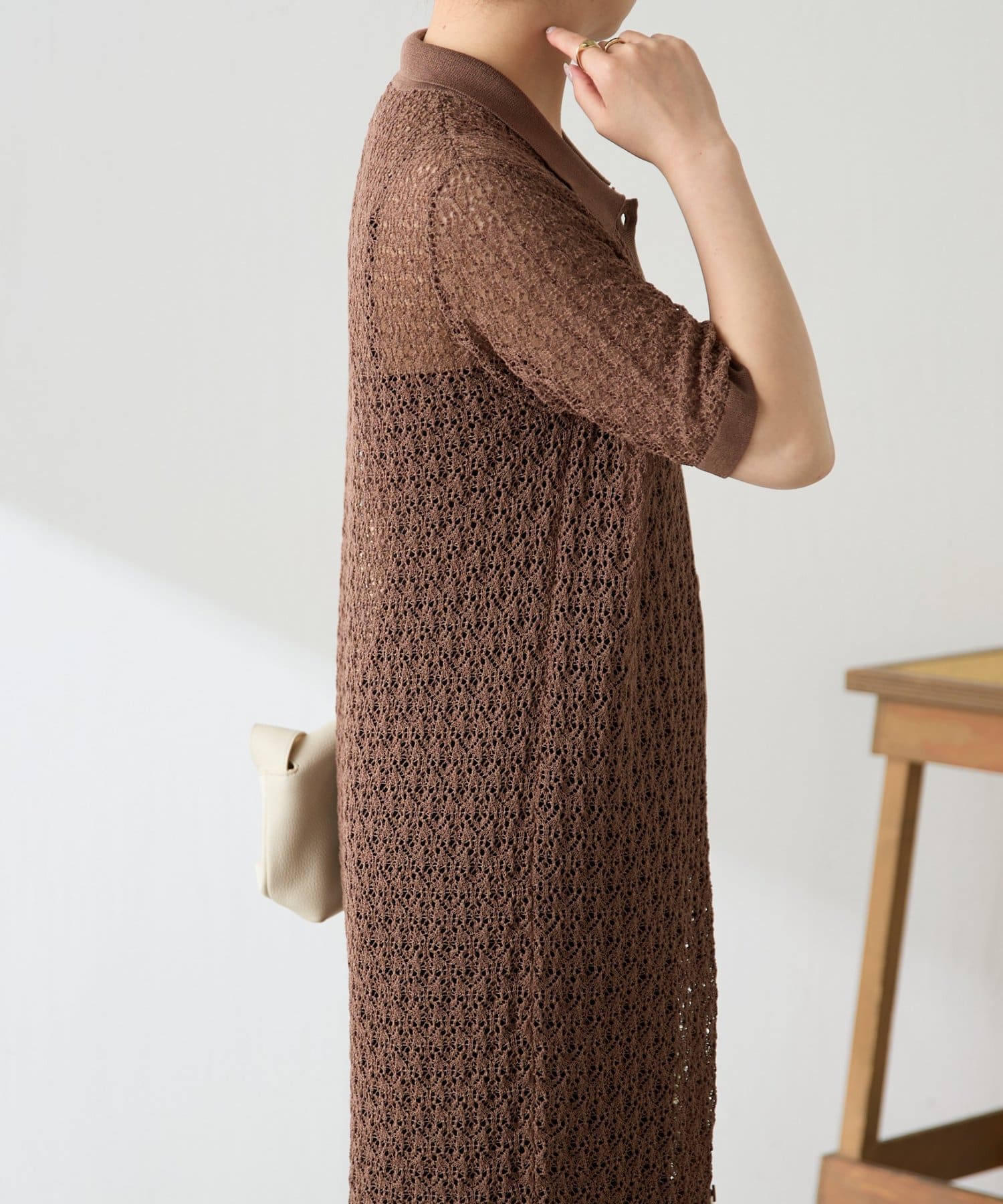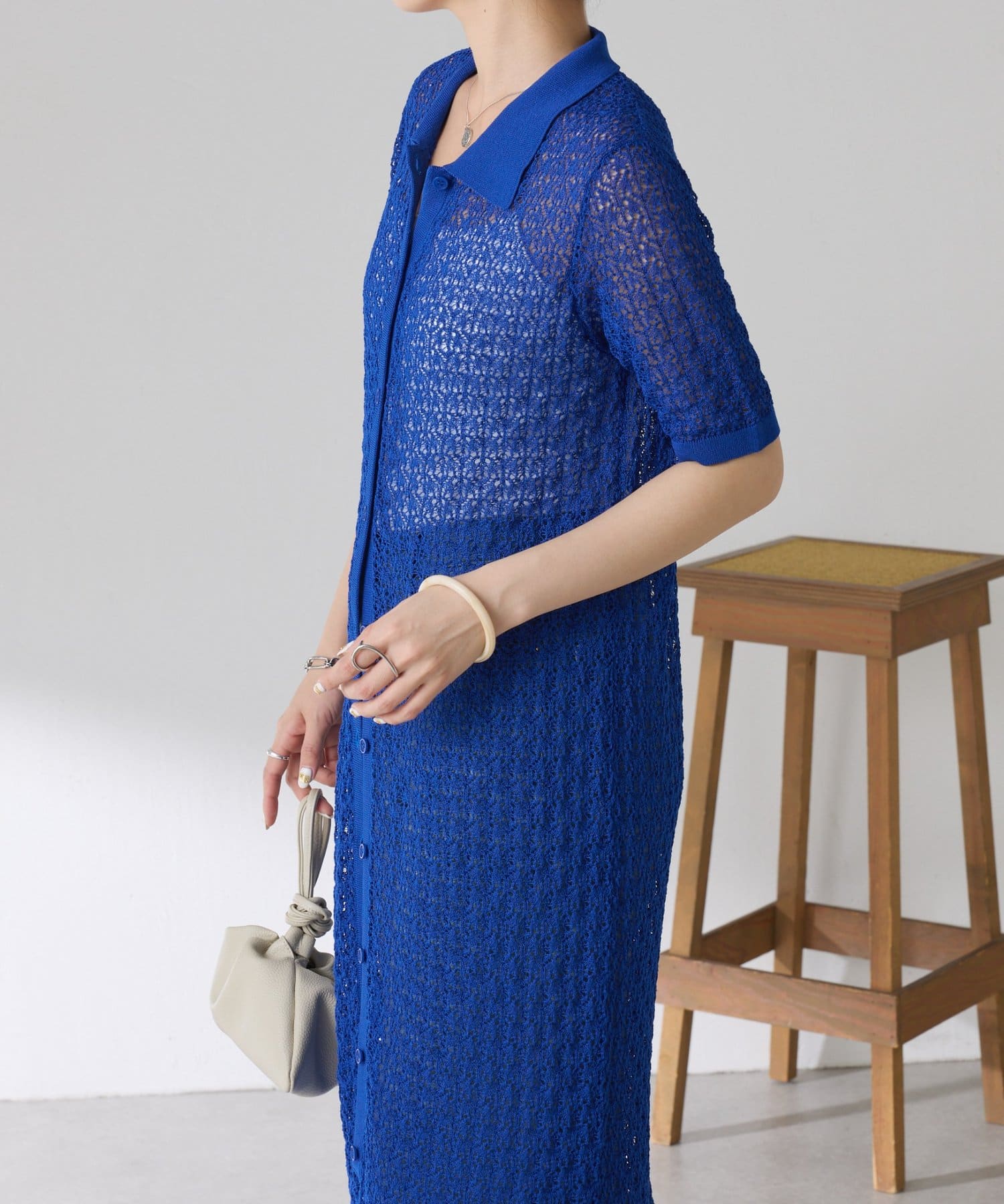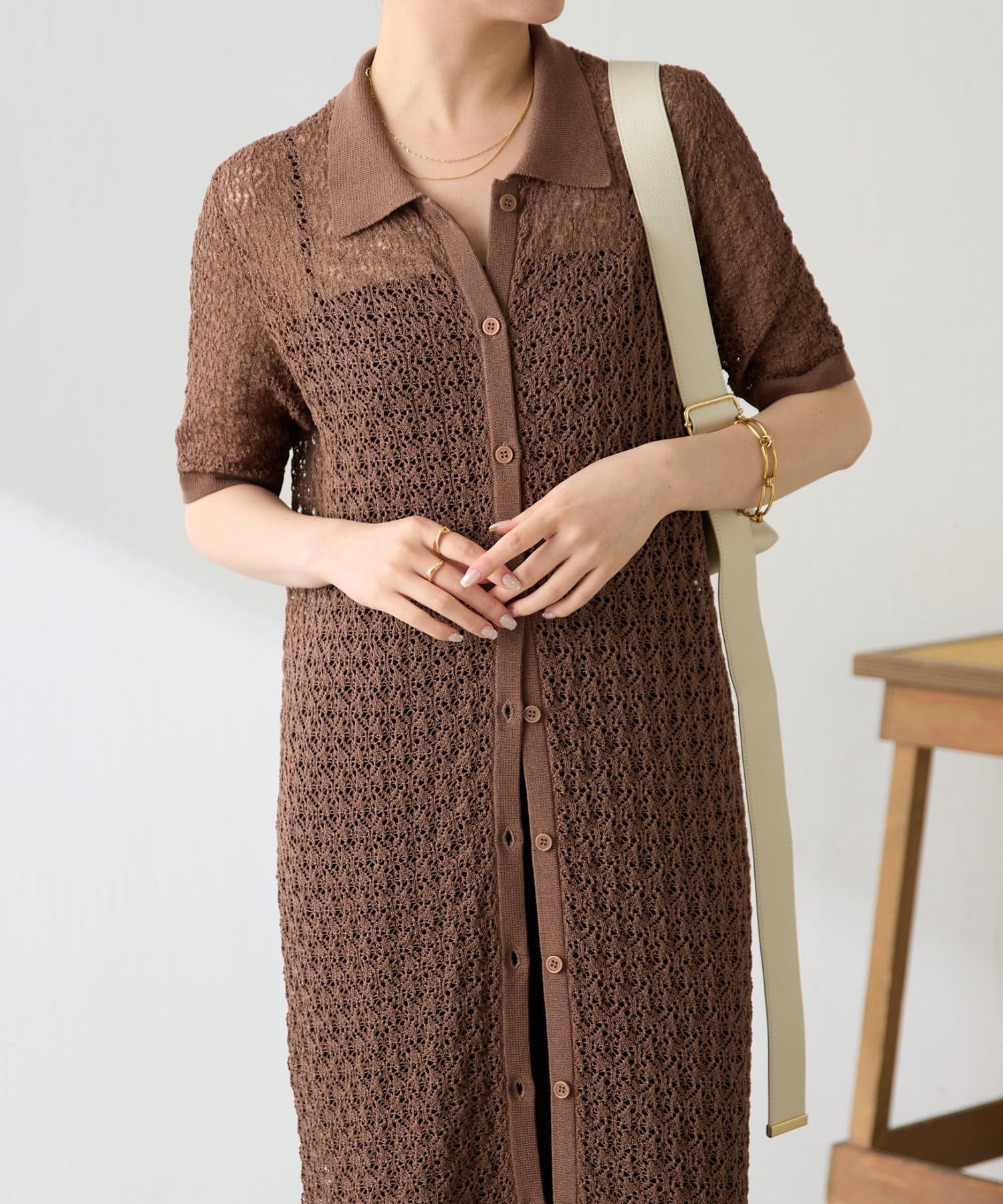 ・清涼感のある生地で、夏のレイヤードスタイルを楽しめるポロ型ニットワンピース。