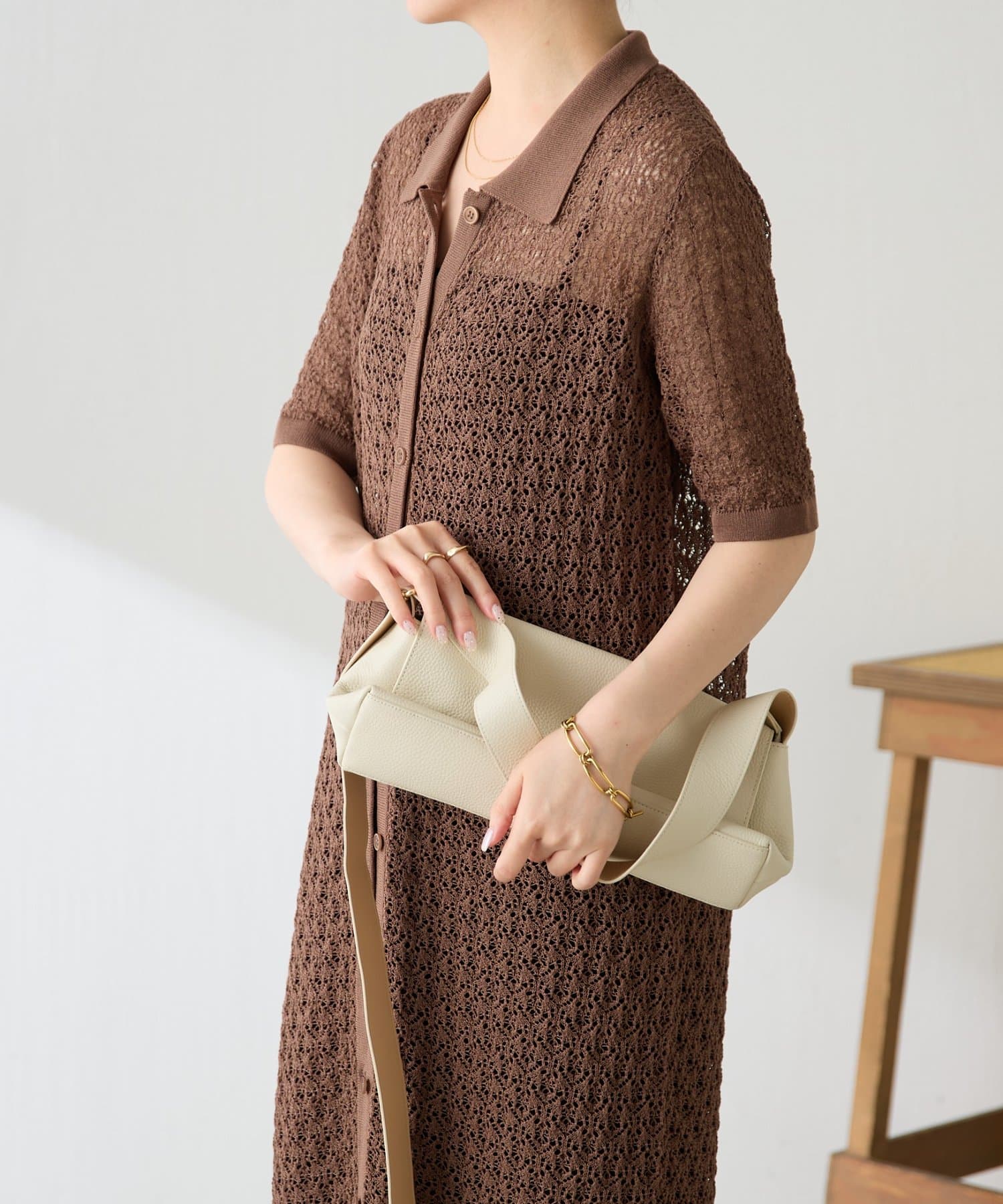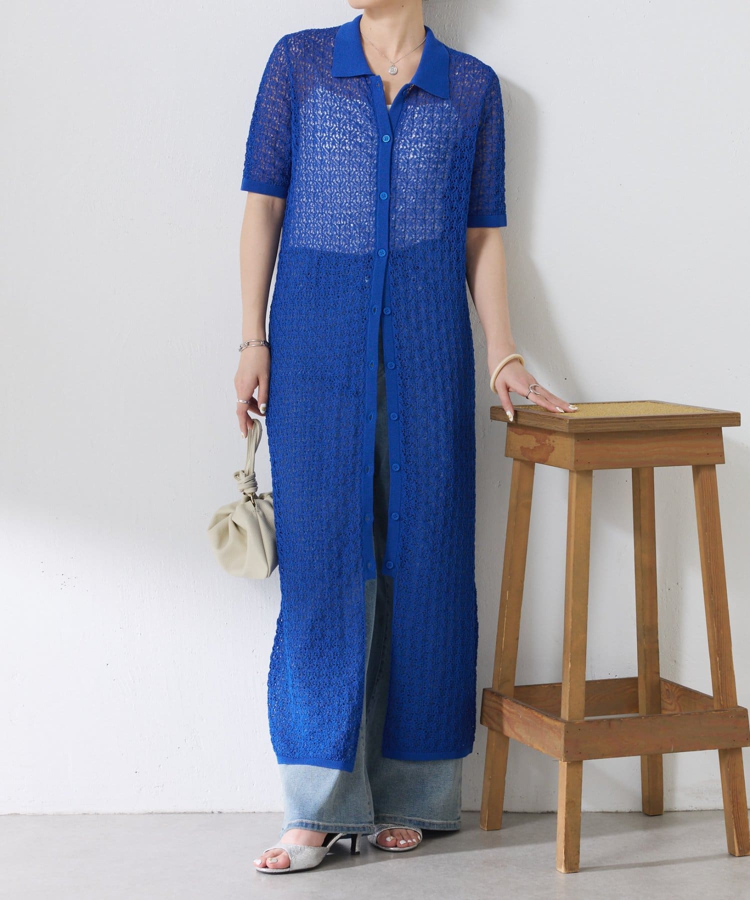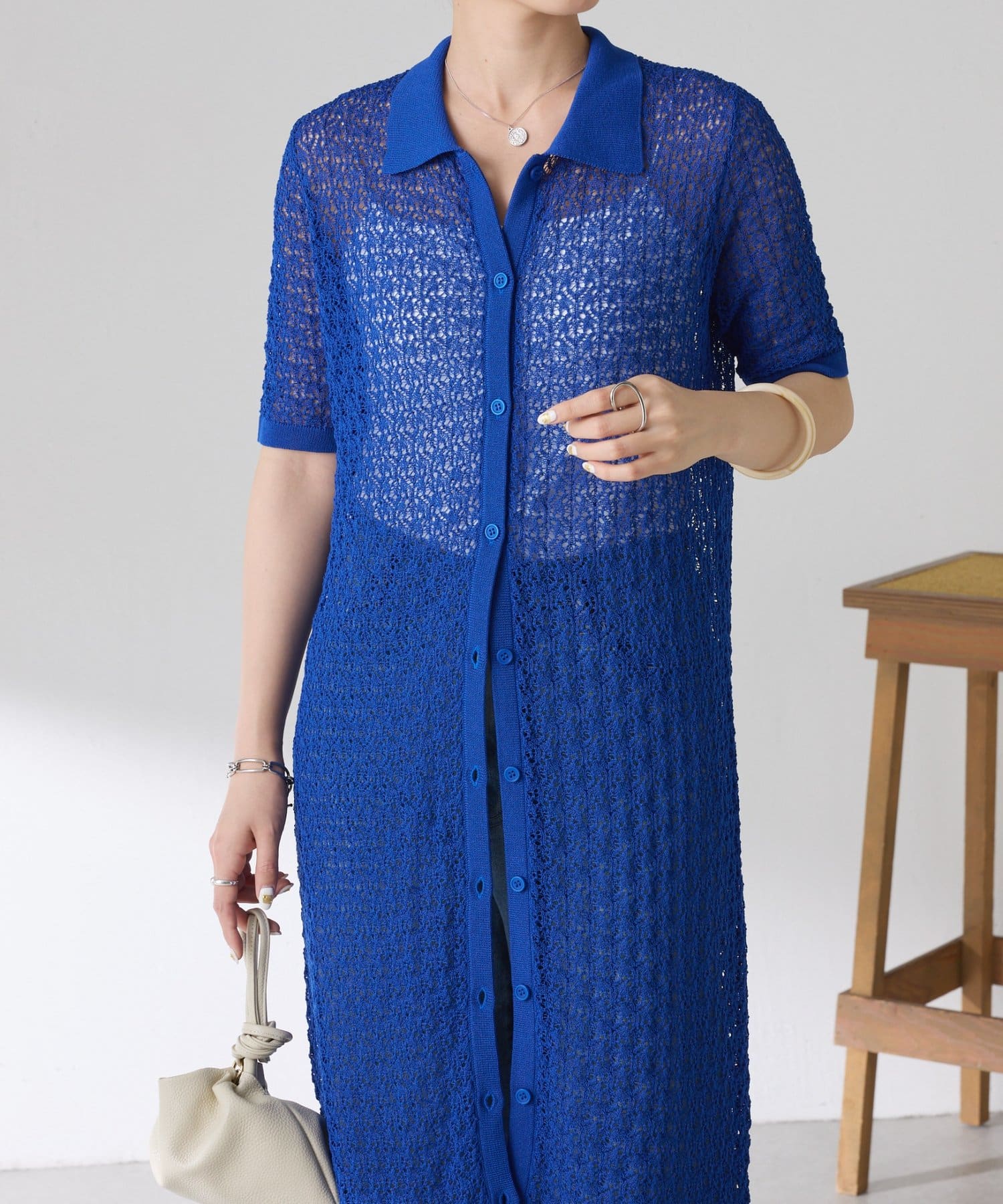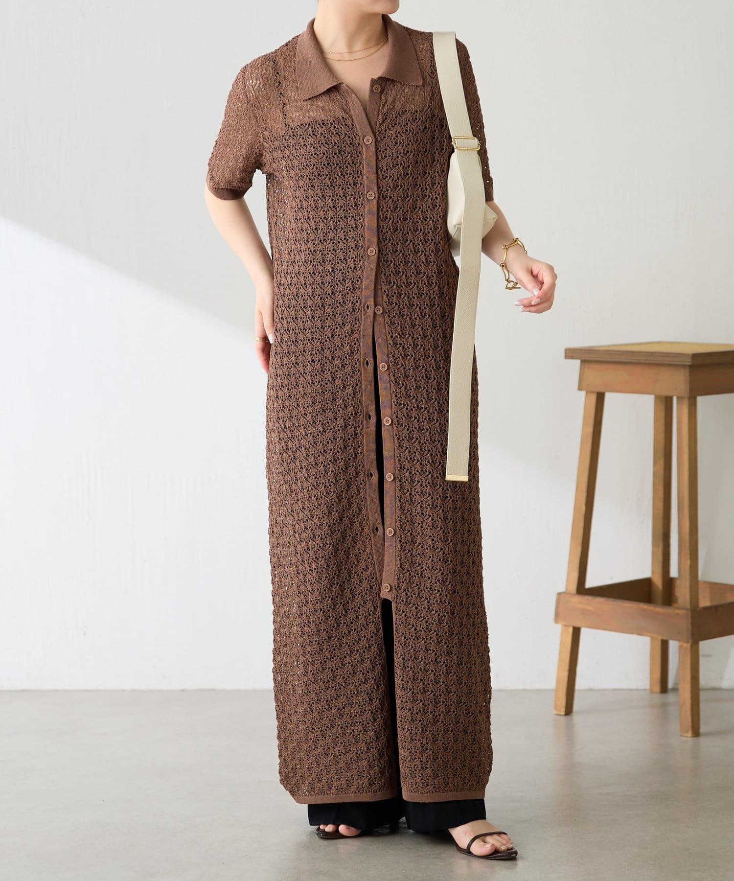 ・清涼感のある生地で、夏のレイヤードスタイルを楽しめるポロ型ニットワンピース。